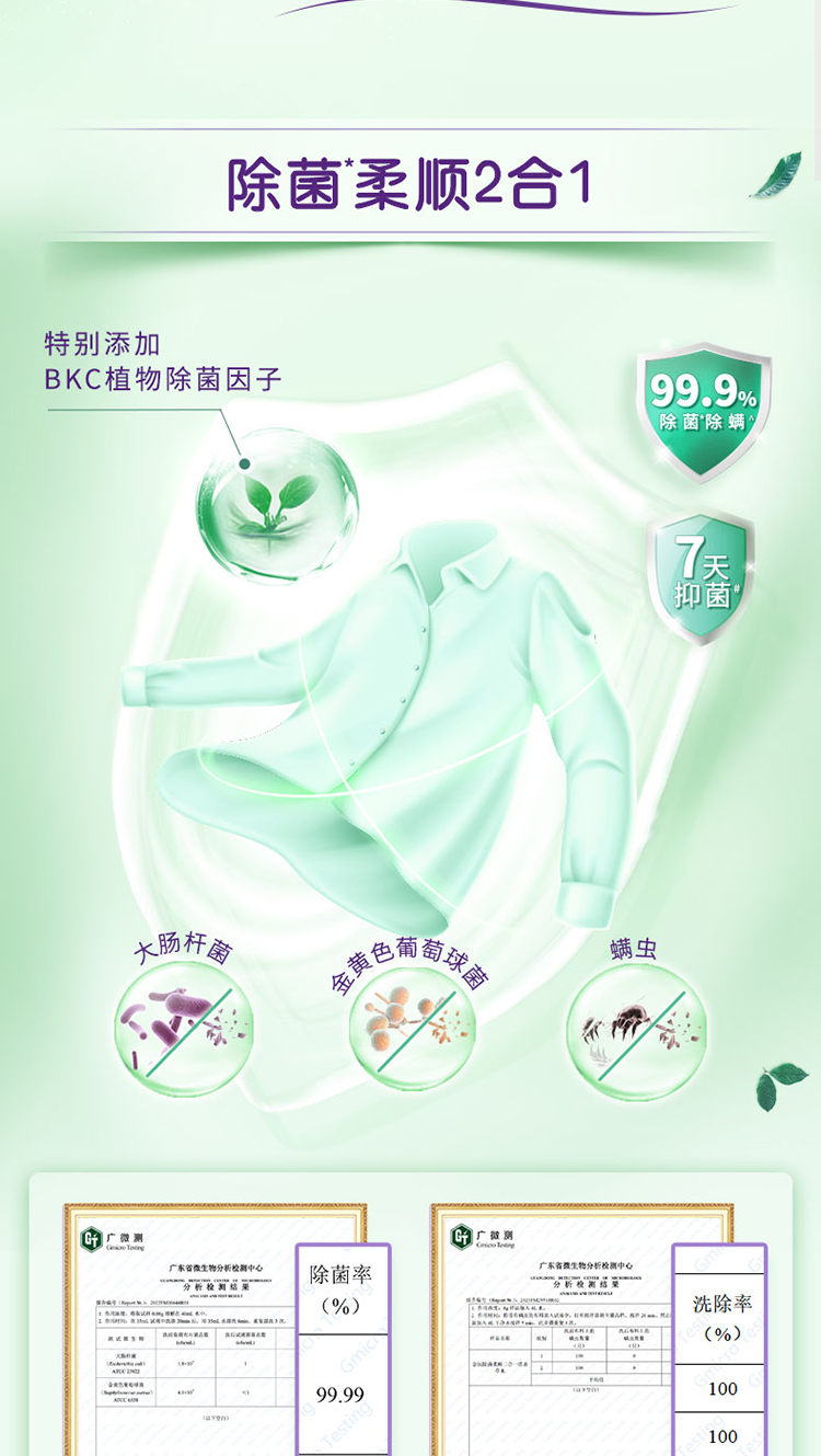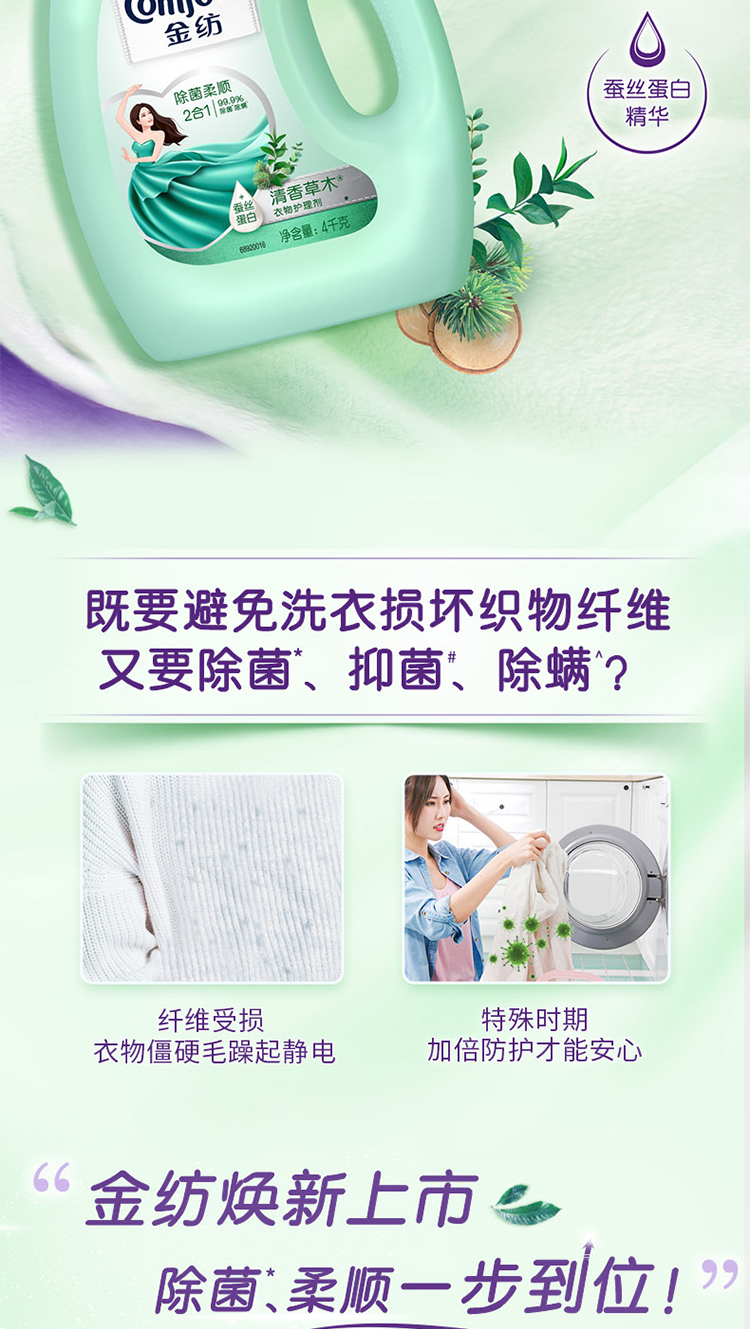 【立减10元,买反猫卡40元】新除菌柔软二合一,专业除菌成分BKC,强效杀菌不伤手,独特香氛精油配方草木清香,留香48小时,多效护衣.
