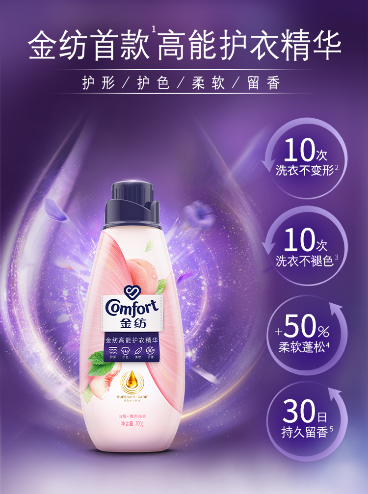 【立减30,买反15元猫卡】金纺薰衣草小苍兰+白桃莫吉托护衣精华700gx2+150g,柔顺、护形、护衣、防静电,持久留香~