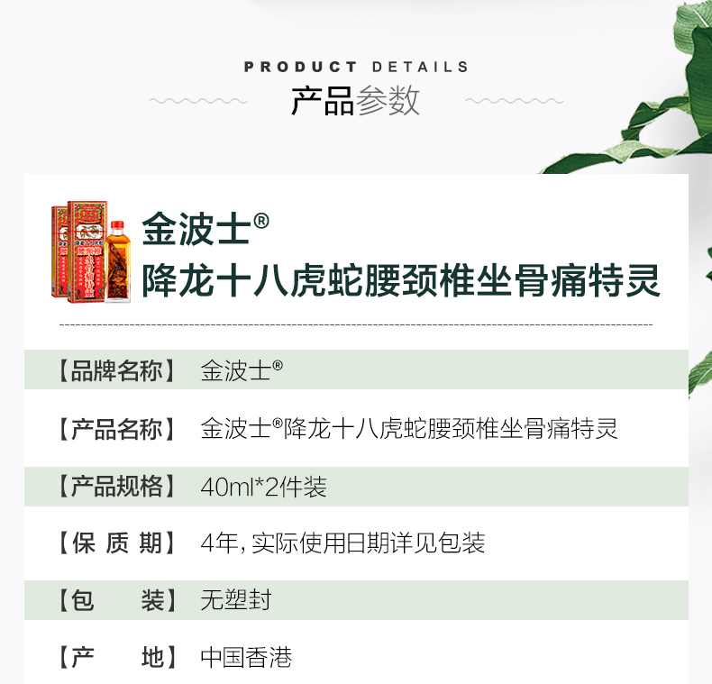 【拍2件!领券599减80,到手四瓶,88vip到手价190(47.5/瓶)】88vip再减9到手171,四瓶!排湿祛风,舒筋活络!针对腰颈椎痛、铁打扭伤、风湿等均有效!品质保证,速抢~