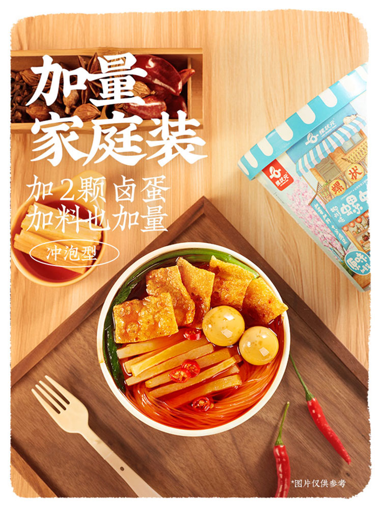 加量家庭装,加两颗秘制卤方卤蛋,加料也加量,大头鲜笋一口难忘,头层腐竹,全凭手工,一口爆汁满口留香,多加5g口感更满足,非油炸大讲究,让你随时随地想吃就吃~