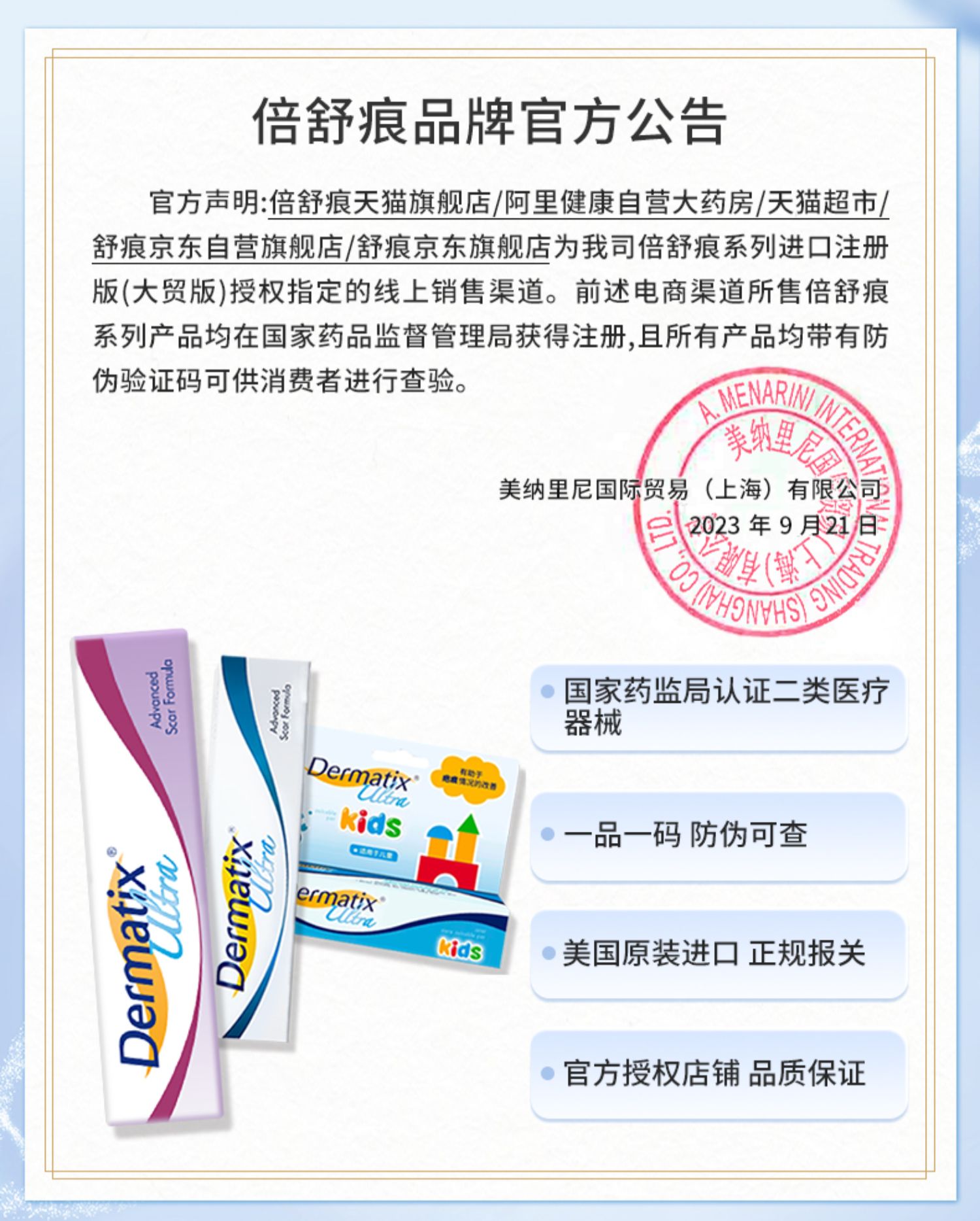 【儿童款,会员买1送倍舒痕2g*2+洗脸巾*1】两年内疤痕可祛除!双眼皮手术、甚至剖腹产级别的大手术一样OK!不管大人小孩,日常免不了磕磕碰碰,备一支倍祛疤膏,不担心留疤!敏感肌、孕婴都可放心用~三甲医院医生都推荐用的祛疤膏~
