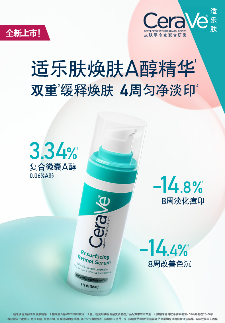 【自营】CeraVe/适乐肤A醇视黄醇清痘焕肤精华30ml修护提亮淡痘印,淡褪痘印色沉,全脸亮自匀净,4周肤质光滑细嫩,3重神经酰胺+MVE缓释保湿,长效修护皮肤屏障!!