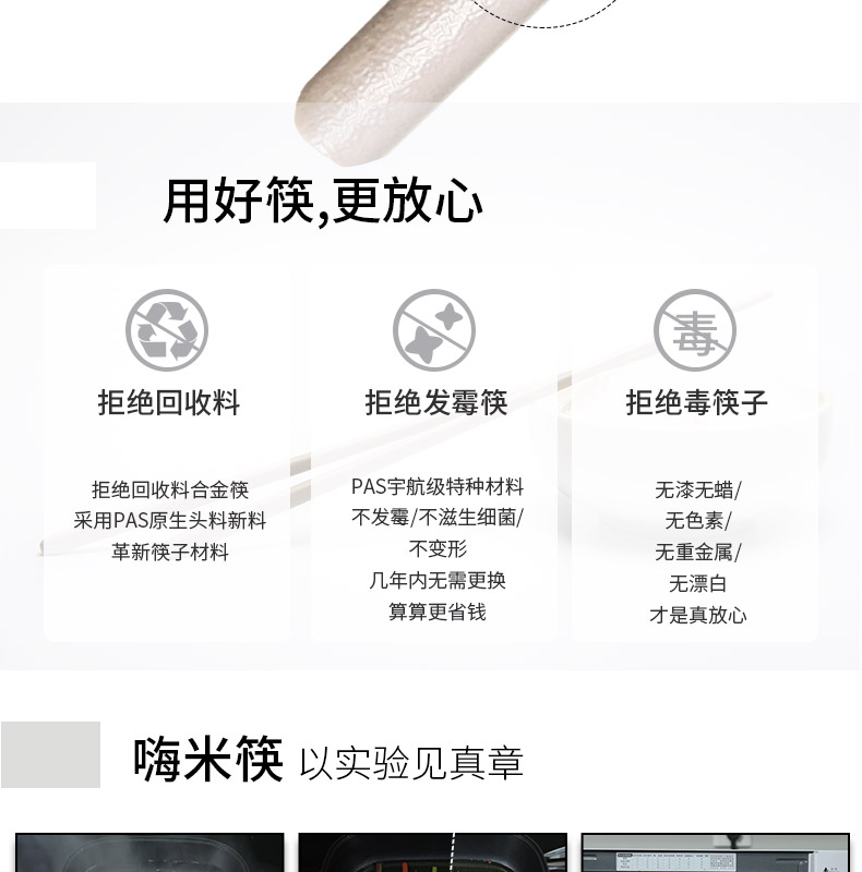 【拍下立减2元】航空医疗级通过SGS欧盟标准,耐高温消毒,不易变形,防滑筷头,使用方便,航空材质,长期使用也不发霉!无漆无蜡,守护家人健康!