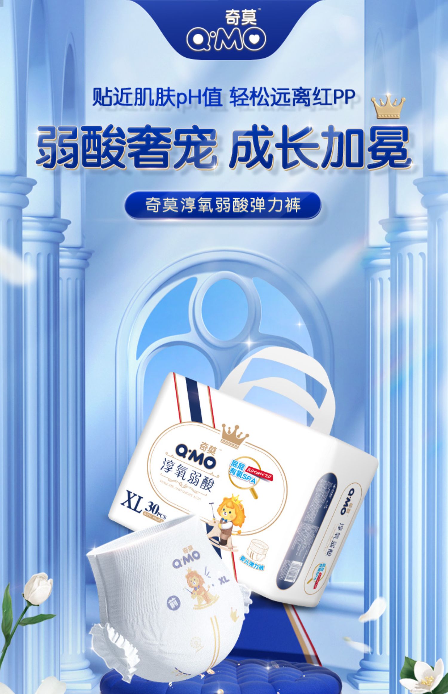 【拍2件,叠首单4,折60.3/件,】奇莫淳氧弱酸纸尿裤,贴近肌肤ph值,轻松远离红PP,植萃果酸护臀精华,为宝宝肌肤保驾护航,轻薄吸水纸芯体,透气不闷,pp整日清爽!