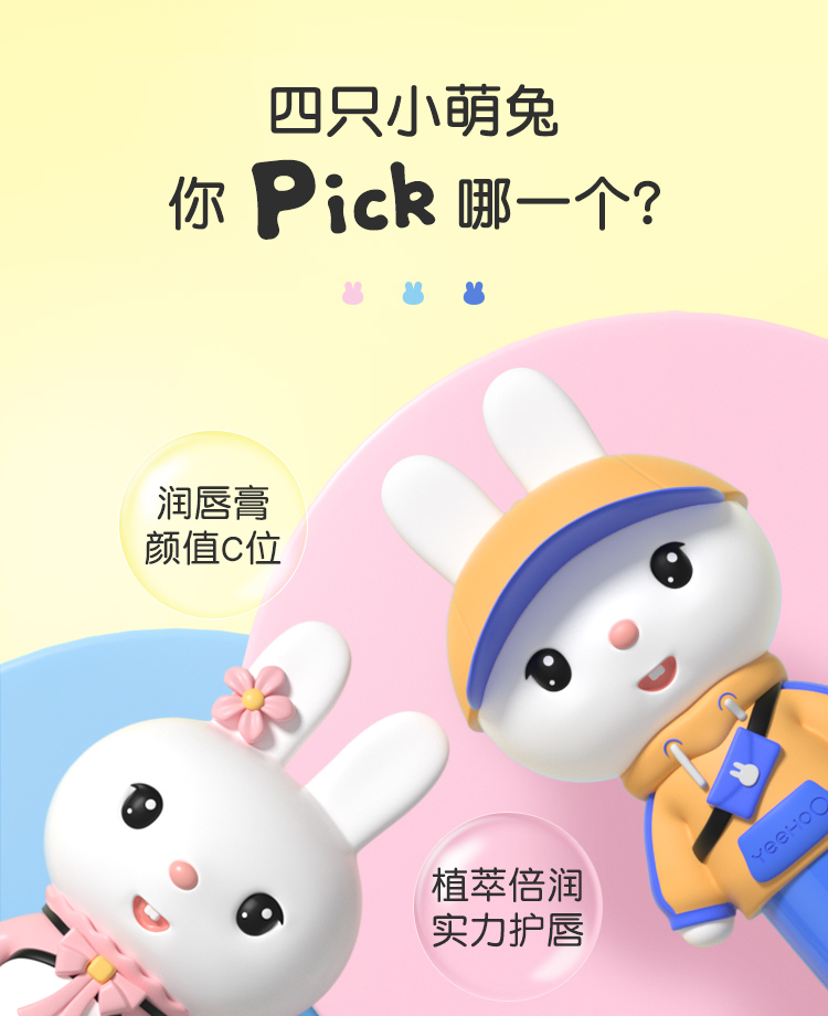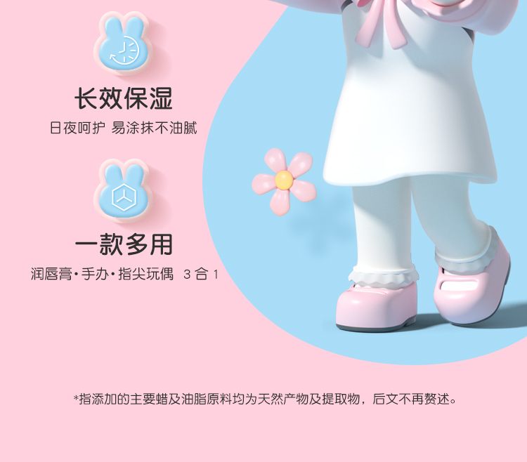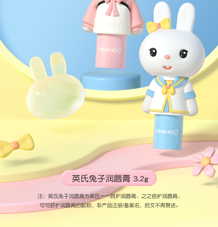 可凑149-20,英氏兔子润唇膏3.2g*2,5大进口植萃甄选天然油脂,全成分≤9种安心不怕舔!长效保湿日夜呵护易涂抹不油腻,一款多用,润唇膏·手办·指尖玩偶3合1~