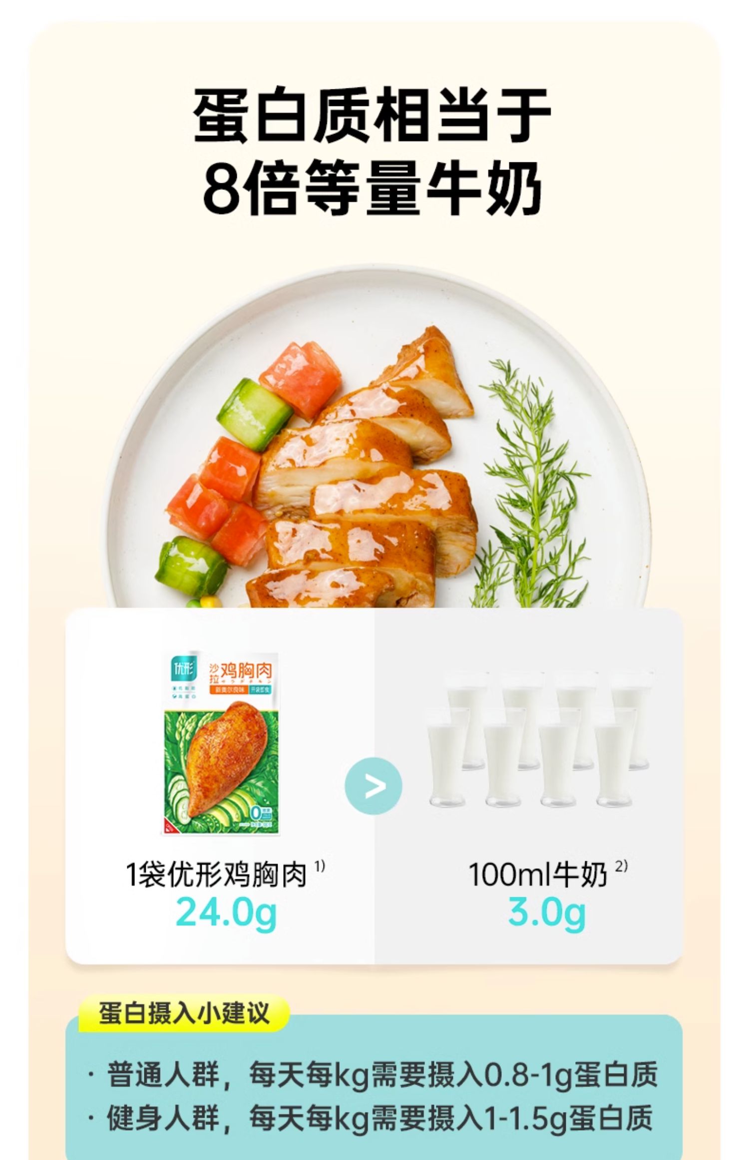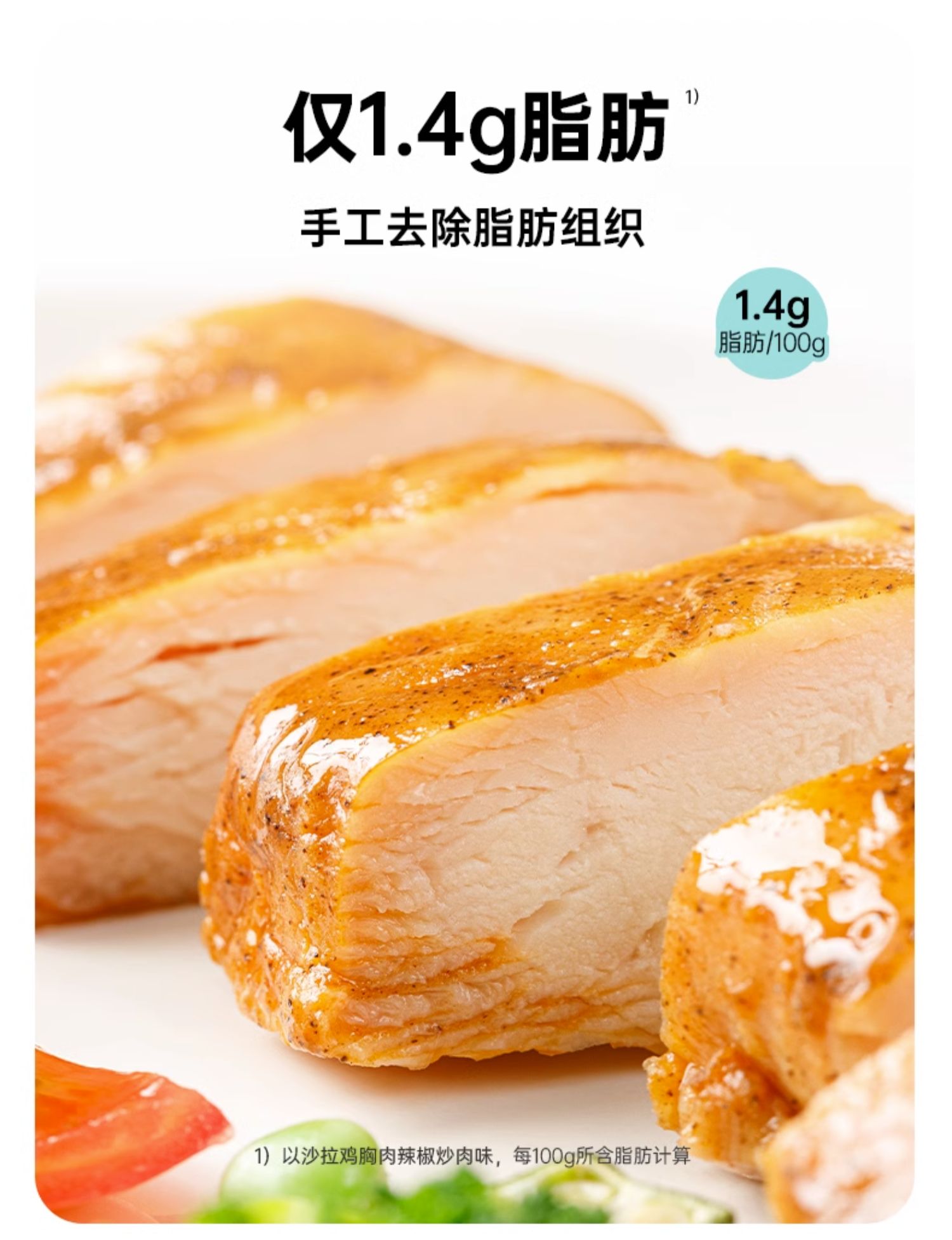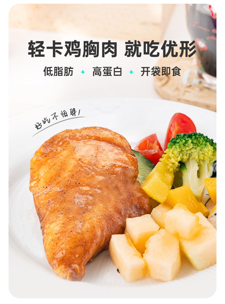 线下多家零售门店有售,累计热销1亿8千万包,轻卡鸡胸肉就吃优形,低卡高蛋白,健康美味无负担,蒸烤工艺,令鸡胸肉更鲜嫩更美味,开袋即食方便食用~