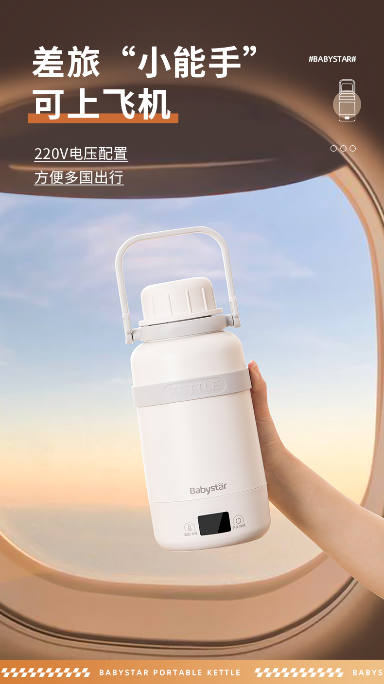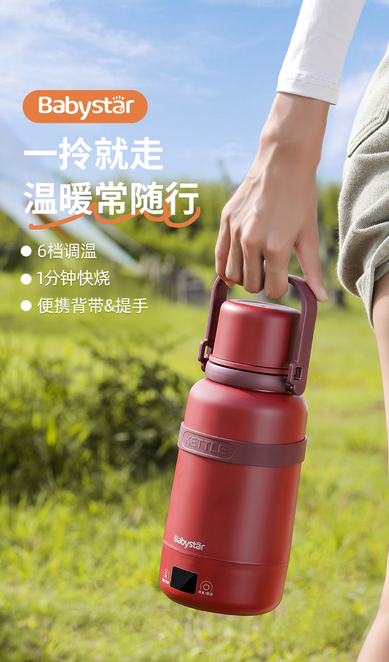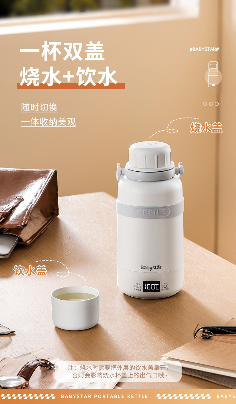 BabyStar便携式烧水壶自动电热水壶!!选用食品级不锈钢材质,母婴都能用,6挡调温,一分钟快烧!!冲奶泡茶毫无压力!!1L大容量,满足一天饮水,一杯双盖,使用方便!出差旅行野外露营必备!