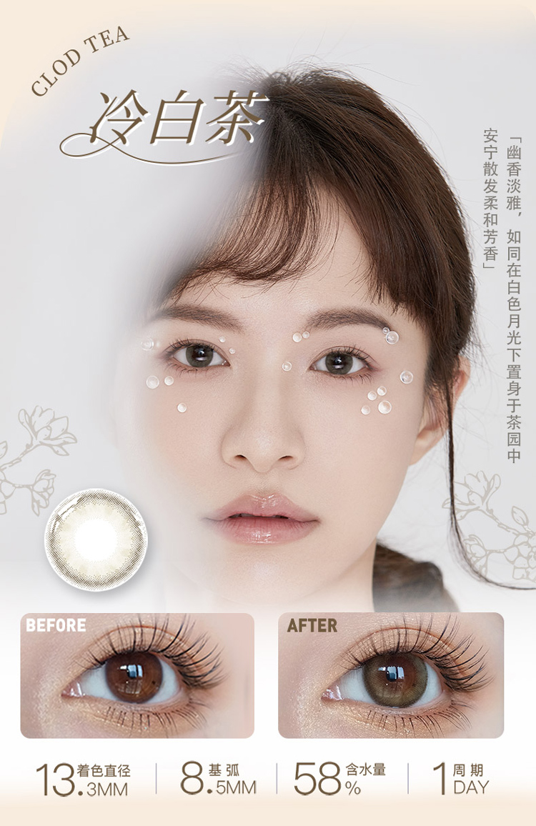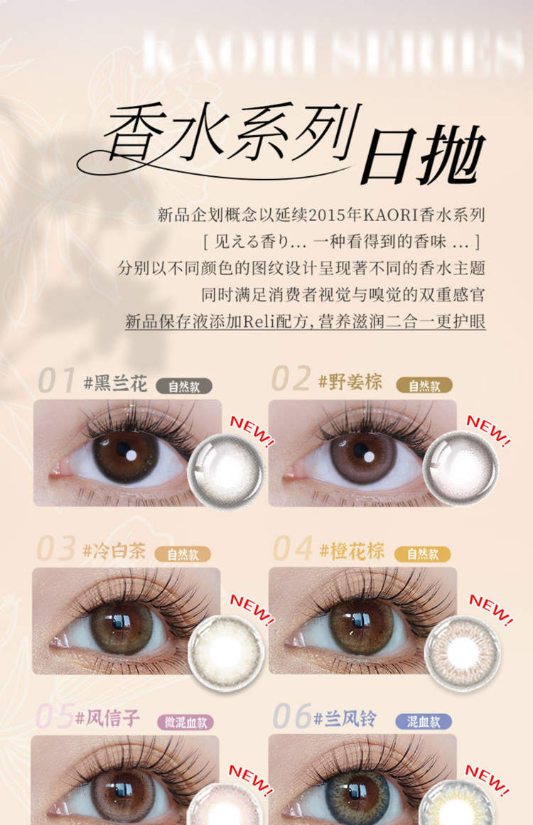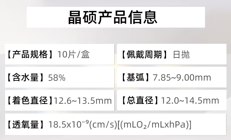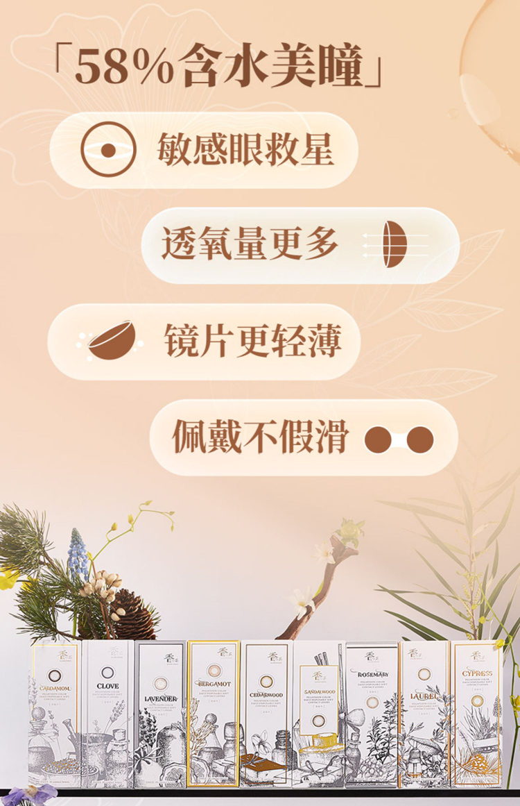 晶硕香水系列日抛10片装!推荐小豆蔻棕!黑兰花!含水量高达55%颜色自然,与你的眼睛完美融合,不会显得突兀。其次,它的舒适度极高,即使长时间佩戴也不会感到不适。最后,它的镜片材质采用的是高品质硅胶,不易破损,持久保持清晰度。