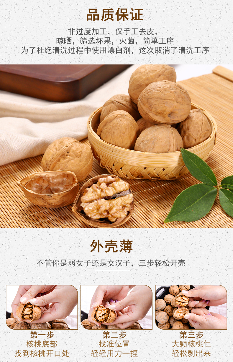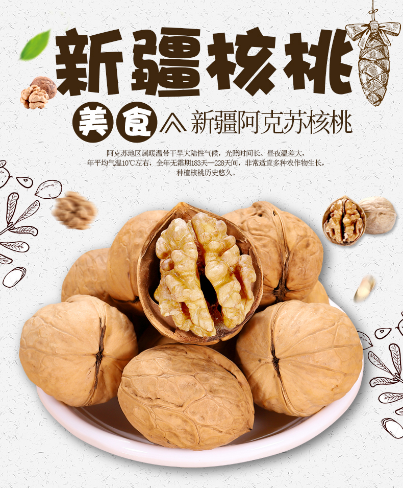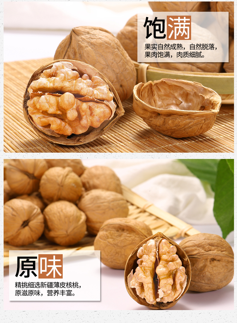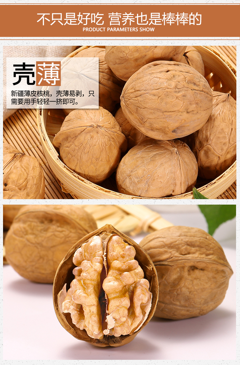 【源自新疆阿苏克的纸皮核桃】优质产地严格筛选,纯天然无添加无漂白。个大皮薄,果仁饱满,清香可口,脂肪含量低,蛋白含量高。健脑益智,抗衰老降血糖。保留果实自然原真,颗颗精选【赠运费险】
