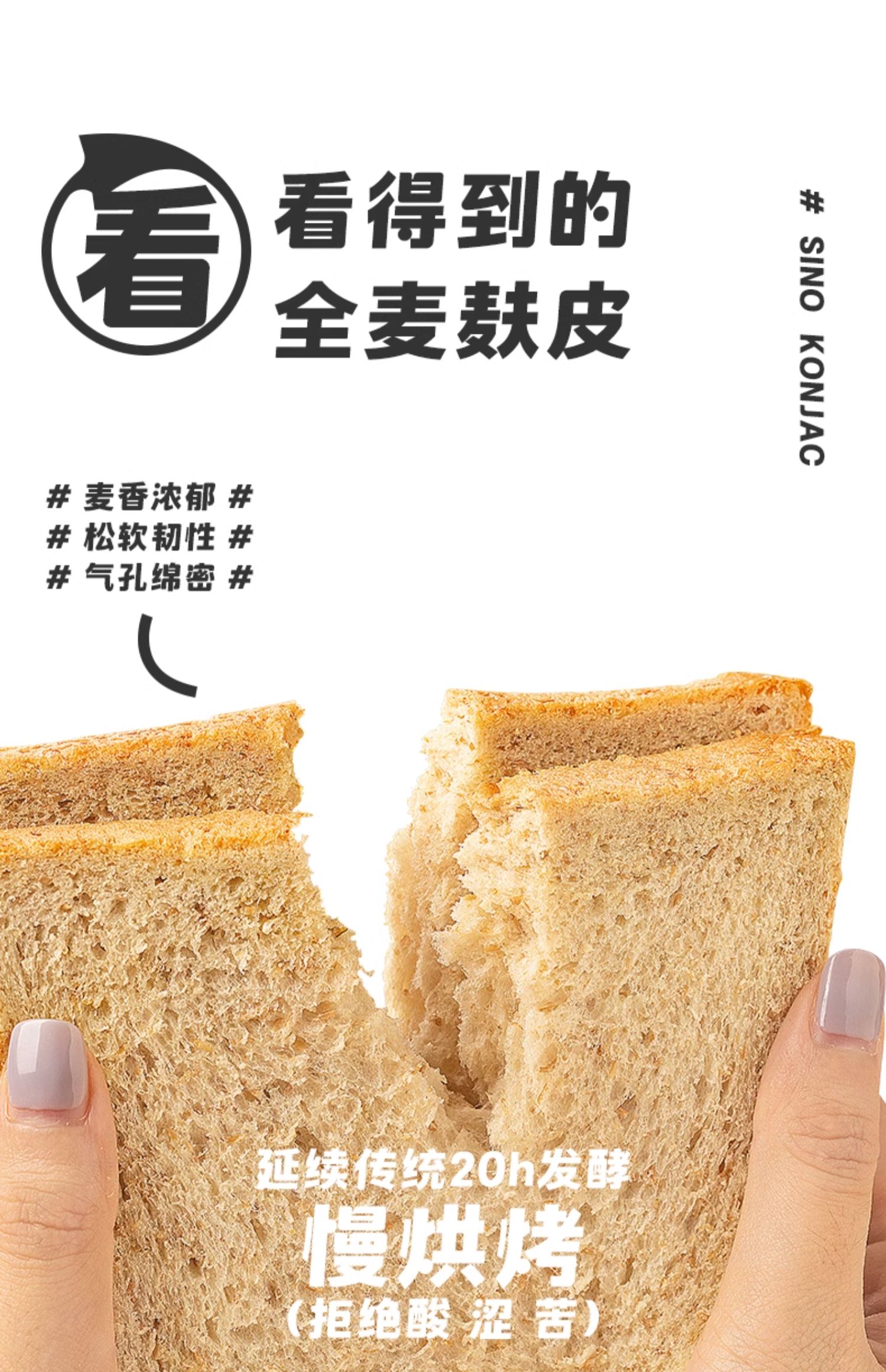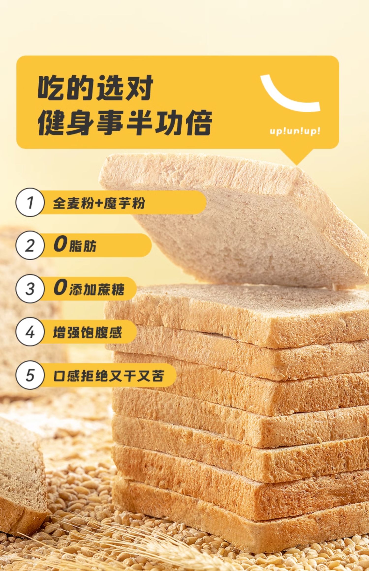 吃的选对健身事半功倍,巨诺全麦面包=全麦粉+魔芋粉,0脂肪0添加蔗糖,增强饱腹感,口感拒绝又干又苦,麦香浓郁+松软韧性+气孔绵密,原来健康和口感可以兼顾!