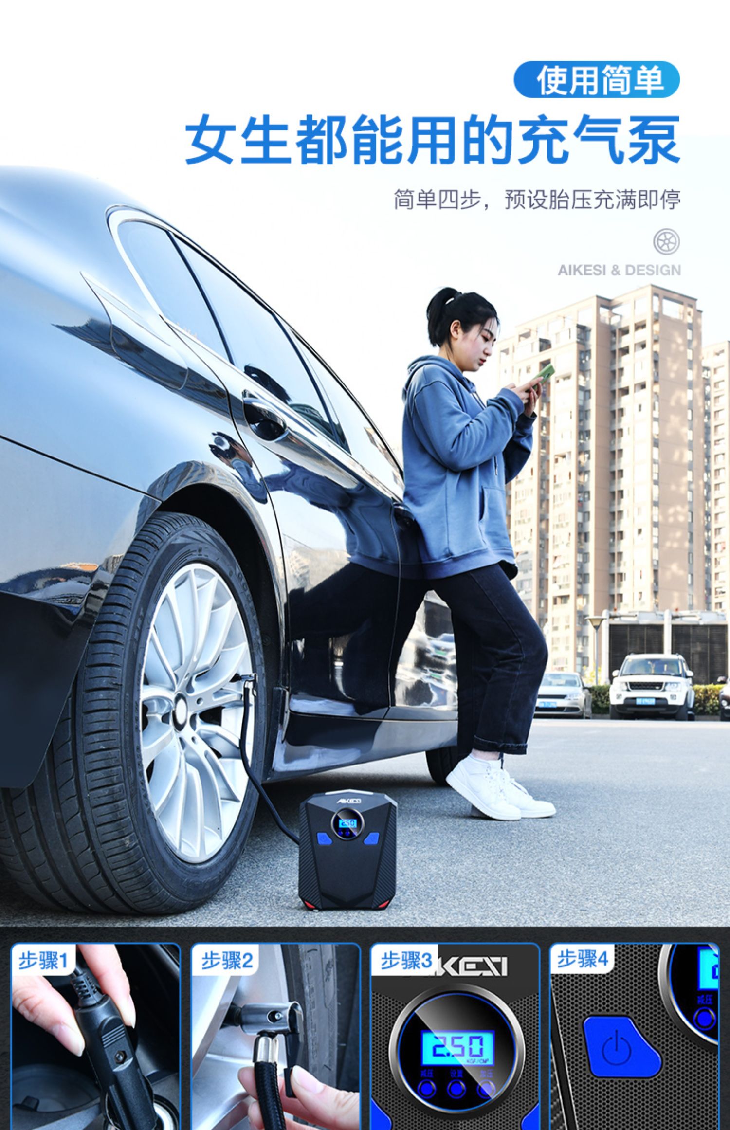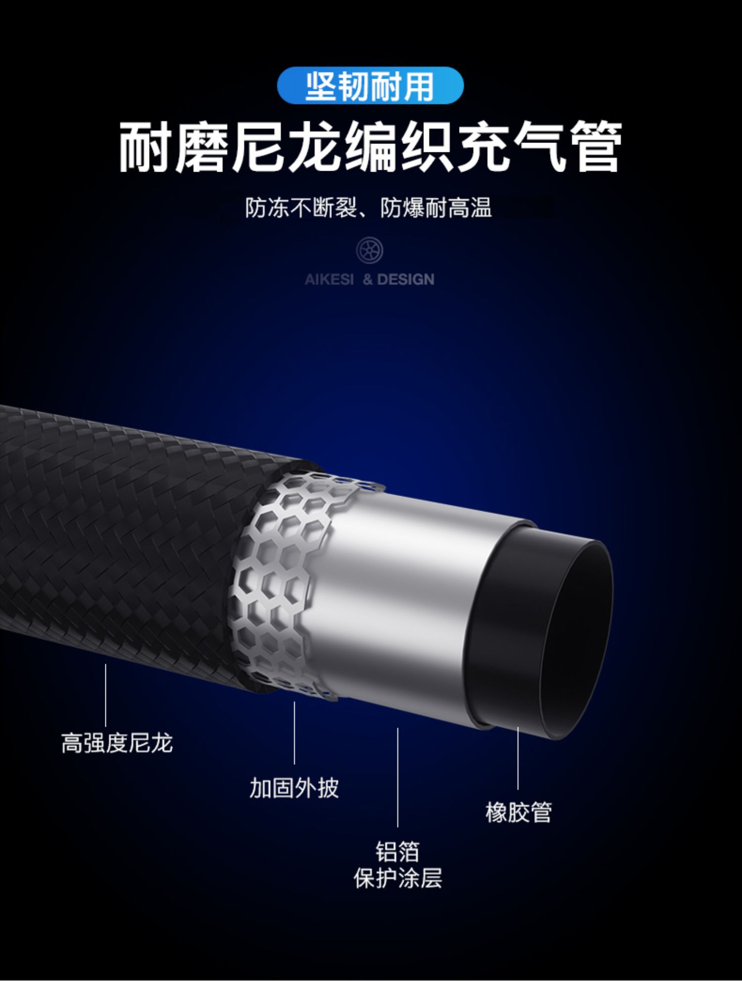 【送胎压帽】快速补气,使用简单,女生都能用的充气泵。隐藏收纳,不必担心杂乱线缠绕。耐磨尼龙编织充气管,防冻不断裂,防爆耐高温。