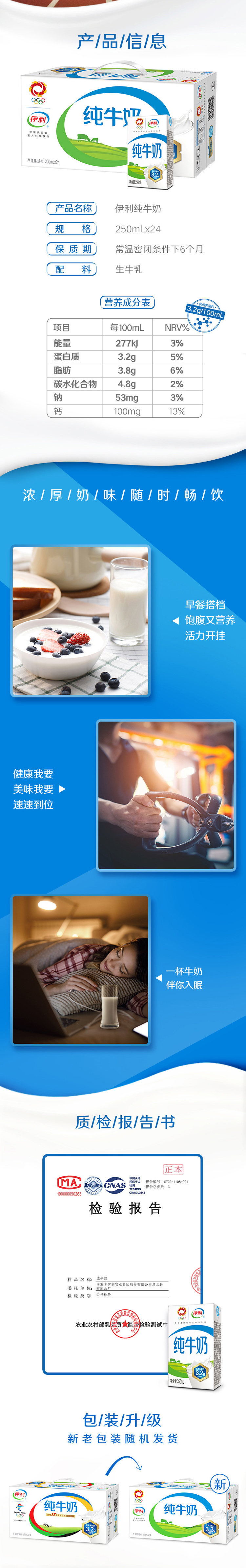 返30猫卡!伊利无菌砖纯牛奶250ml*24盒*2箱