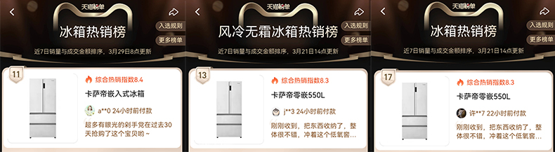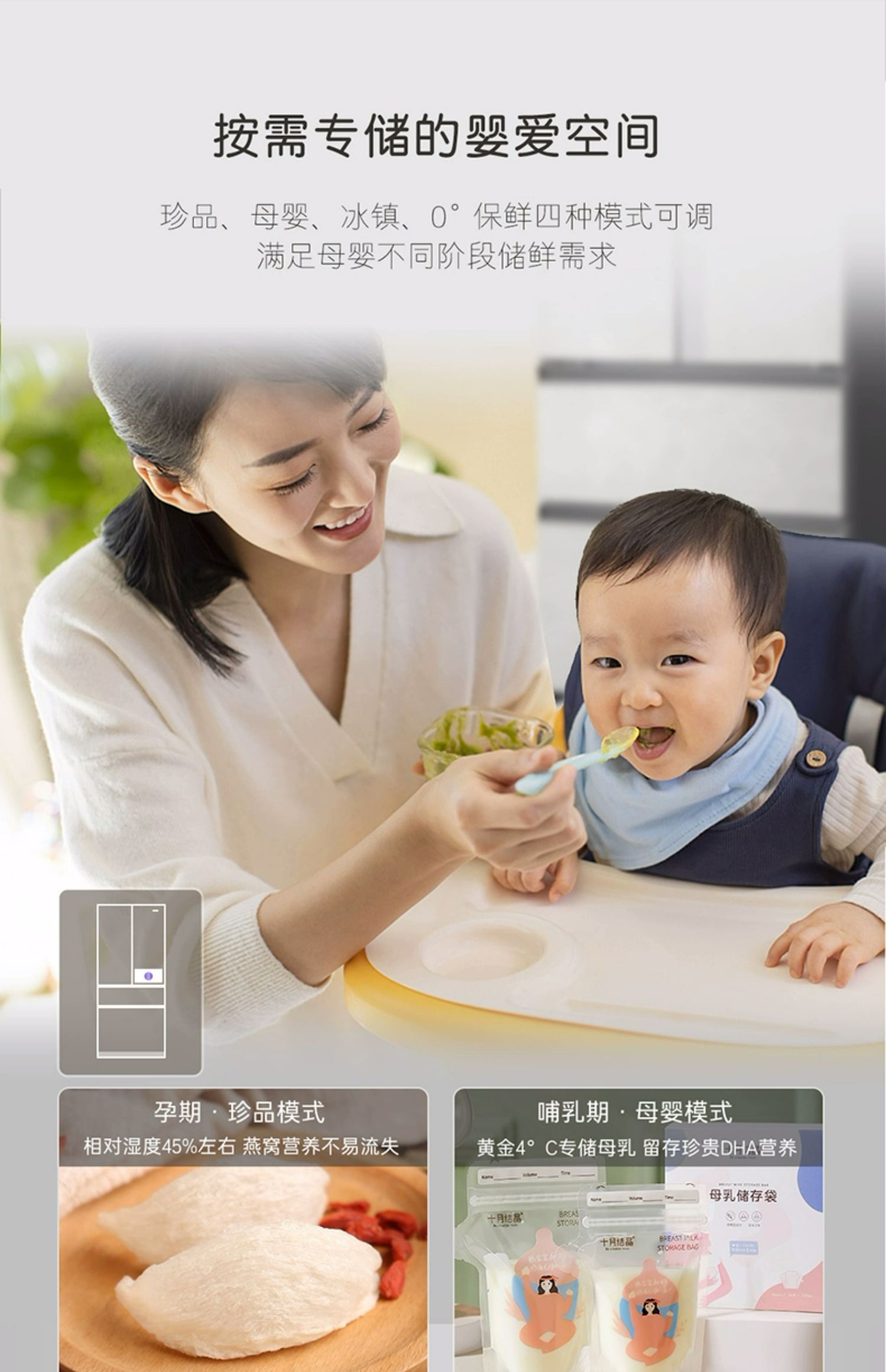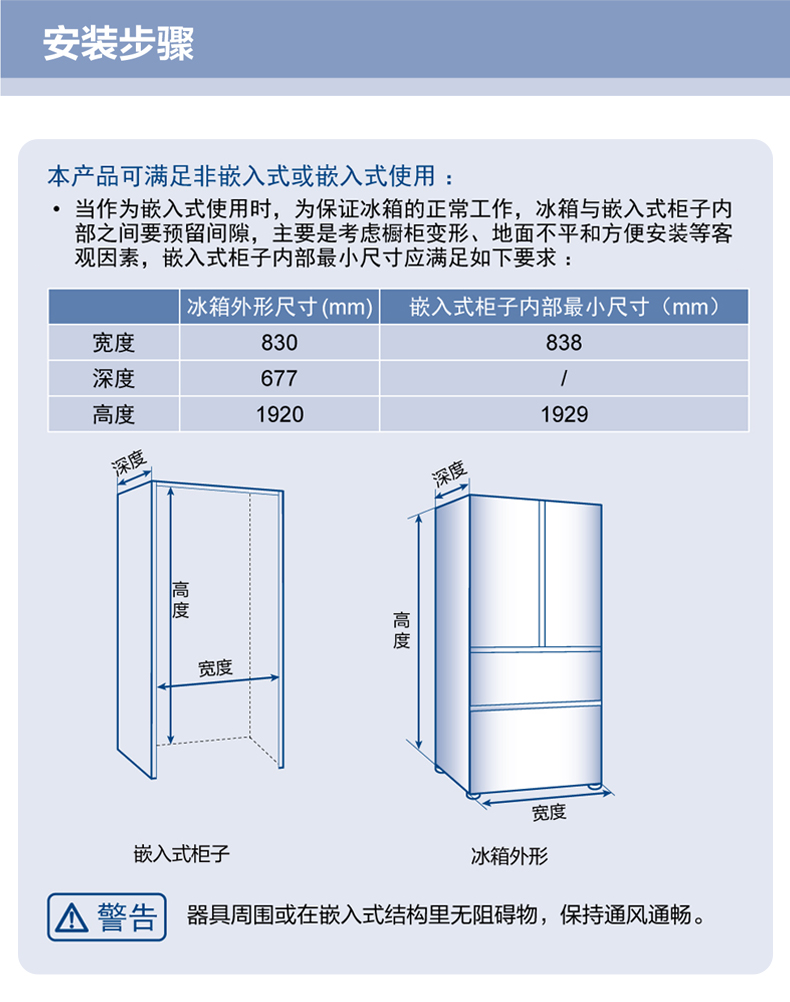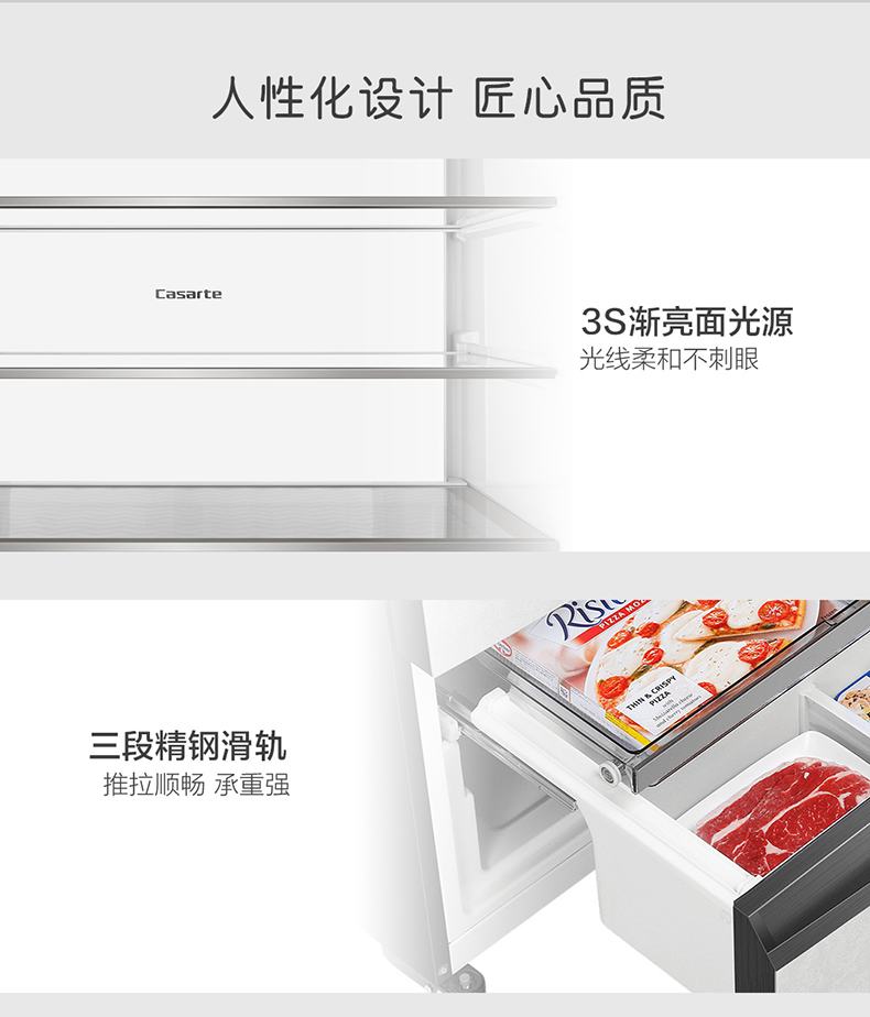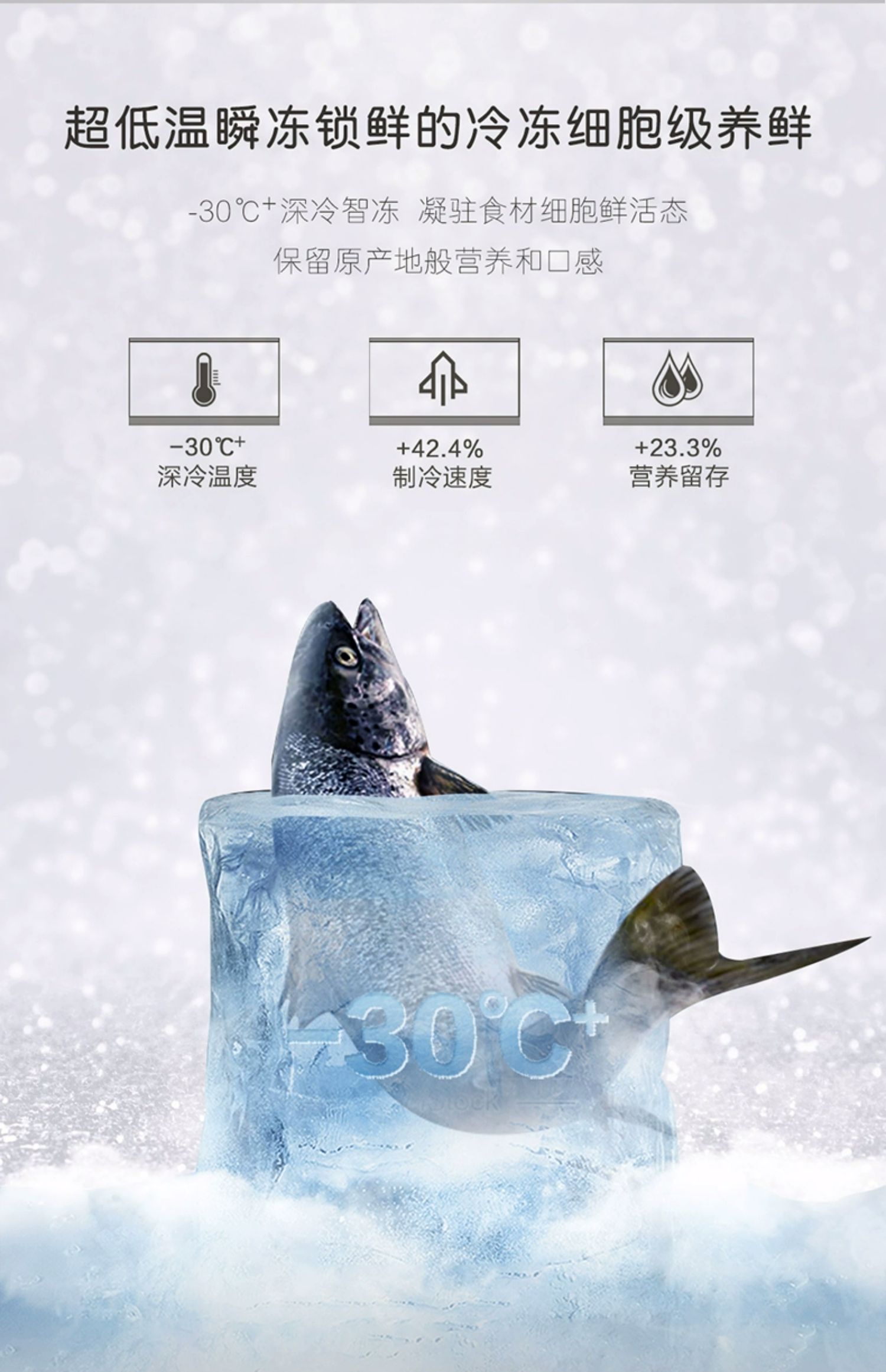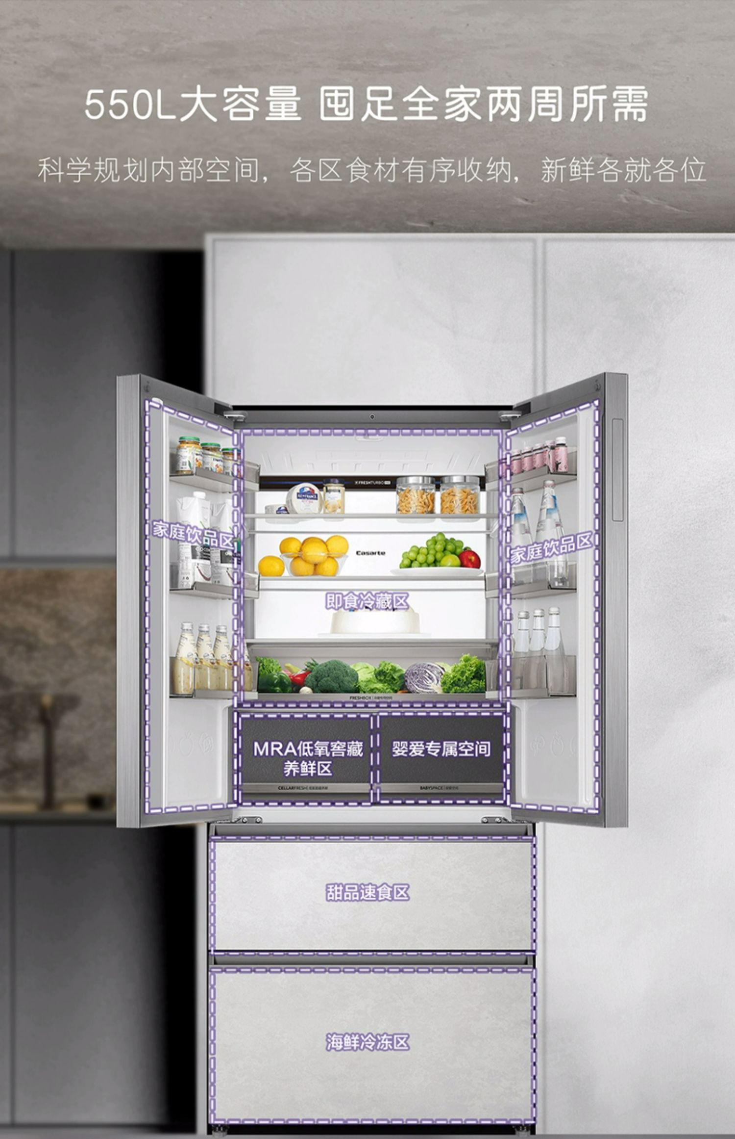 卡萨帝零距离自由嵌入式冰箱.素岩系列零距离自由嵌入式,空间融合的秩序之美,冰箱与橱柜0cm无缝衔接,打造浑然一体的厨居空间。