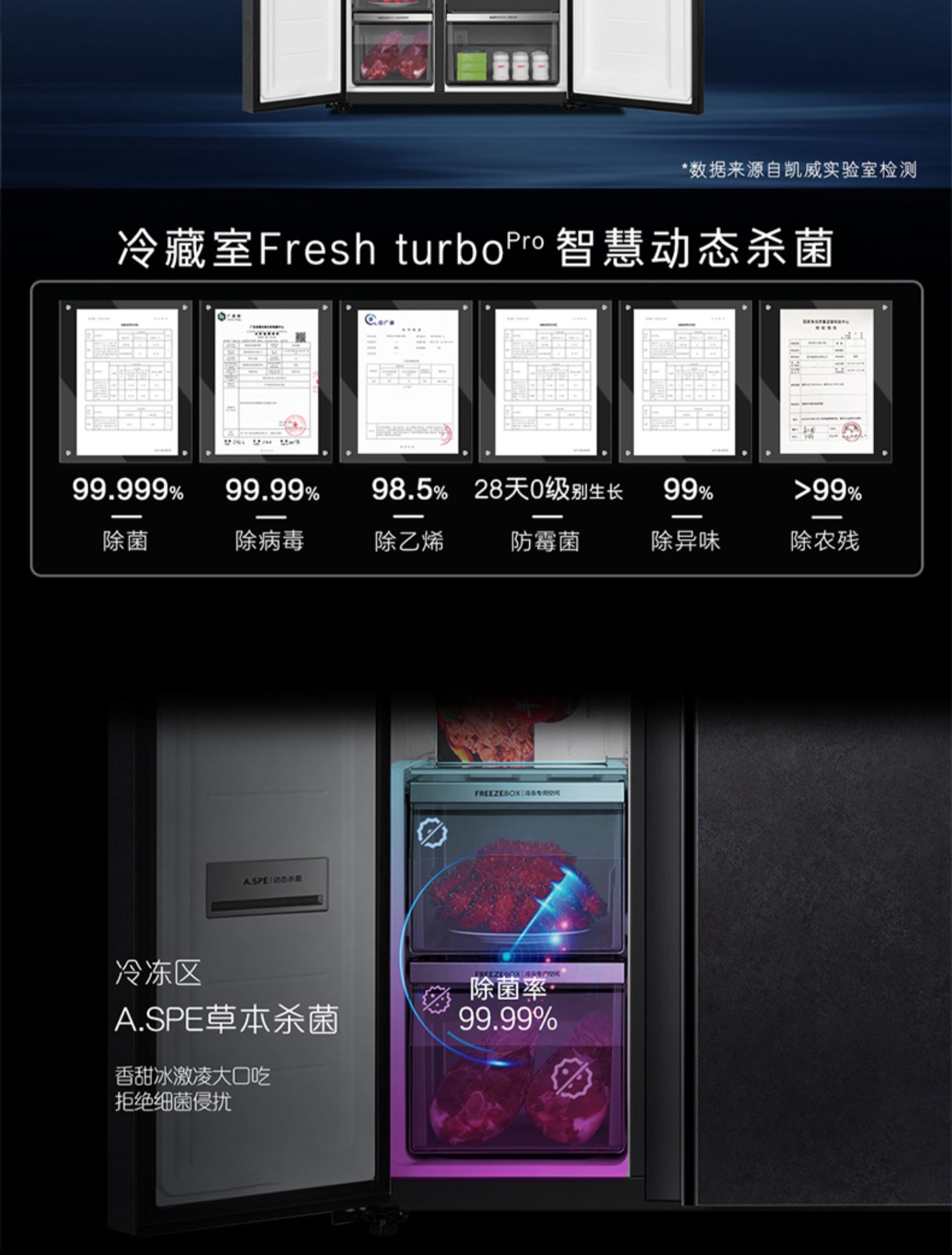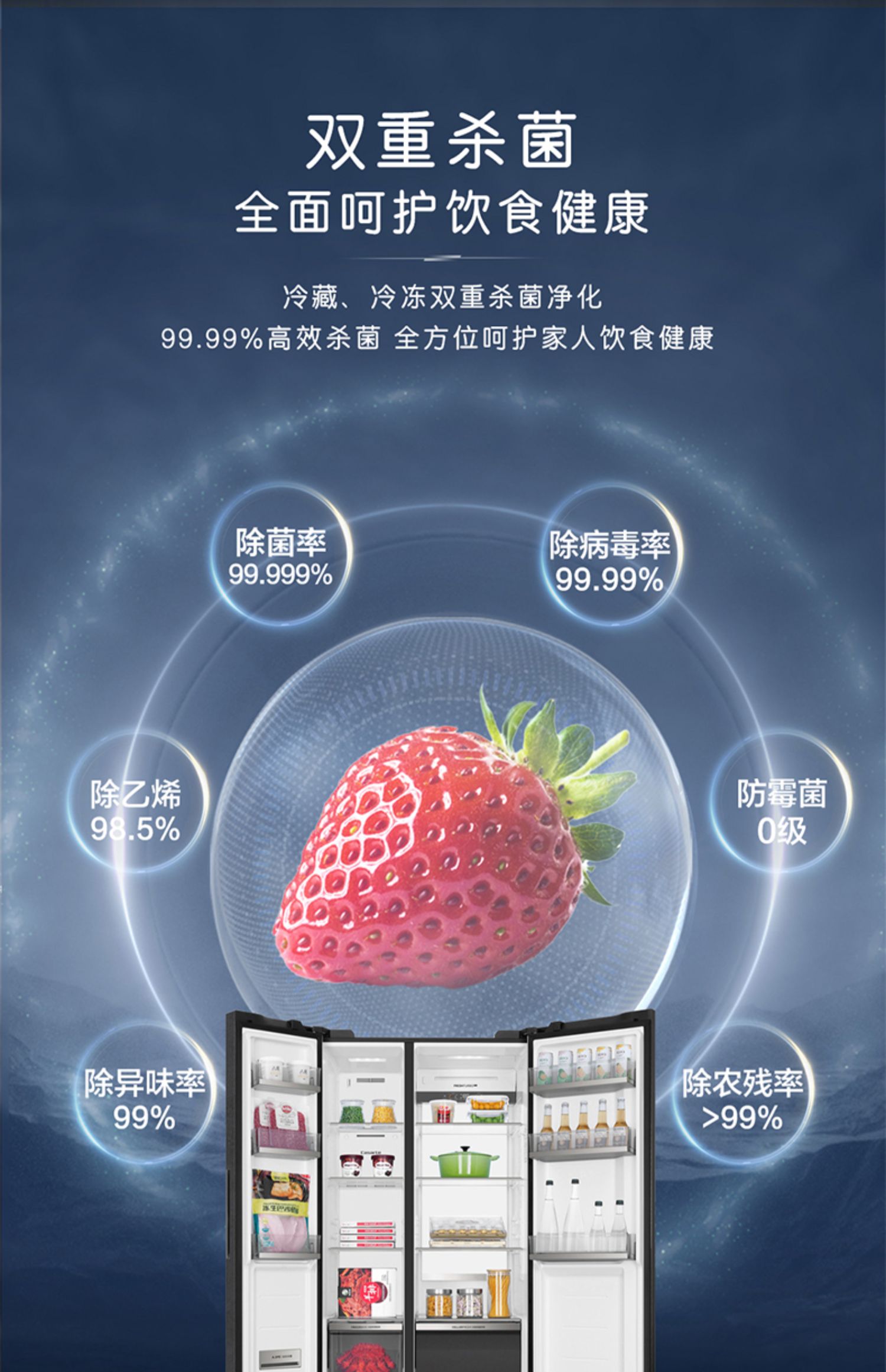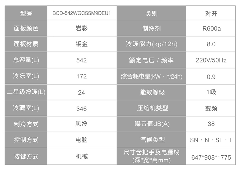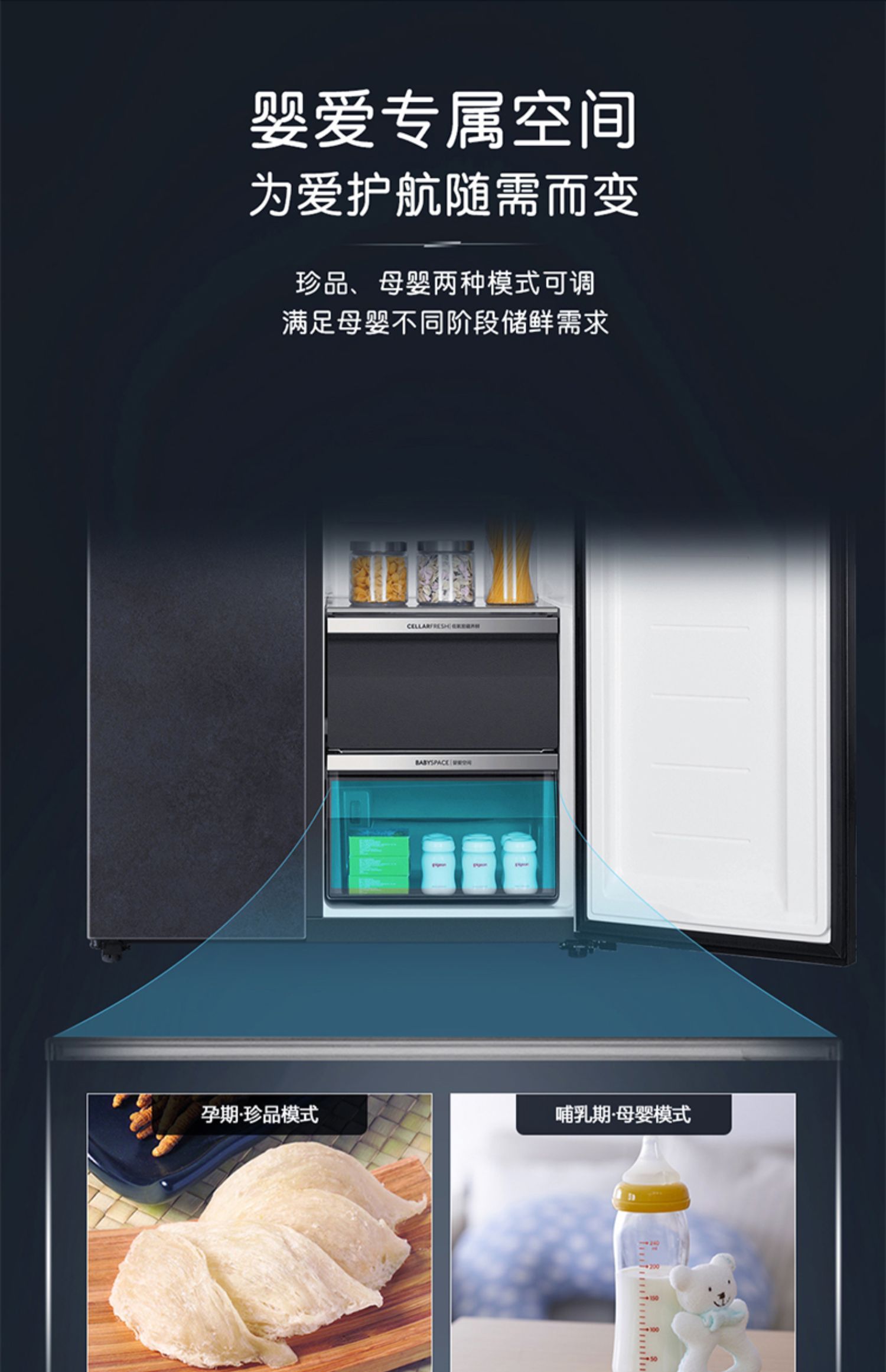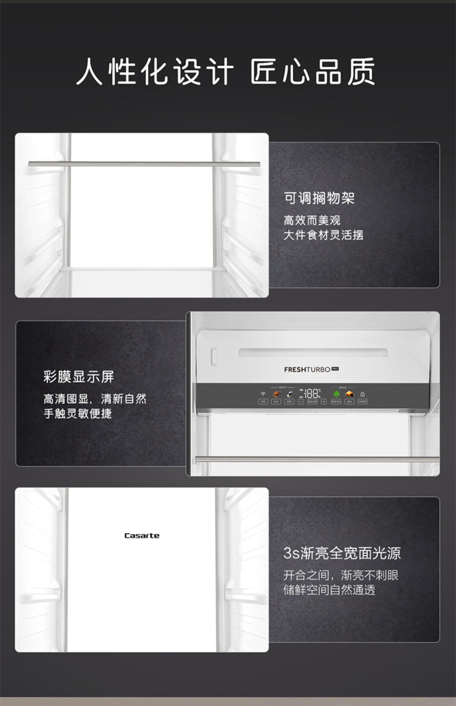 国际高端家电品牌!卡萨帝!自由嵌入式冰箱原石;岩彩系列,岩彩美学自由享鲜!自由嵌入式、岩彩美学外观、542L对开大容量、MRA低氧窖藏养鲜、双重杀菌净化、婴爱空间。