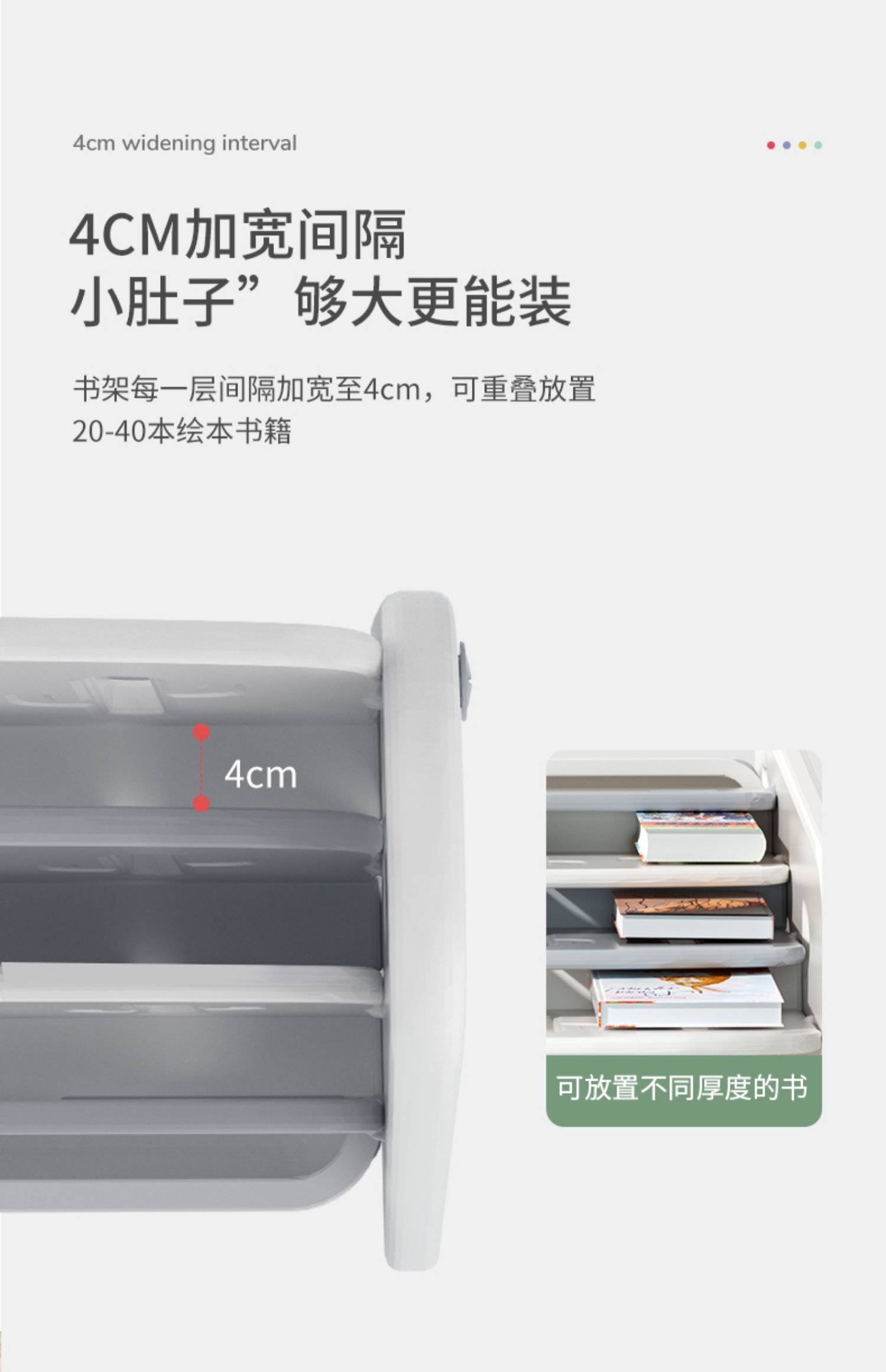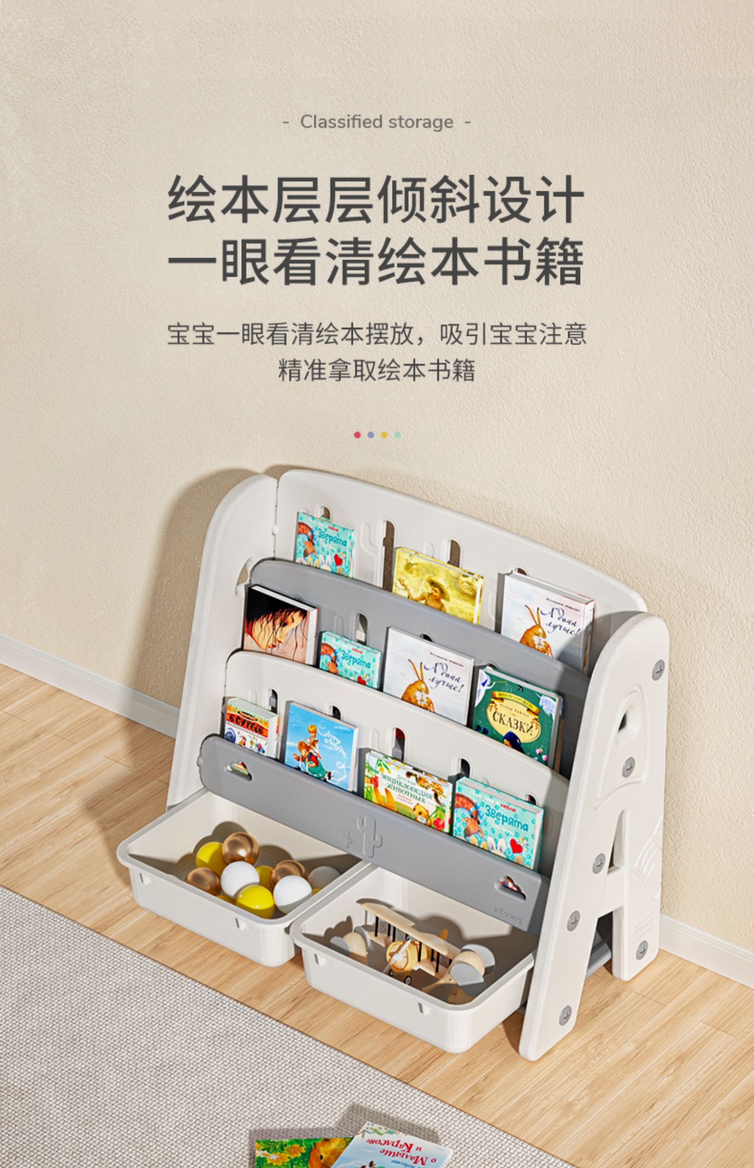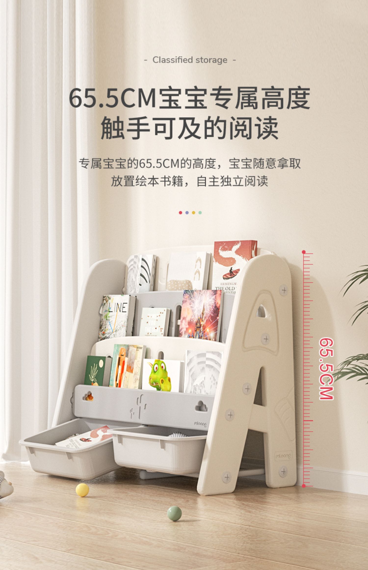 分类收纳玩具书本,加宽书槽,圆润边角,稳固强承重,让物品井井有条,可以一眼看清收纳的书本玩偶,方便宝宝准确拿取,告别乱糟糟,颜值实力双重在线~