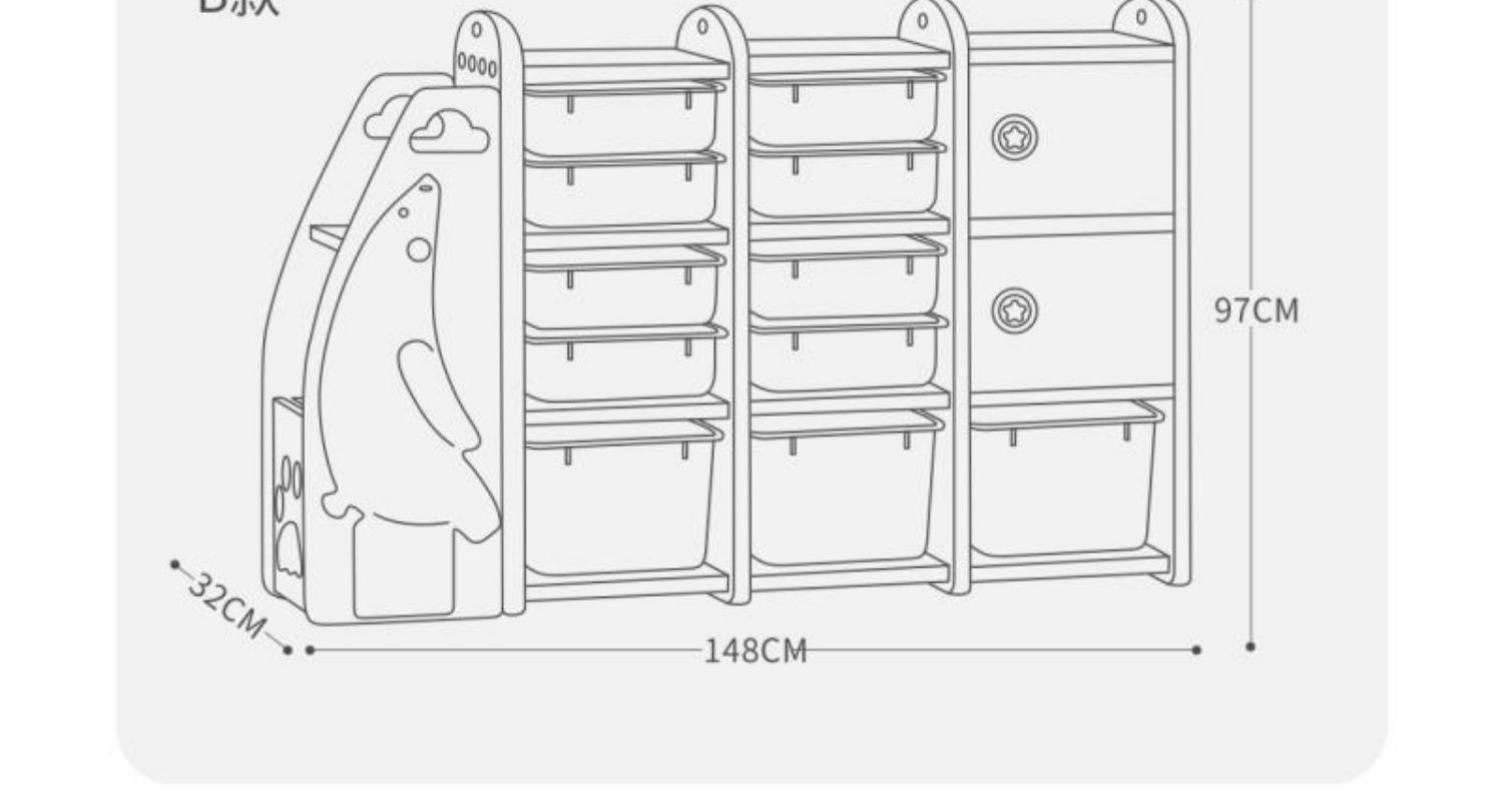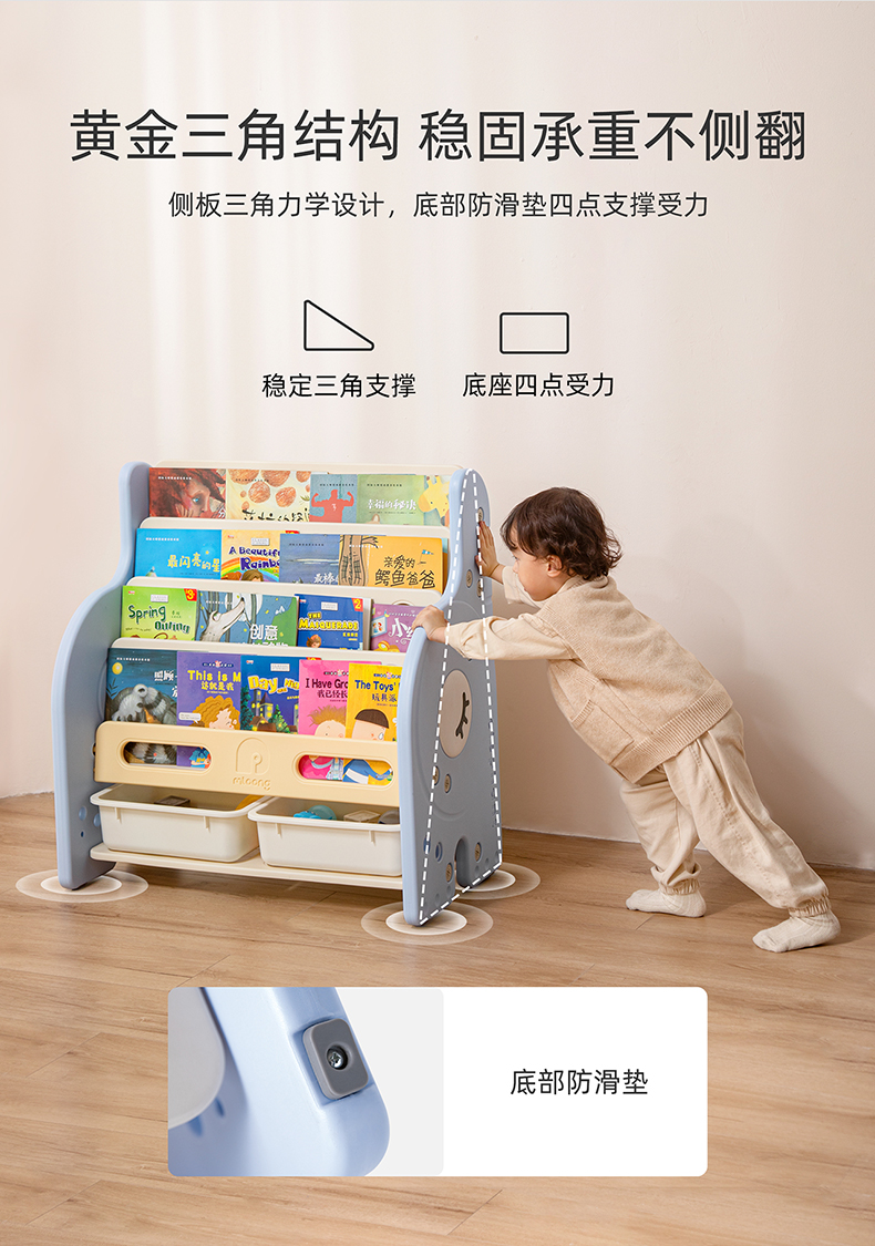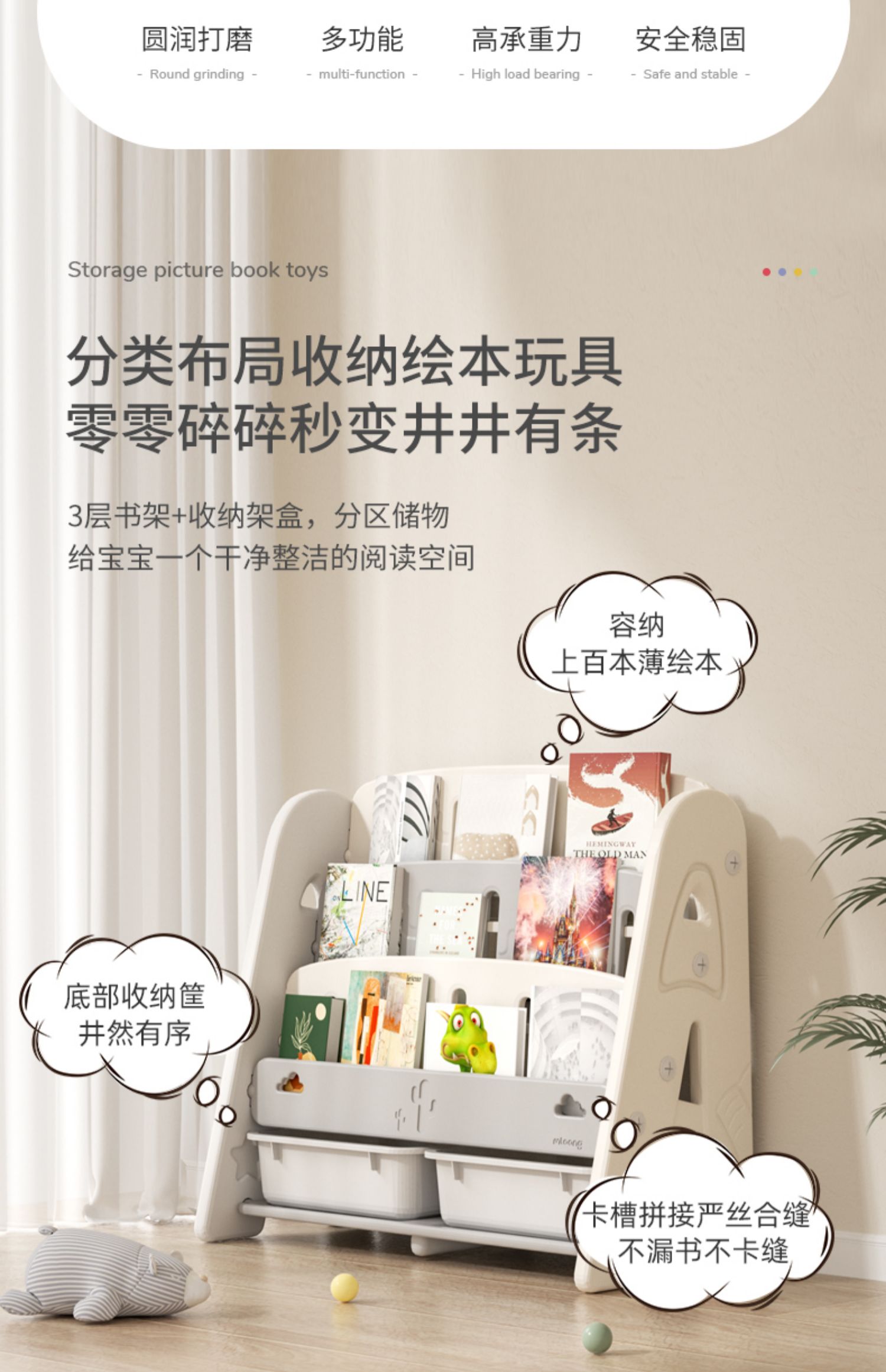 分类收纳玩具书本,加宽书槽,圆润边角,稳固强承重,让物品井井有条,可以一眼看清收纳的书本玩偶,方便宝宝准确拿取,告别乱糟糟,颜值实力双重在线~