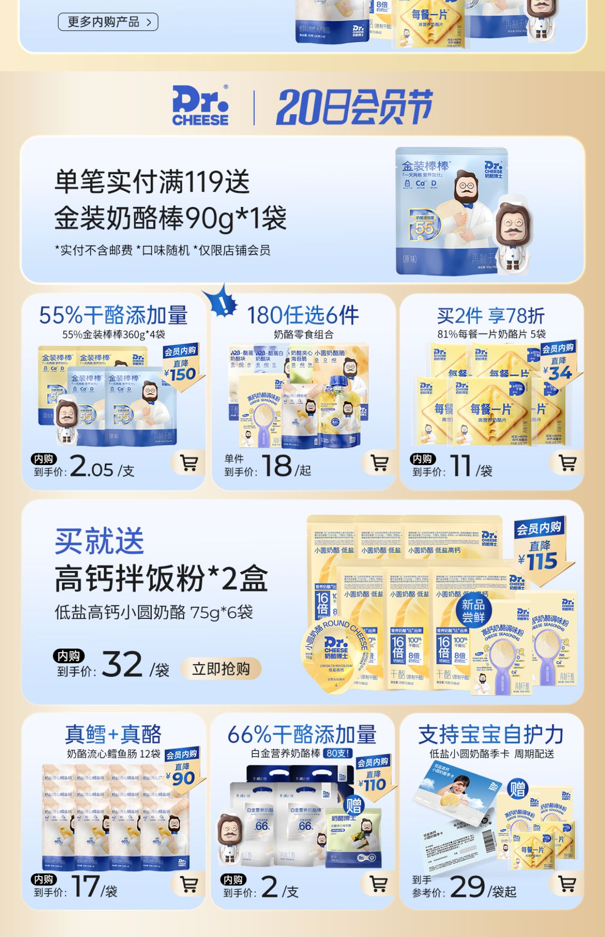 小圆奶酪16倍钙钠比,宝宝放心空口吃!拥有超干净的配料表,0糖0乳糖0添加,只有4种成分!100·%干酪,浓缩牛奶营养!拥有8倍牛奶钙营养,7倍牛奶蛋白质原生乳钙乳蛋白,好营养要好吸收!