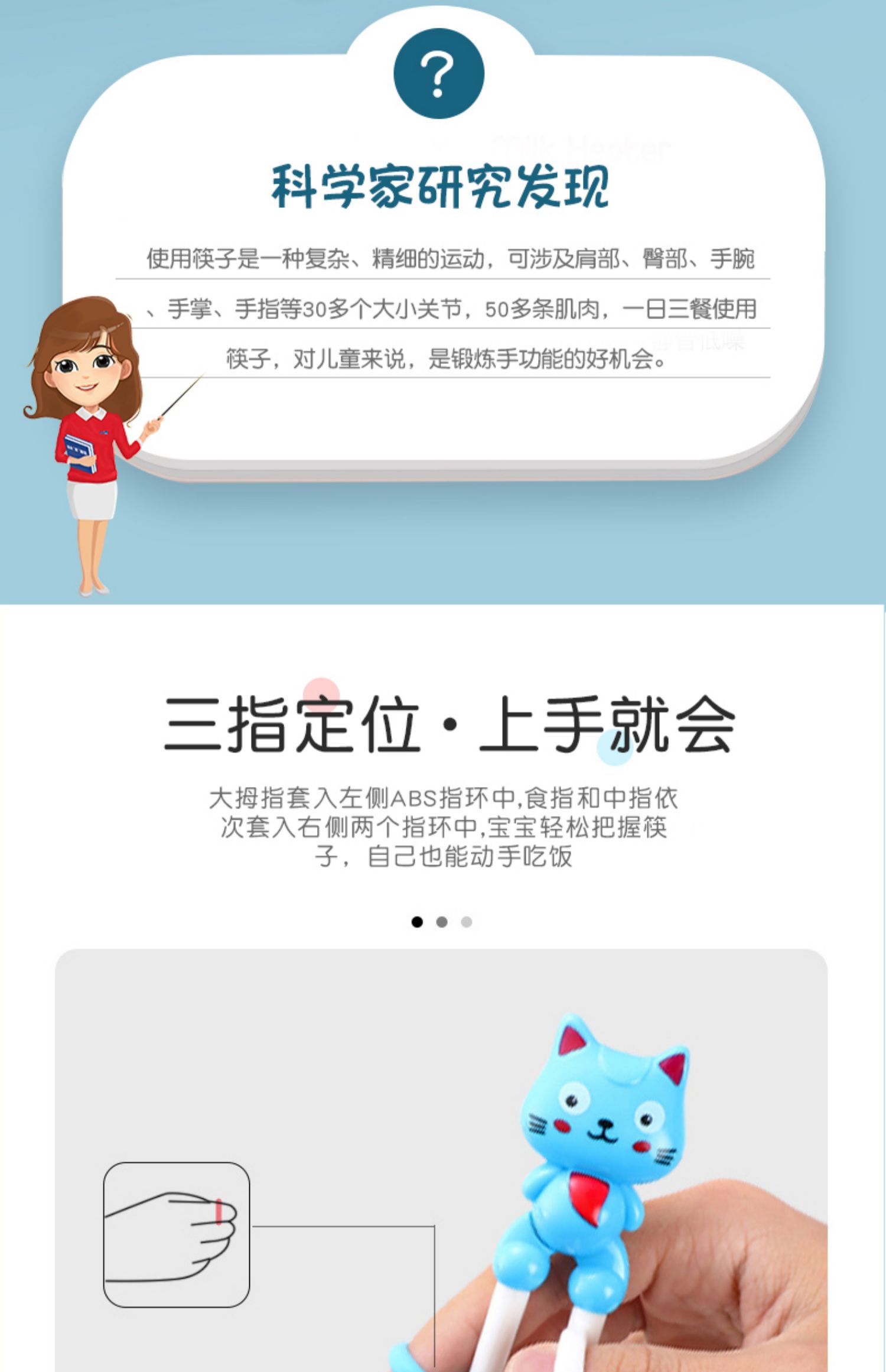 安全健康,帮助儿童正确使用筷子,科学快速学筷,方便夹取,呵护口腔,安全有保障!妈妈再也不担心宝宝不会使用筷子啦!