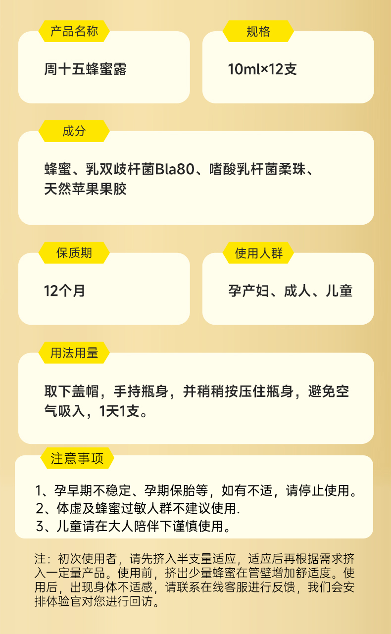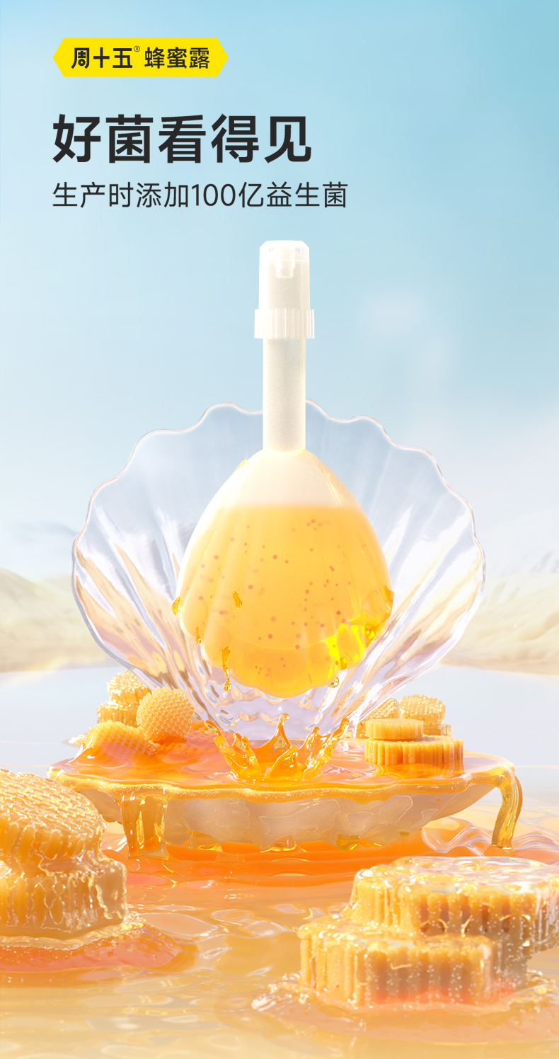 【10支】益生菌蜂蜜露栓,看得见的益生菌,加满一百亿噗噗动力,五大安心体检,告别后“股”之忧,温和不依赖,轻松好肠态。