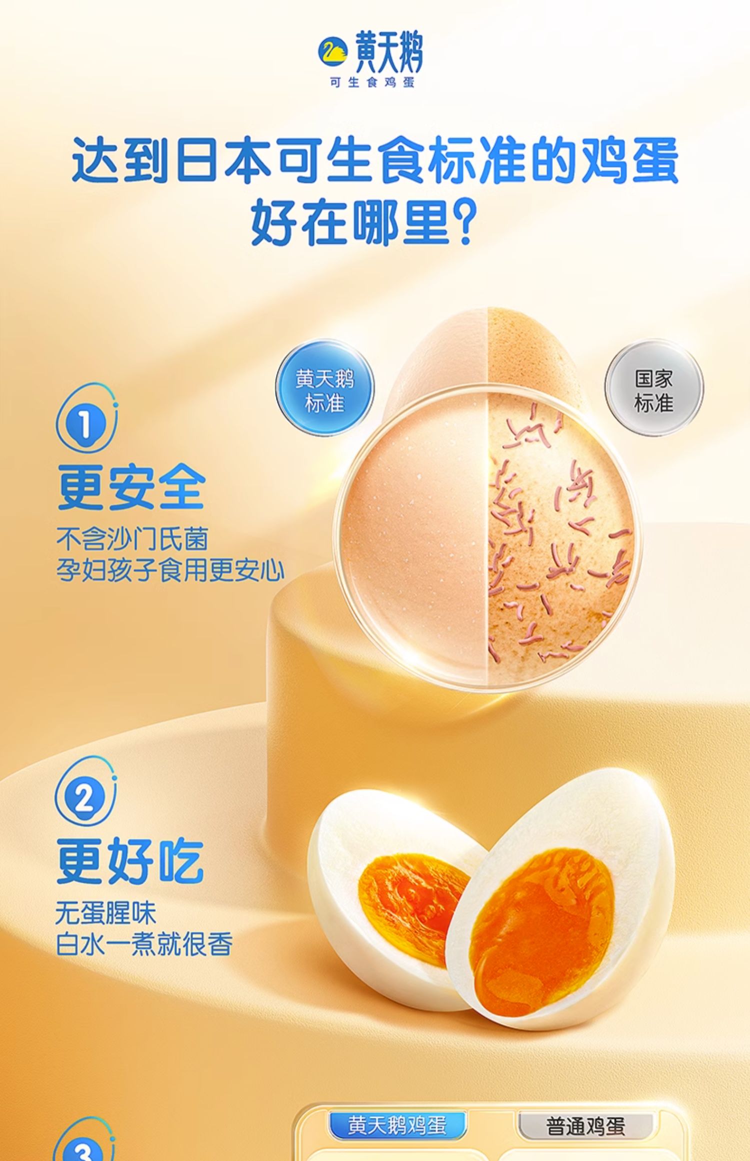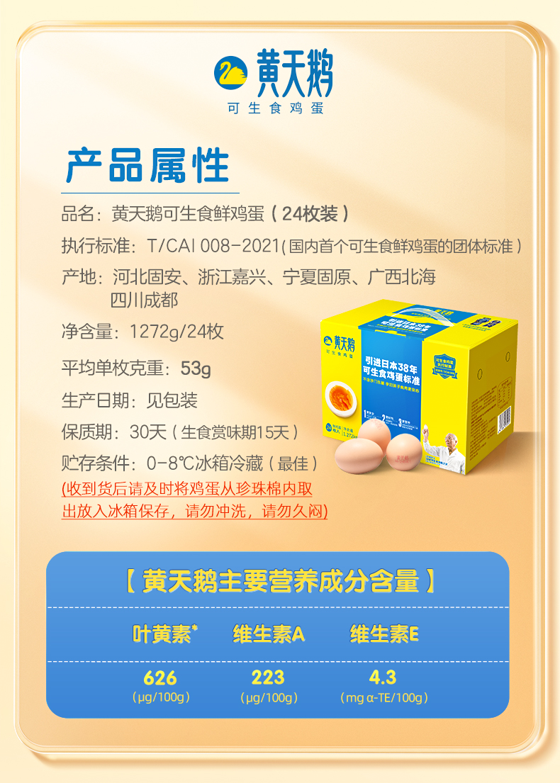 超大24枚大蛋礼品装,不含沙门氏菌,3A品质控制,荣获比利时IQTI风味金奖鸡蛋,手工甄选,可生食,蛋黄色泽光亮,呈现出红橙色!腥味小,味道略甘甜,营养价值极高。满2件送赠品蛋卷。