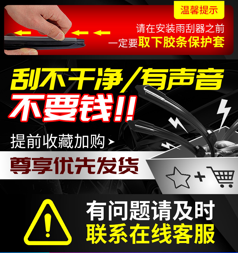 注意了!如果没备注车型和年份的,以及专用接口不匹配的,会默认发原车雨刷替换条,【拍下留言车型号即可】采用天然橡胶,减少磨损更静音,高碳记忆钢片,刮拭更干净,原装新升级【赠运费险】