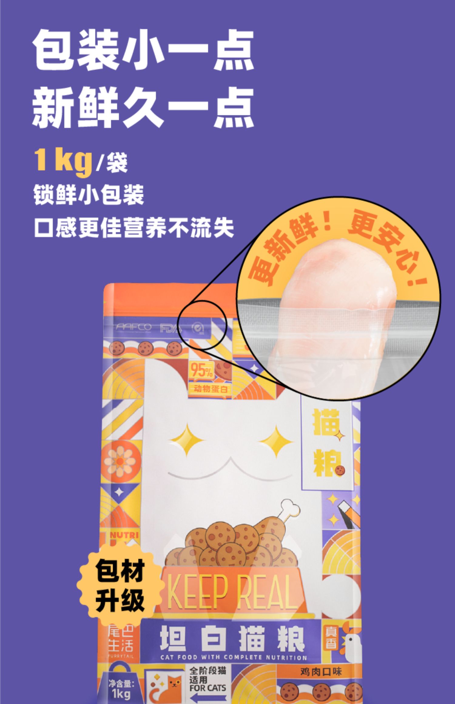 furrytail旗舰店,无谷低敏,优质蛋白,百分之70含肉量,大口吃肉的满足感,百分之38粗蛋白,明目易消化,提高免疫力,促进大脑发育