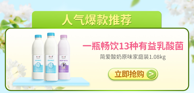 简爱大牌!生牛乳,糖,乳酸菌其他没了,大瓶喝起来超过瘾配方升级,添加13种乳酸菌,焕新上市!清新冰爽的饮用酸奶,够营养,才配与家人分享!