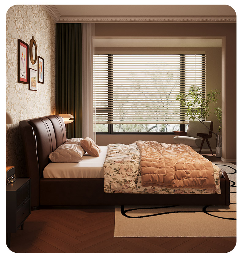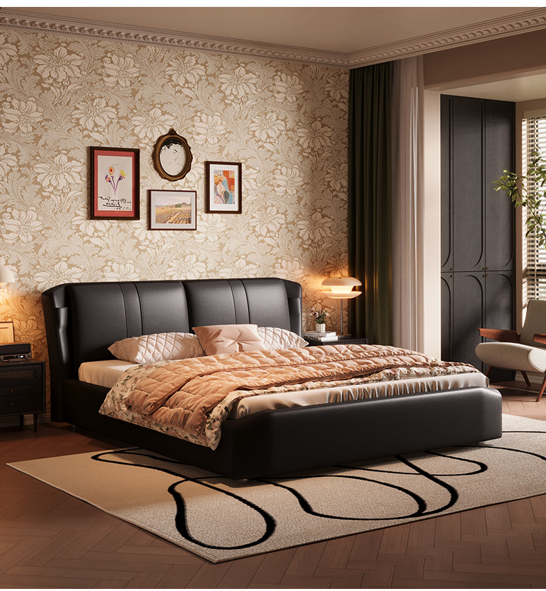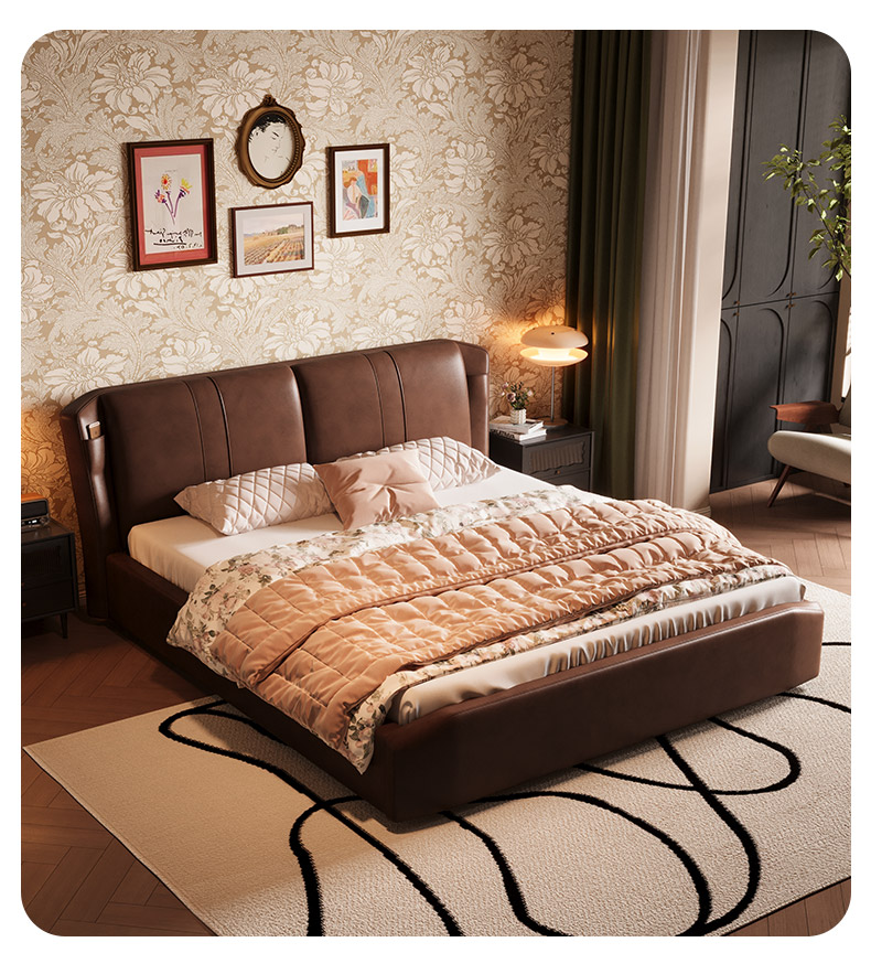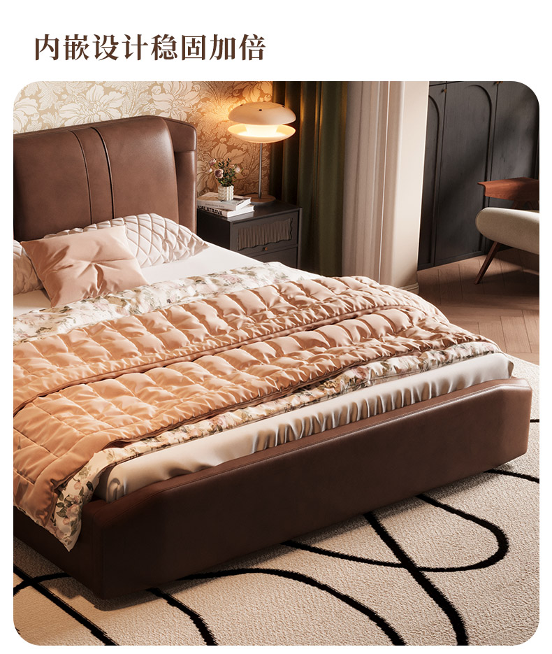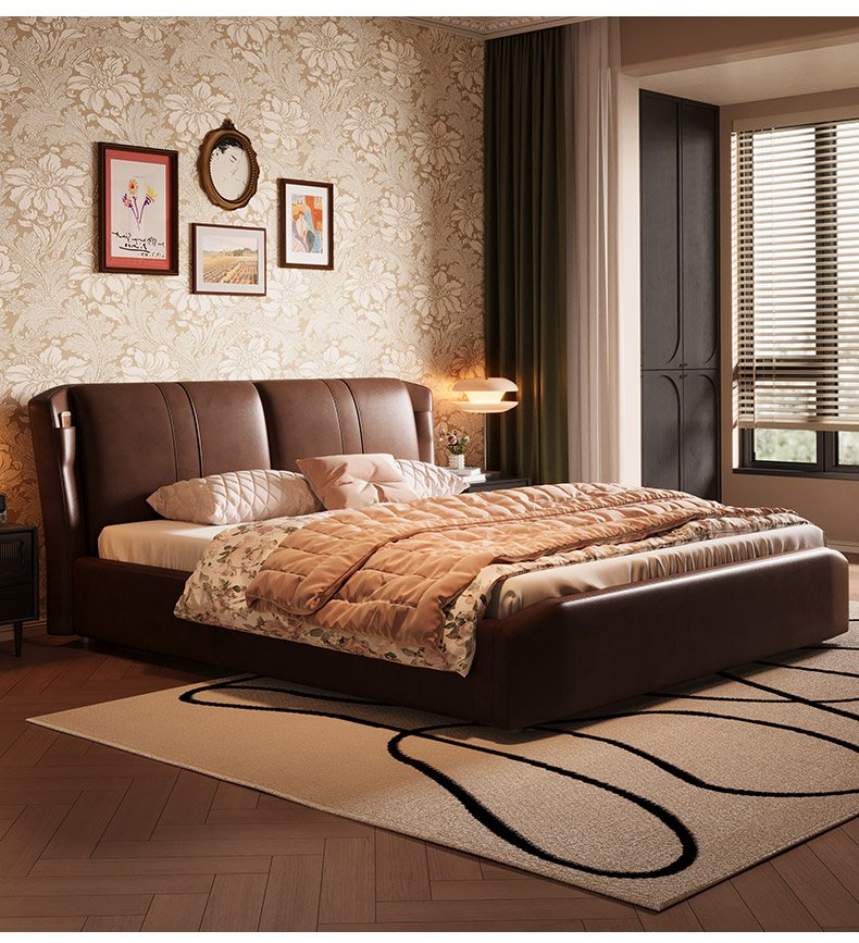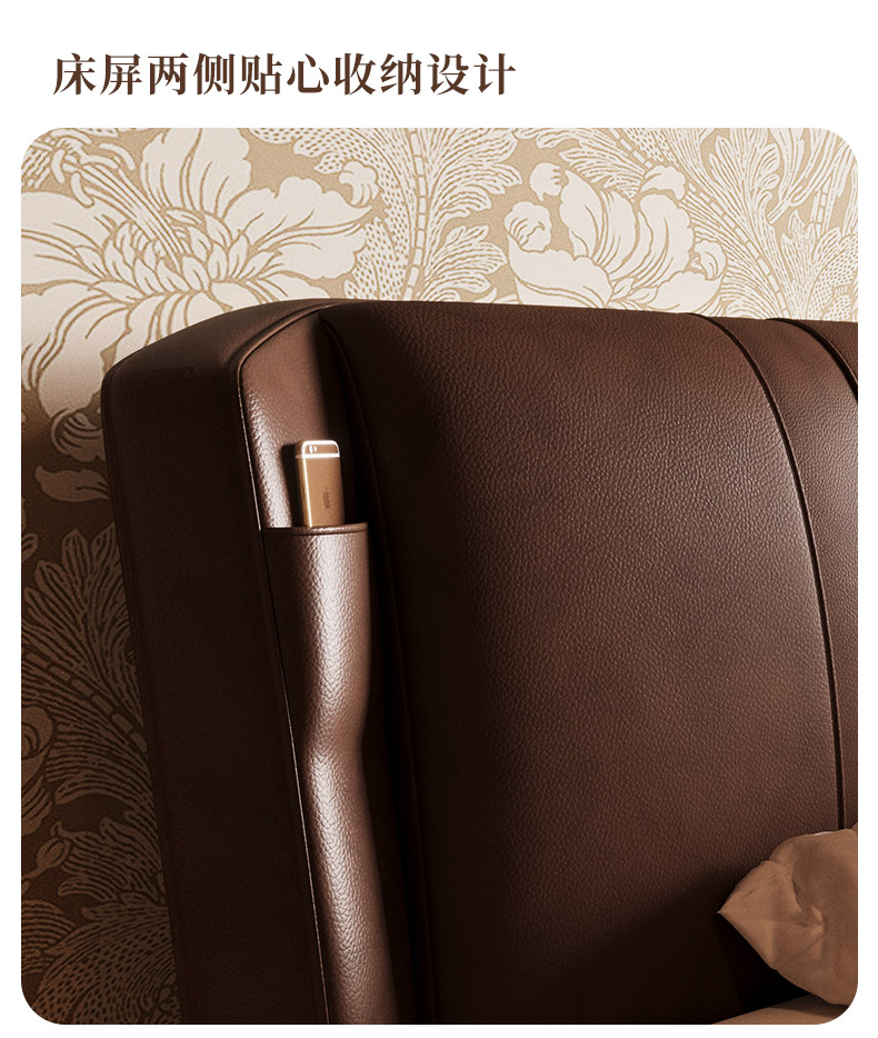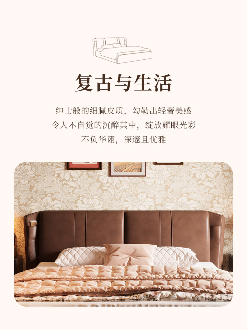 慕思床现代简约真皮床高端大气实木床,主卧大床复古风软包床双人床