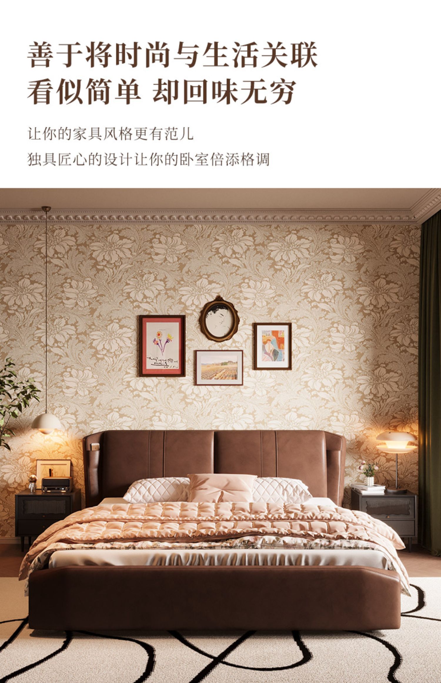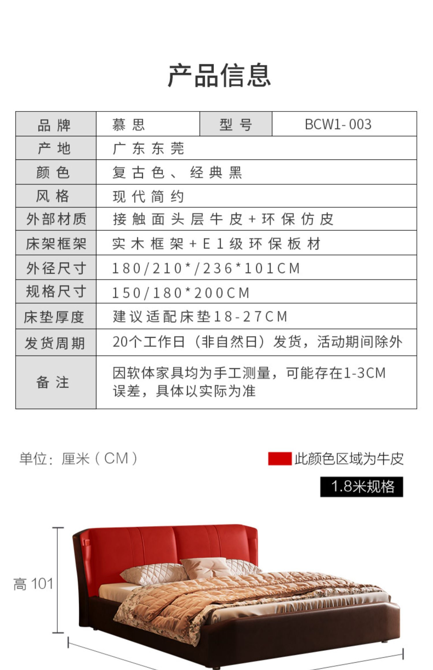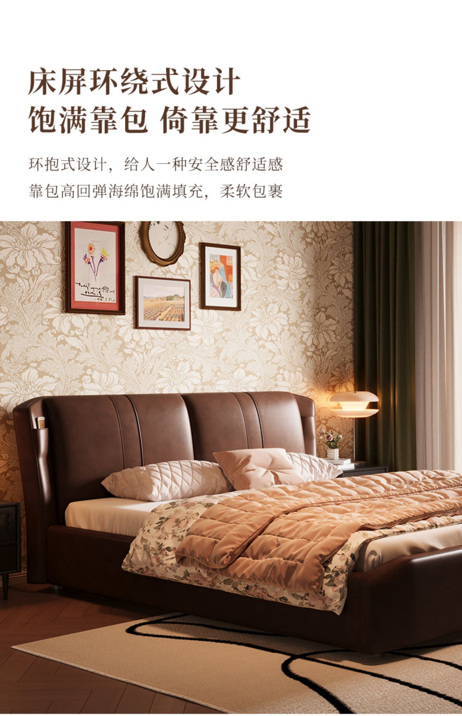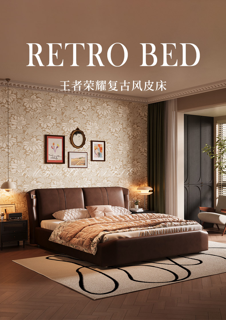 慕思床现代简约真皮床高端大气实木床,主卧大床复古风软包床双人床