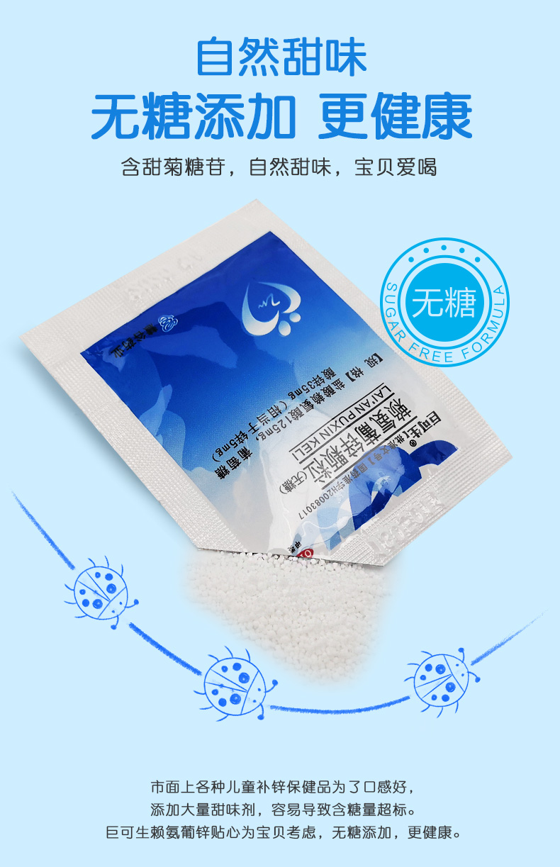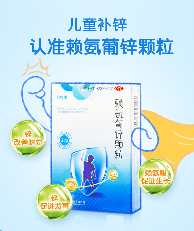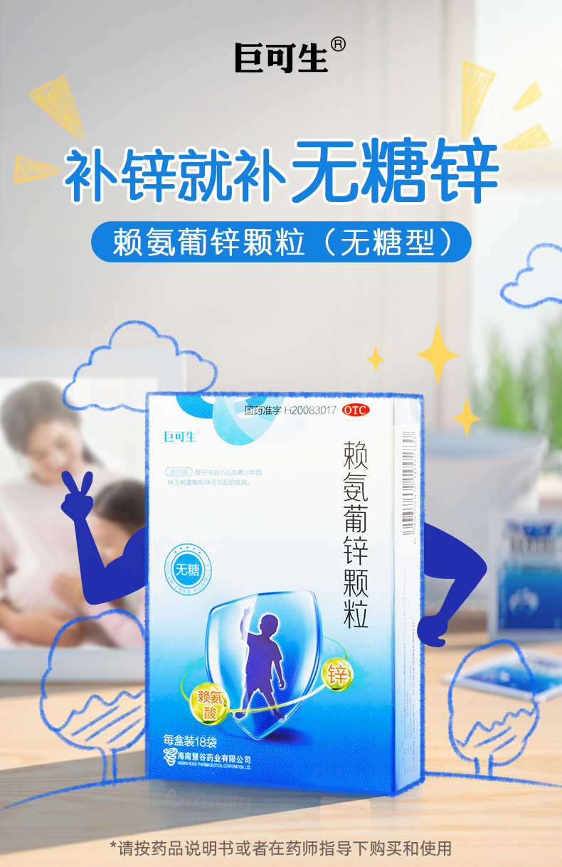 巨可生官方正品、赖氨葡锌颗粒,无糖锌、让孩子吃饭香、长得高、身体棒、智力高、天然植物甜味宝宝爱喝、益智成长、改善孩子挑食厌食的坏习惯、加速溃疡面愈合、维持正常免疫功能、孩子少生病妈妈少担心