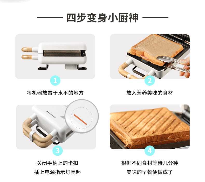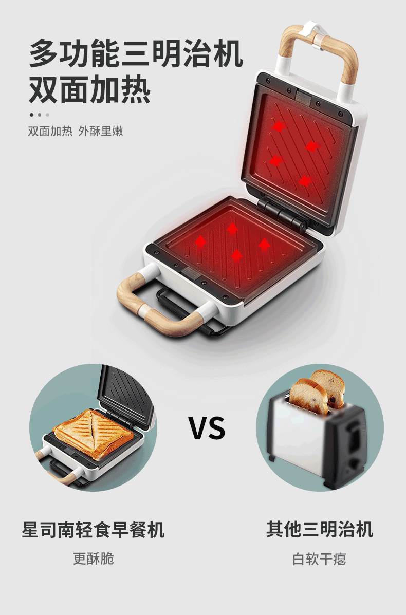 单品评论4.9高分!懒人三明治早餐机~不会做饭的也可以轻松做出各种美味!华夫饼、鸡蛋仔、三明治、万物皆可夹,3分钟搞定早餐!不粘锅,可拆洗~【下单就送食谱油涮夹子】
