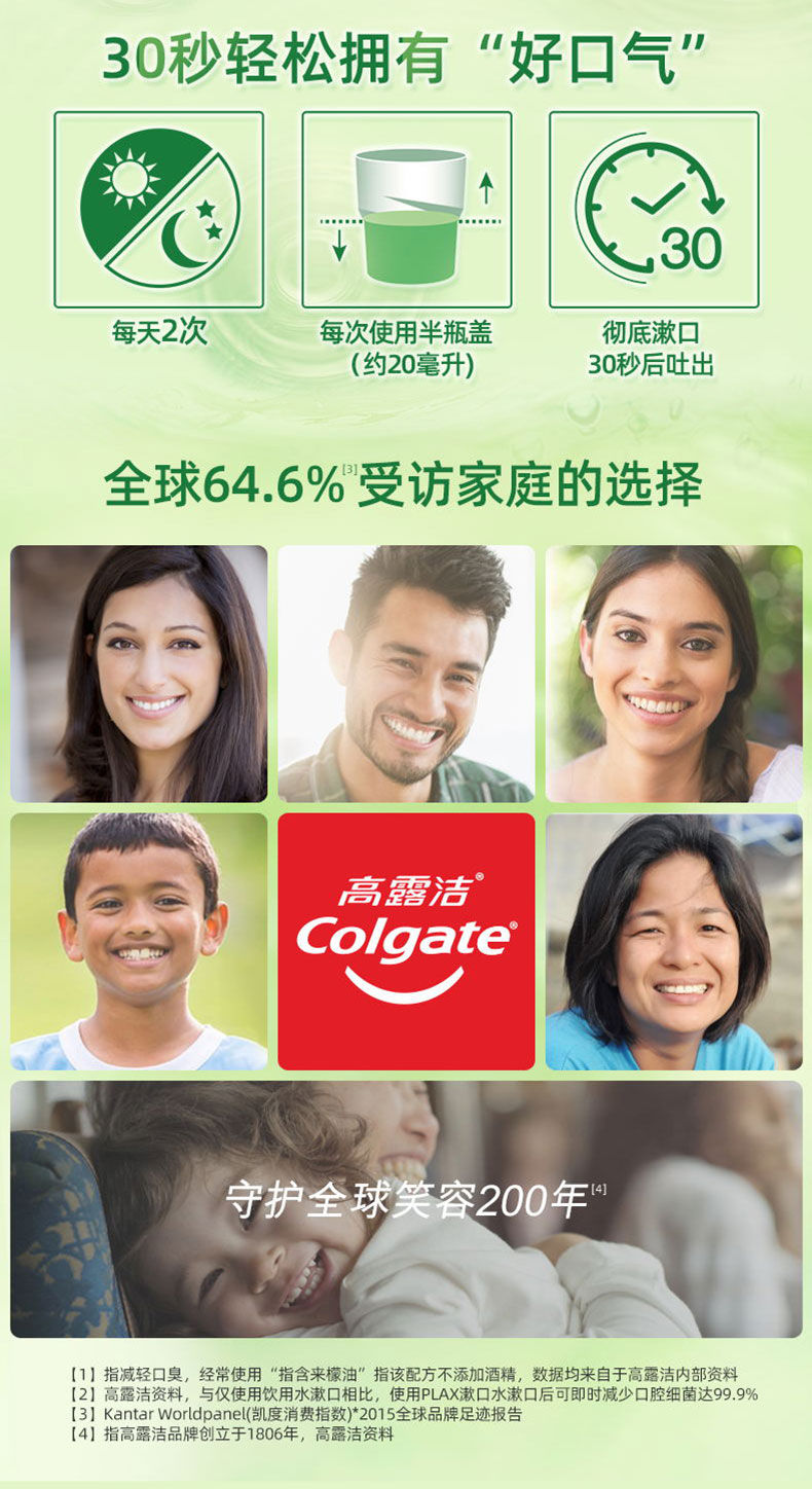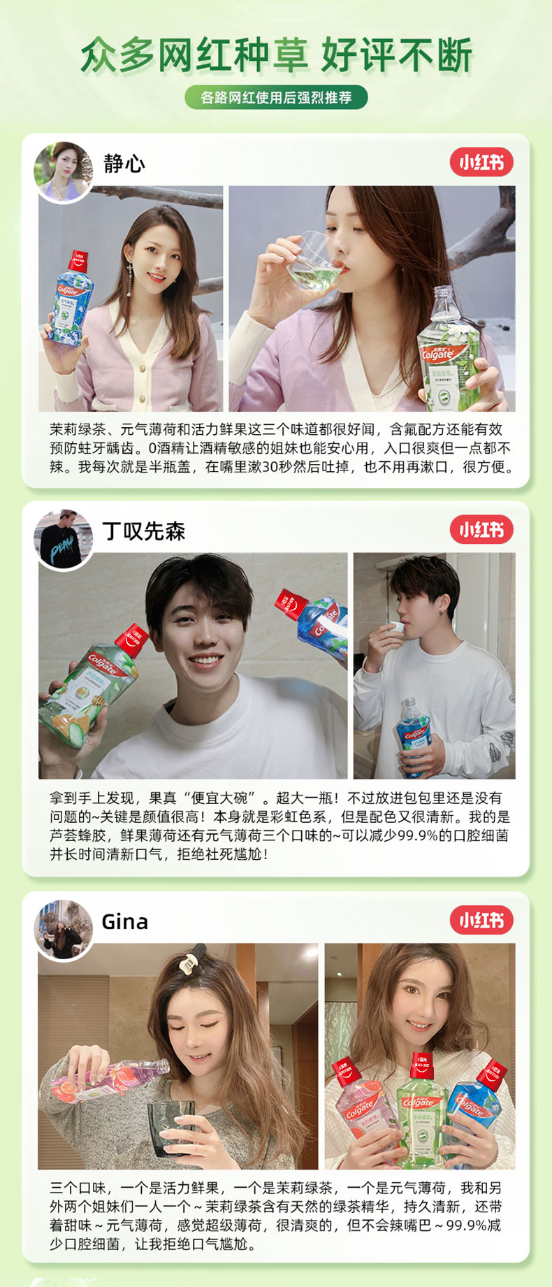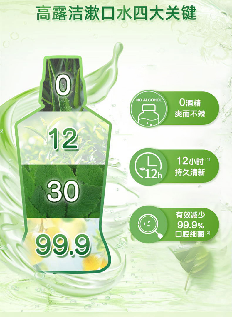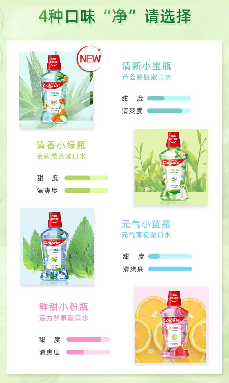 【立减30】高露洁清爽盐白+活力鲜果漱口水500ml*4瓶,爽而不辣,持久清新!清新盐爽,自然纯净!长效抑制细菌,有效防止蛀牙!有效渗入对抗口腔细菌,强健牙龈!