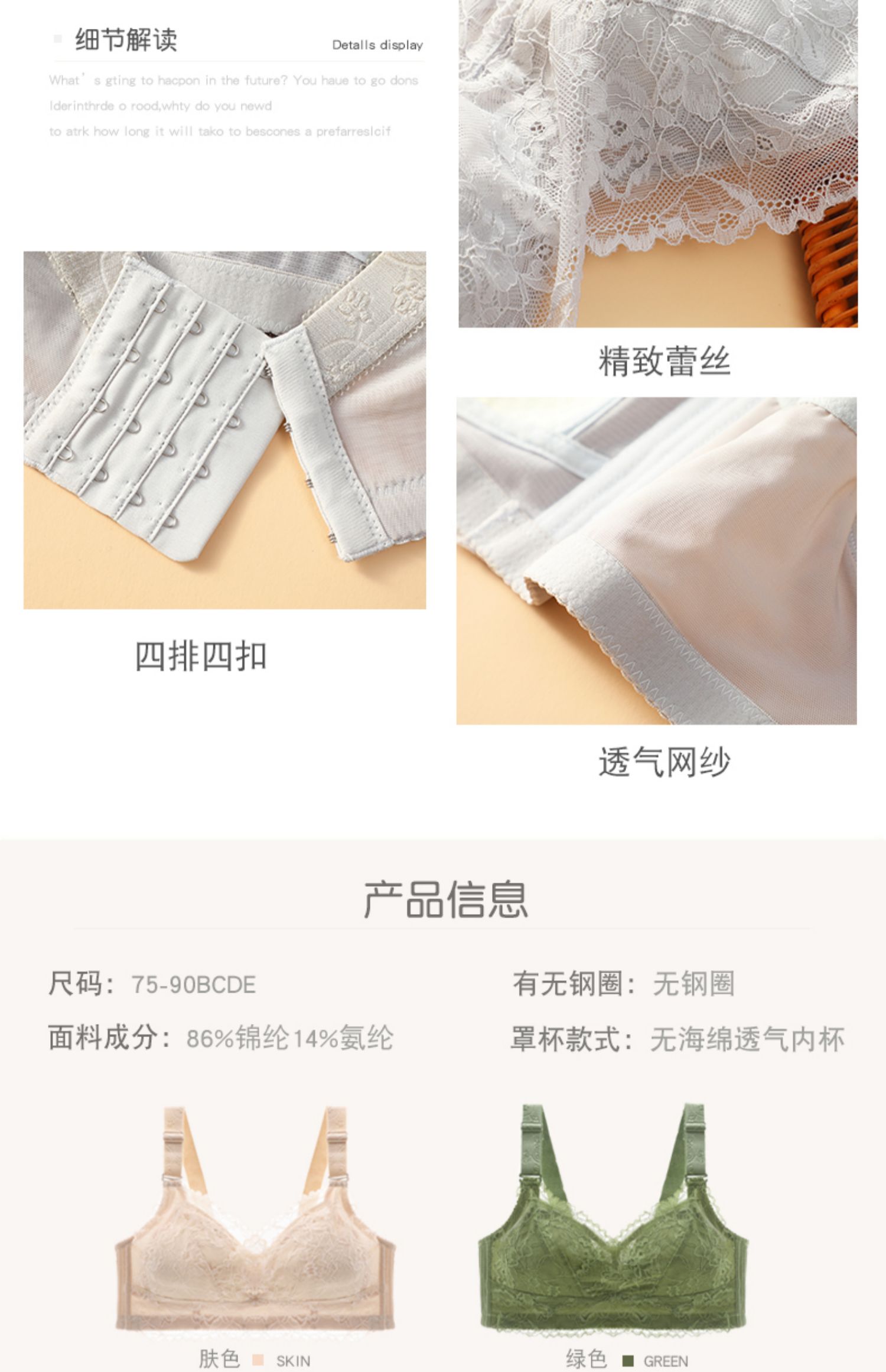 【南极人】2020新款无海绵蜂巢透气内衣,精致蕾丝,透气网纱,柔软无钢圈,调整型收副乳,大胸显瘦,穿衣有型不臃肿,释放压力,轻松一整天!【赠运费险】