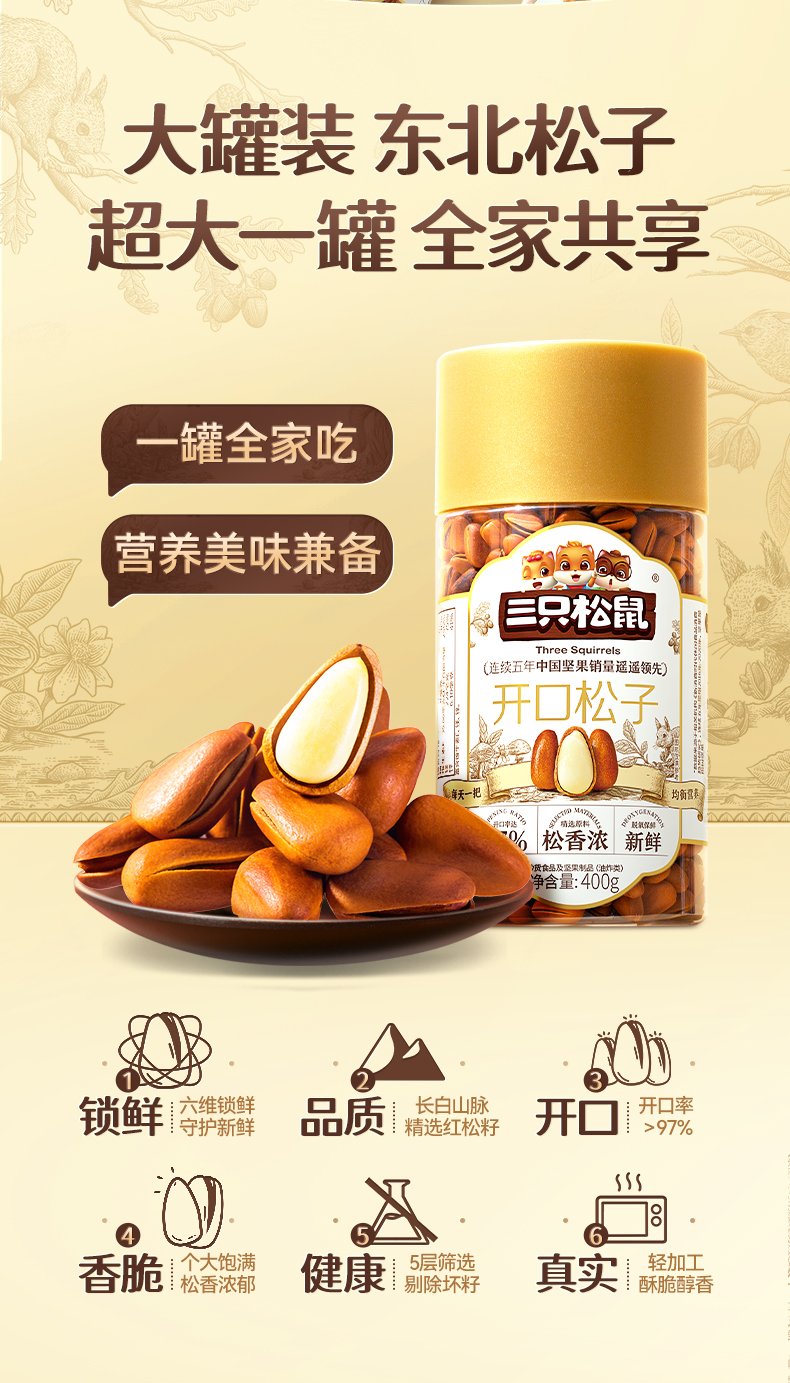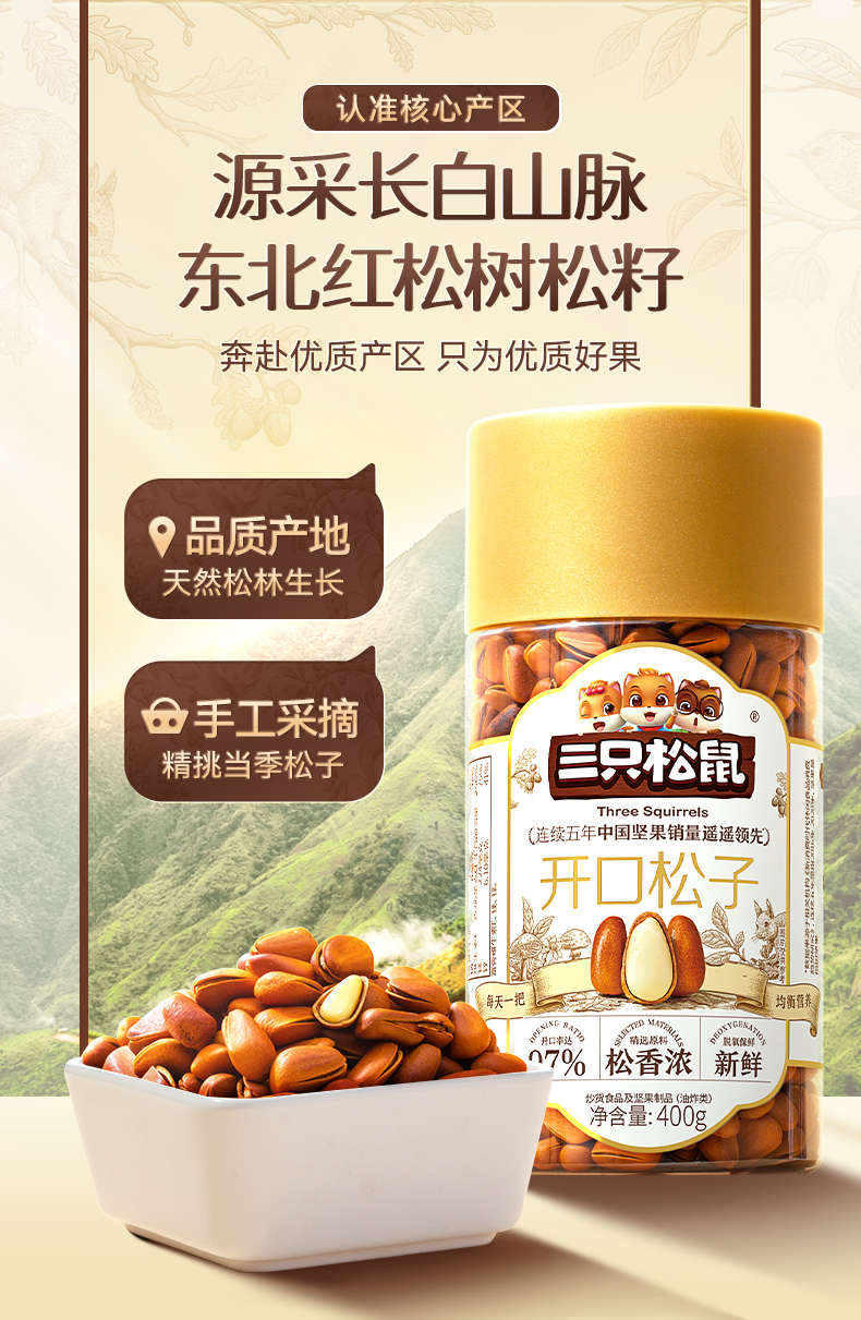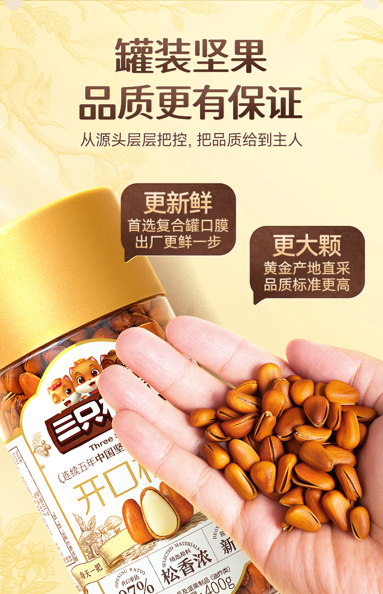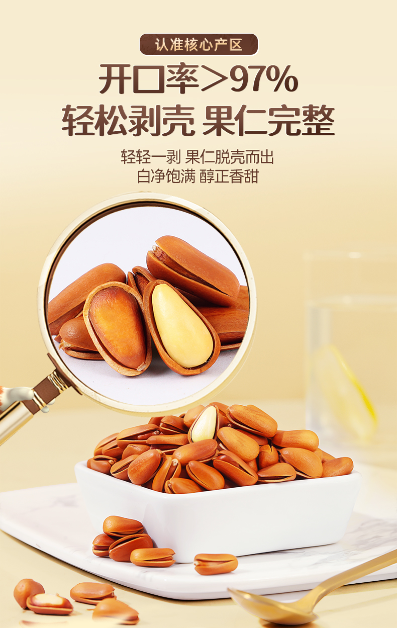 产自东北松香浓郁东北松子,颗粒饱满,大小均匀。新鲜当季采摘,原色原香,纯粹滋味。精选当季大果,颗颗饱满,纯正松仁香,咔嚓一口,唇齿松香!