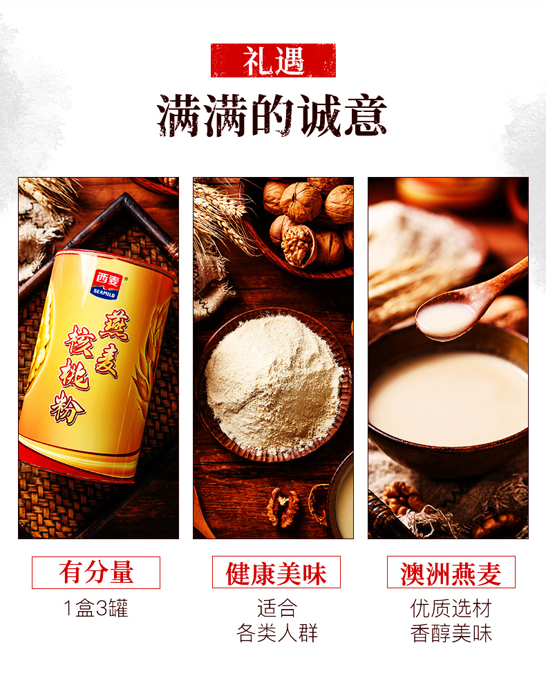 速度拍,马上过年啦,礼盒囤起来!!这可是西麦的燕麦核桃粉礼盒!线下一盒都69,咱今天只要39.9!满满的诚意!滋补好品!营养贼丰富!适合各类人群!过年送家长,送长辈,走亲访友提着都倍有面!!