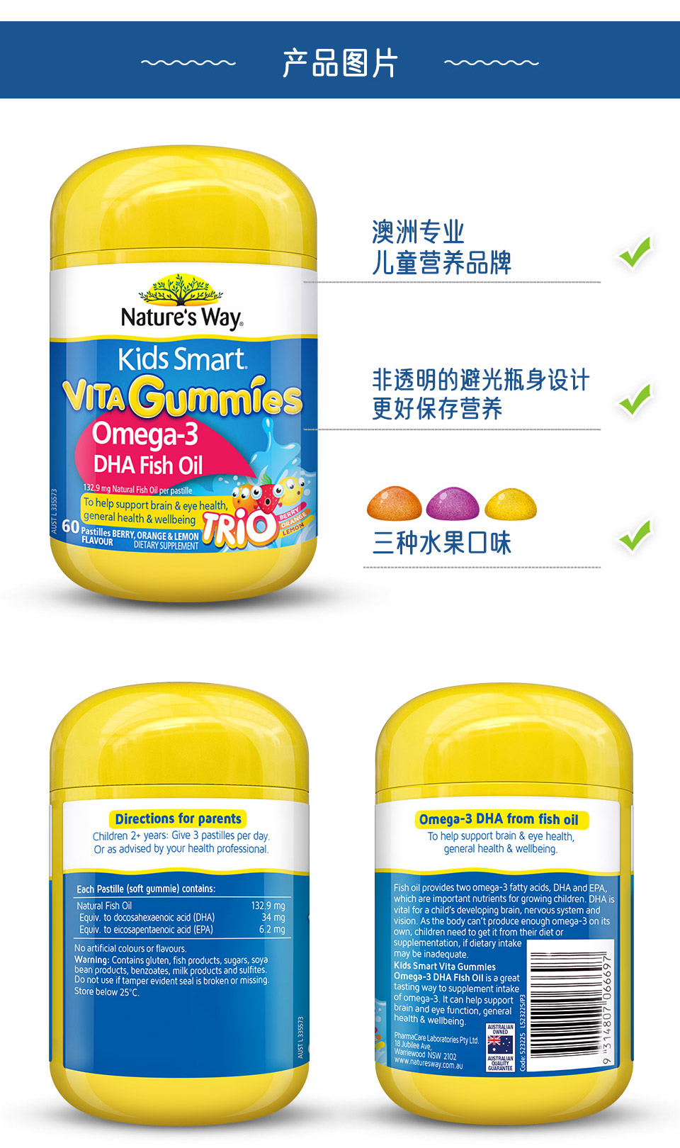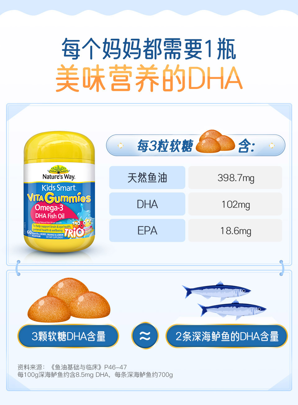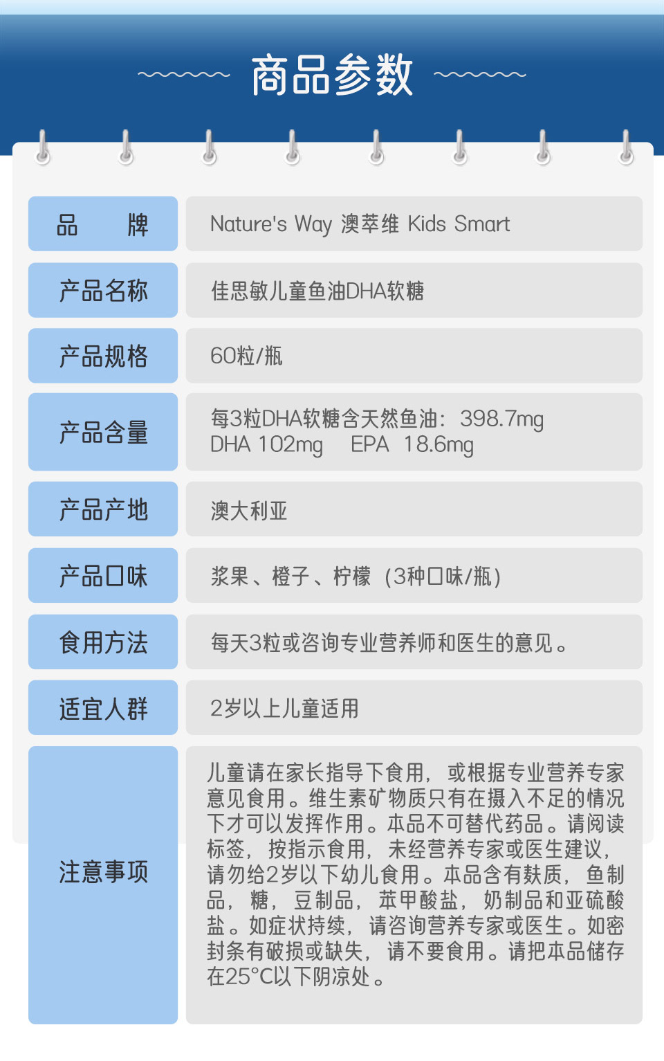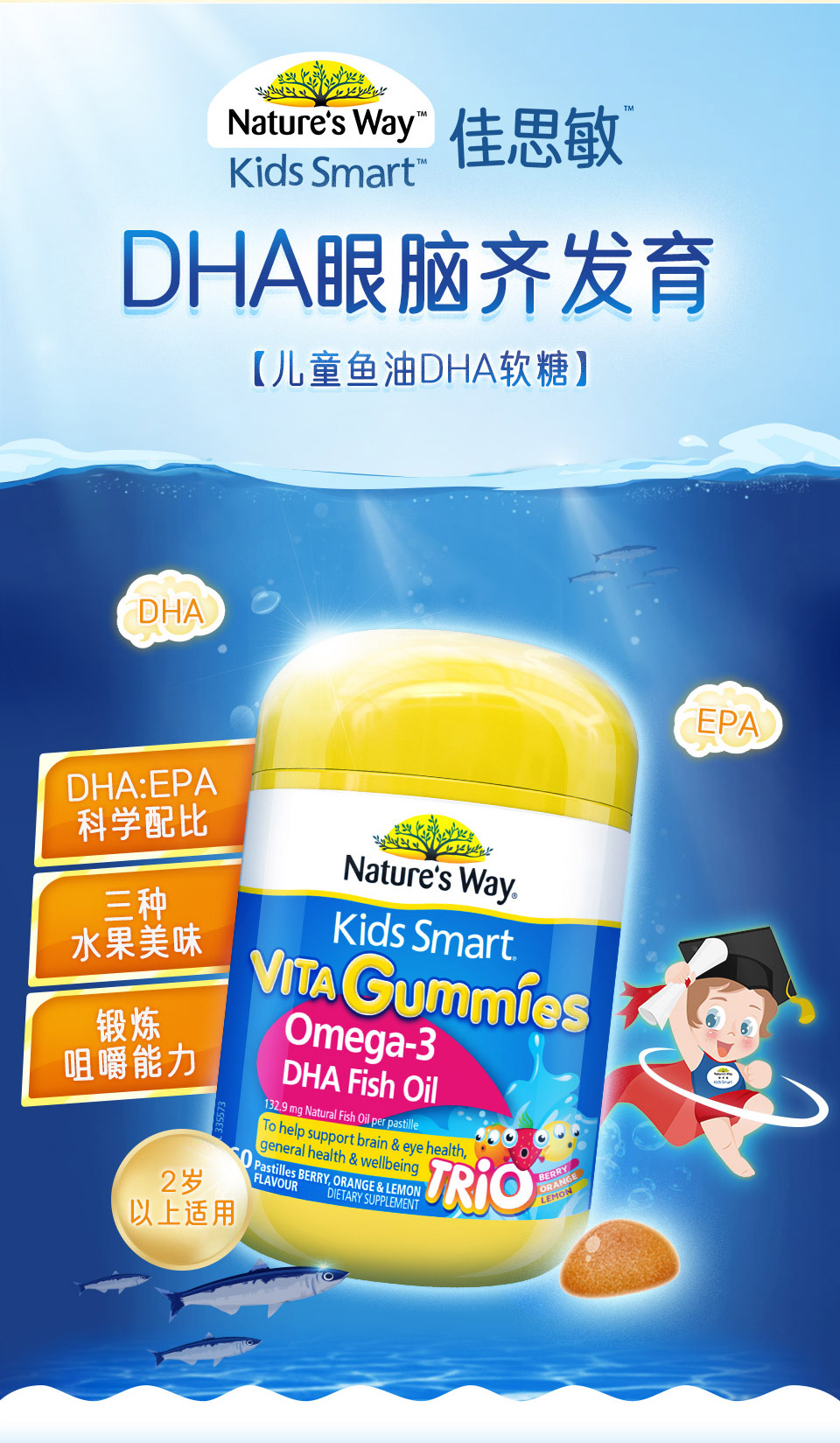 佳思敏儿童三色dha鱼油60粒*2 标题下领取300-30券凑单VIP82得2瓶折41/瓶 天猫国际自营,进口直发