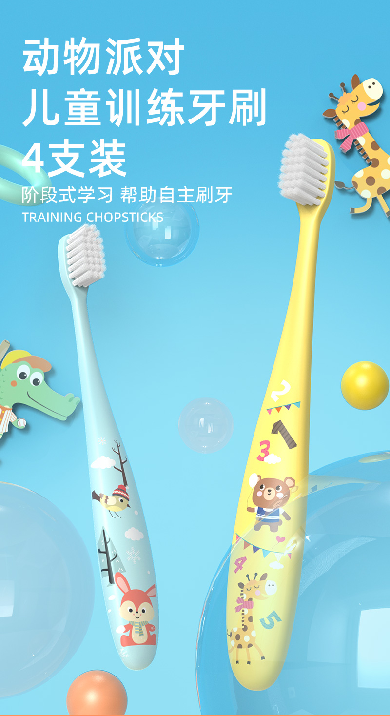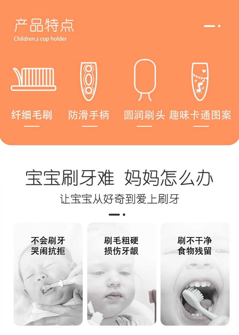 儿童专用,口腔护理从小做起,儿童棉柔牙刷,给宝宝柔软的呵护,微细软毛,零刺激按摩~