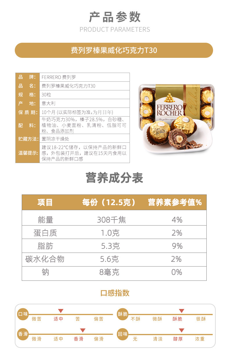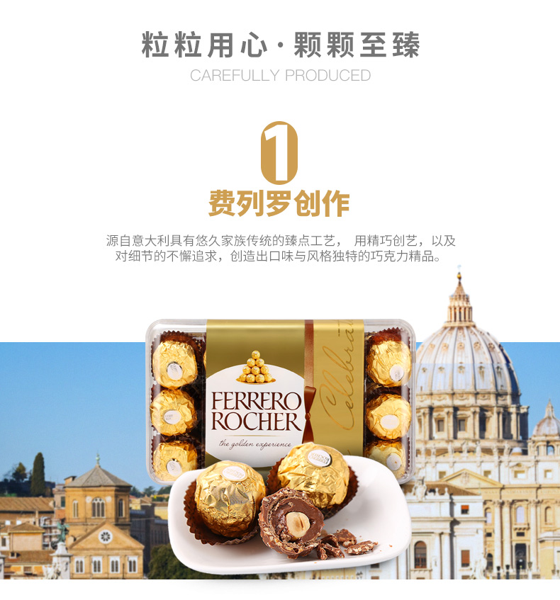 源自意大利具有悠久家族传统的臻点工艺,多层式用料带来多层口感的享受。不含代可可脂,松脆碎果仁,丰富口感。每颗都是独立包装。