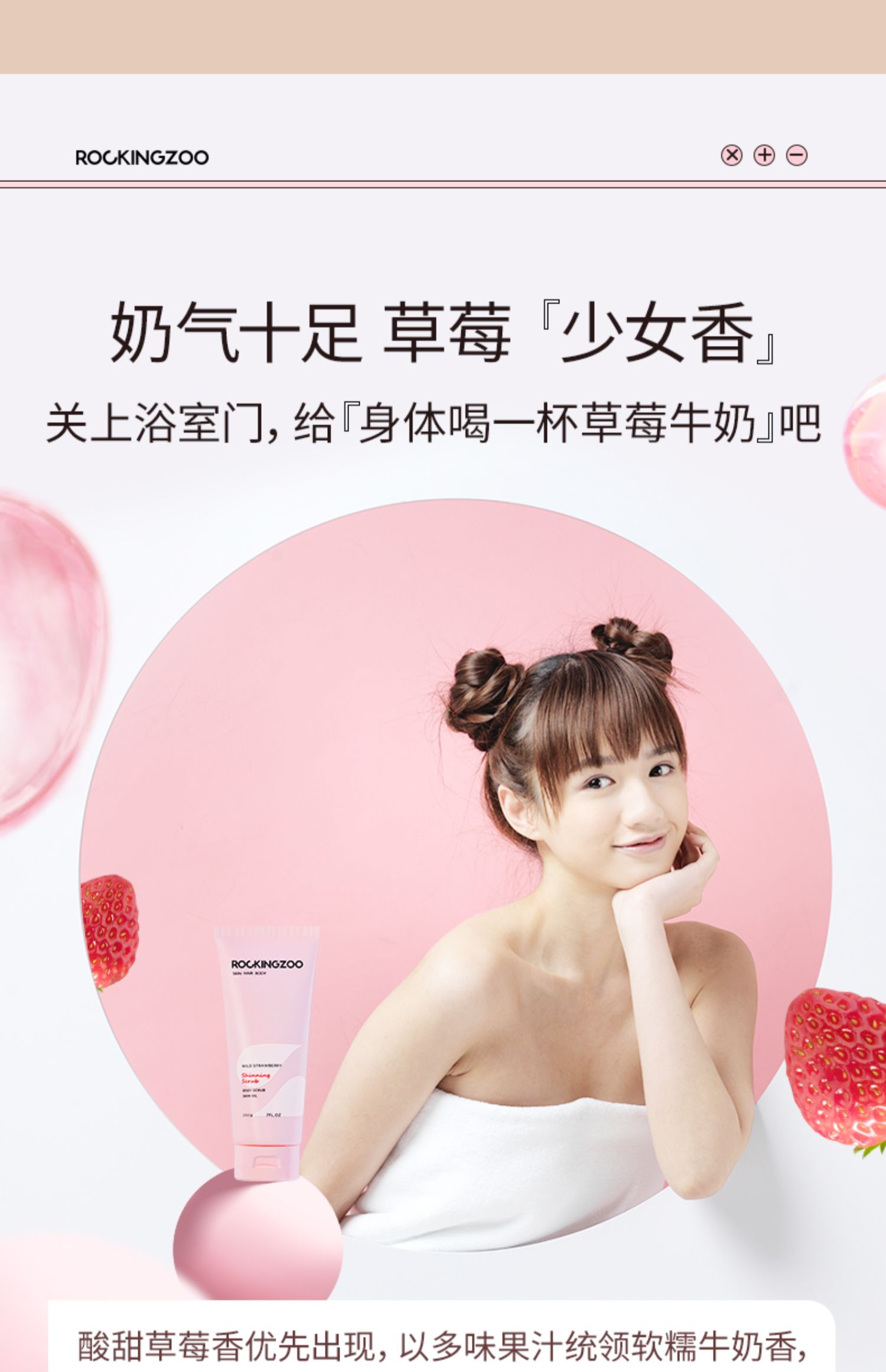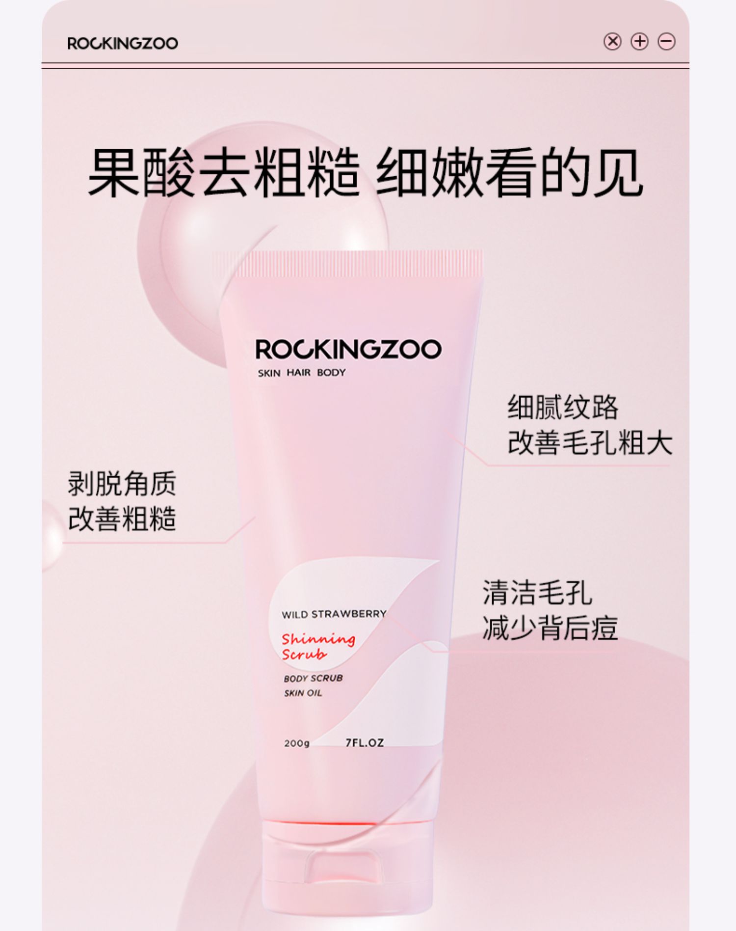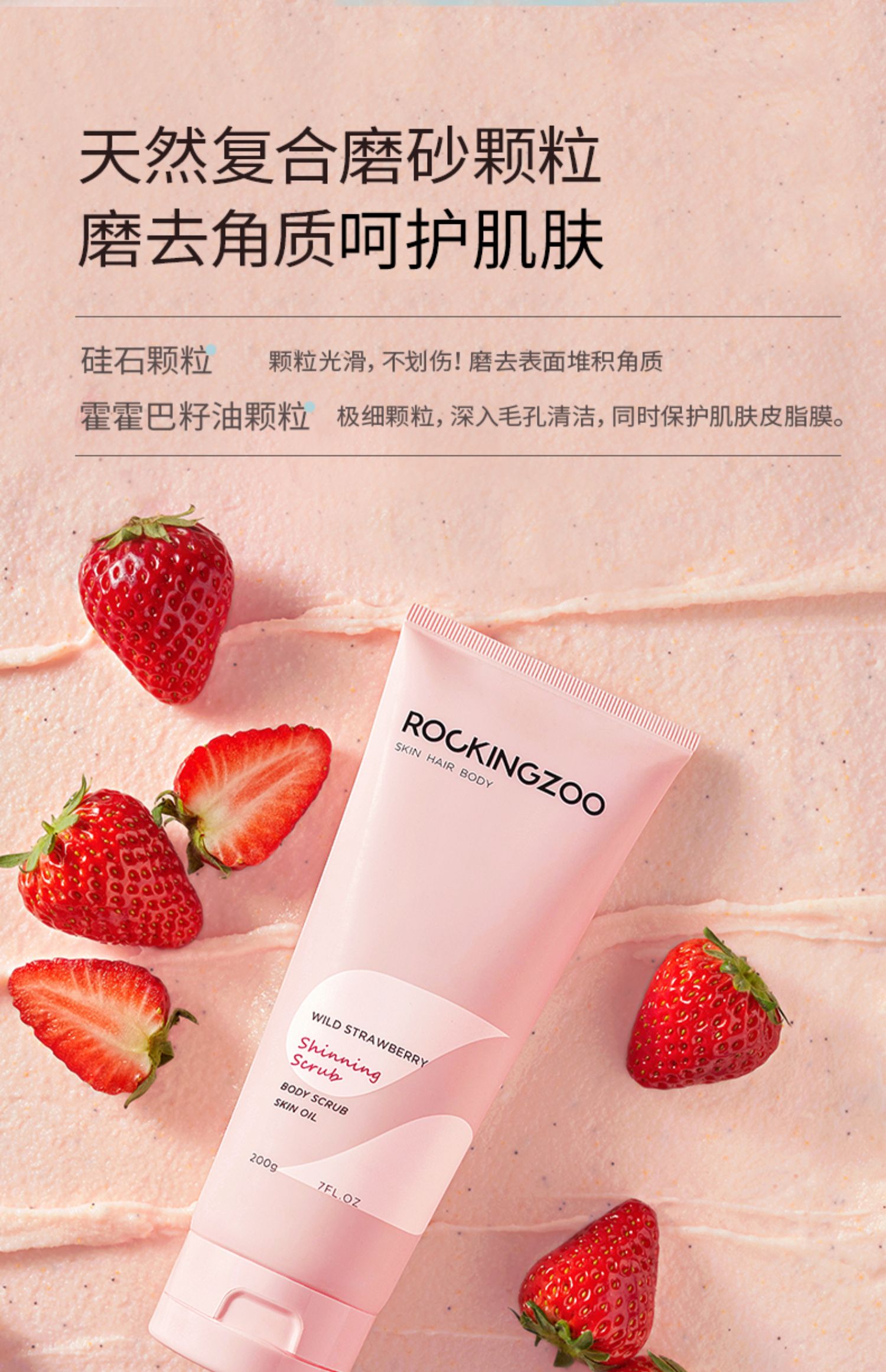 摇滚动物园野草莓身体磨砂膏全身清洁去鸡皮角质果酸沐浴露二合一!!!