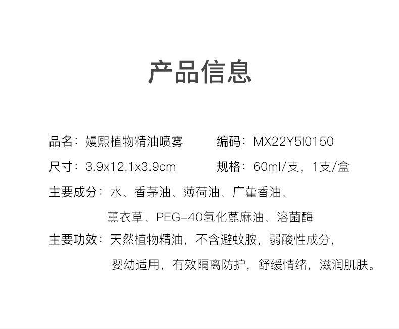 好价!植物精油配方孕婴配方,无刺激,不添加,便携易带,轻轻一喷,蚊虫不进身,让宝宝再蚊虫纷扰的夏日,免受蚊虫叮咬,新生儿和孕妈均能安心使用!