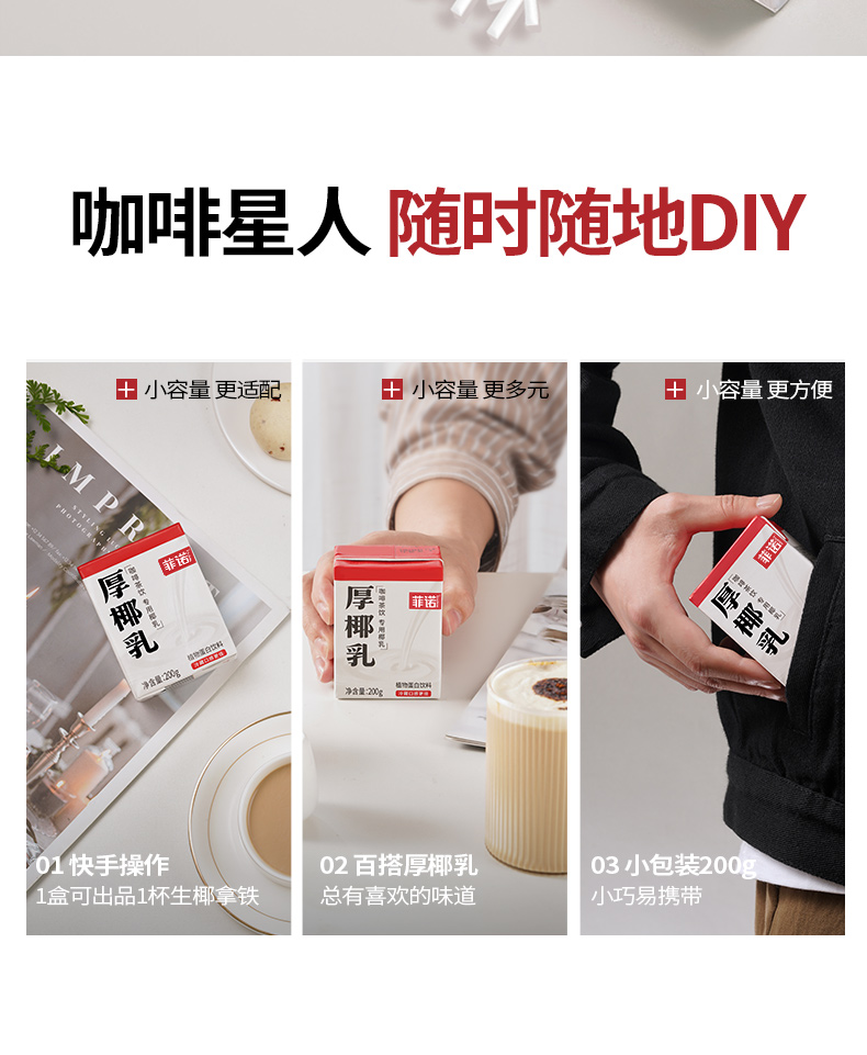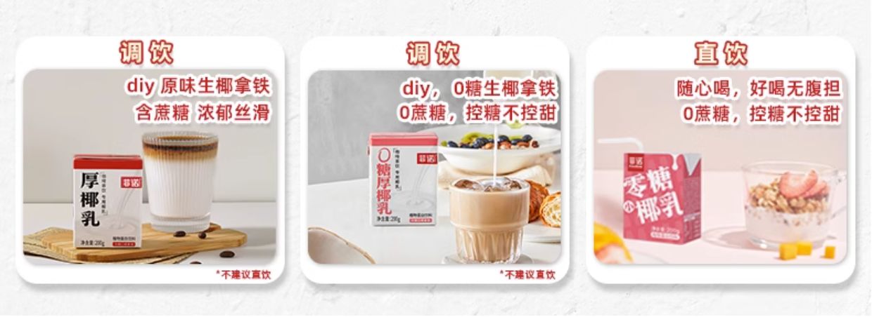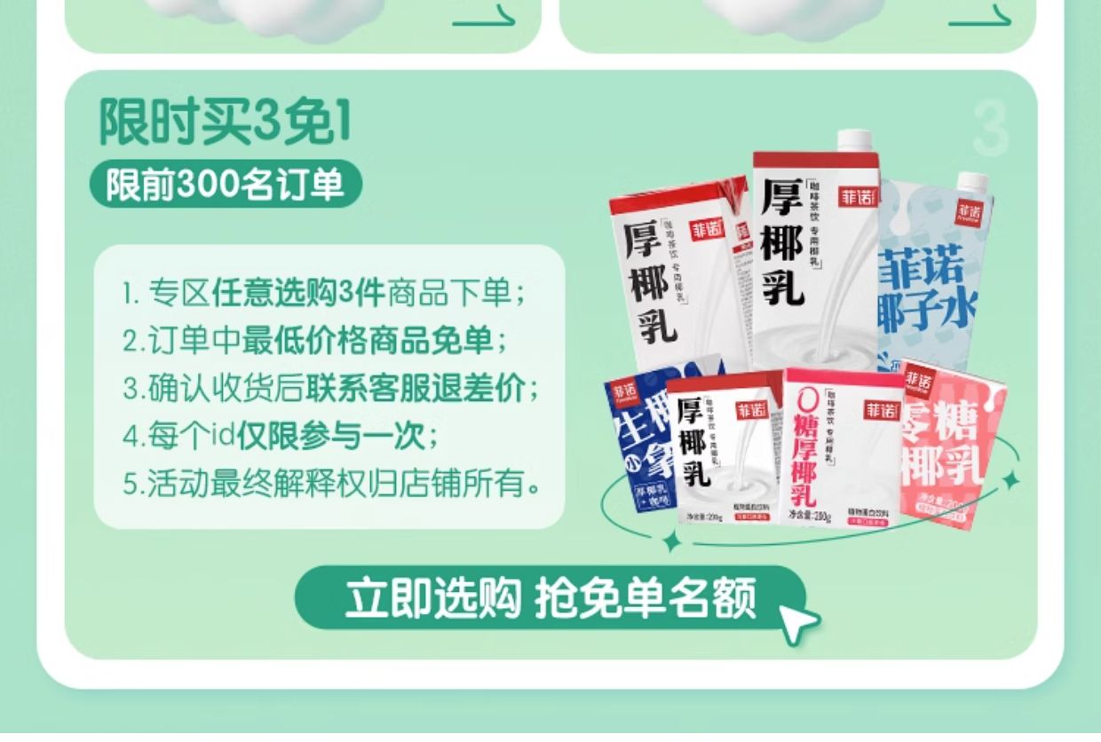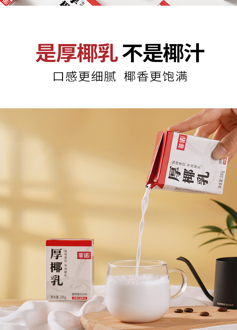 【菲诺】厚椰乳咖啡茶饮专用椰乳!口感更细腻、椰香更饱满,随时随地DIY,快手复刻爆款饮品~百搭厚椰乳认准菲诺红!!