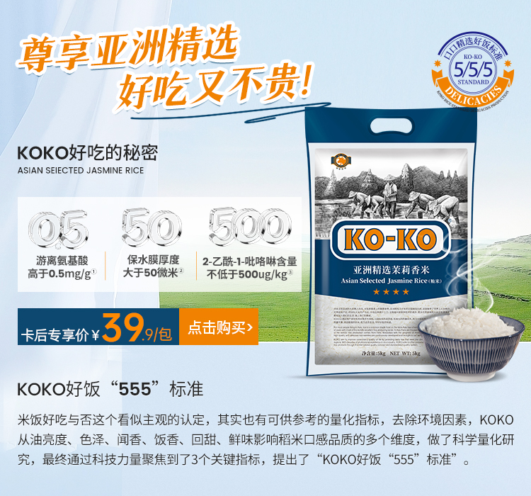 泰金香茉莉香米超值优质大米【普惠领5元券,福袋1-2,叠淘金币到手49,vip到手46】!!!米粒饱满晶莹剔透~浓浓米香,香糯有嚼劲!