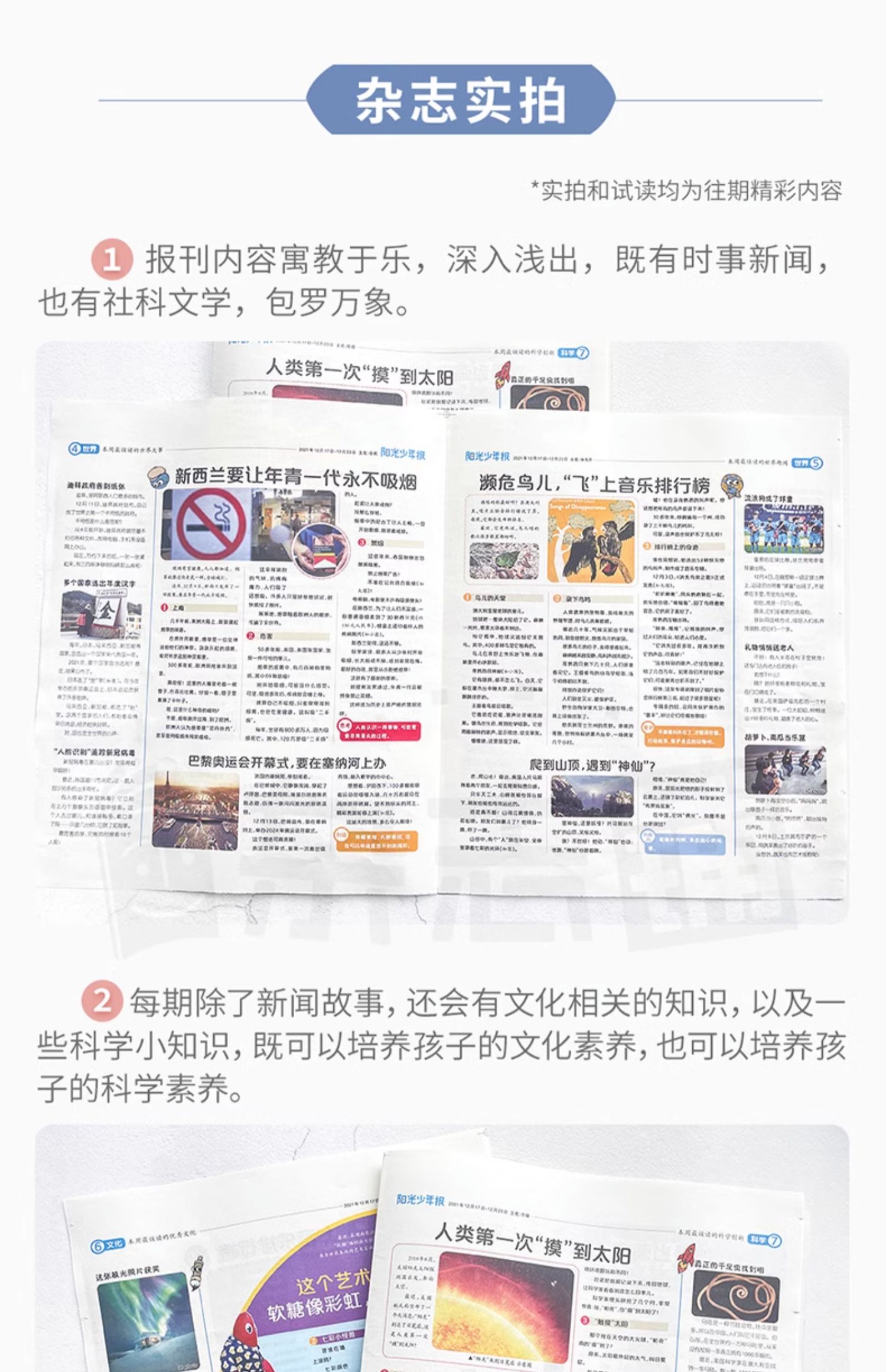 【超厚5期】阳光少年报,2025年新版,共5期,儿童新闻报纸,含哪吒和DeepSeek专题五期打包,小学生1-6年级课外阅读必备,青少年新闻时事期刊杂志,历史地理百科知识合集,开阔孩子视野,丰富课外知识,中小学生寒假开学季必读课外读物。