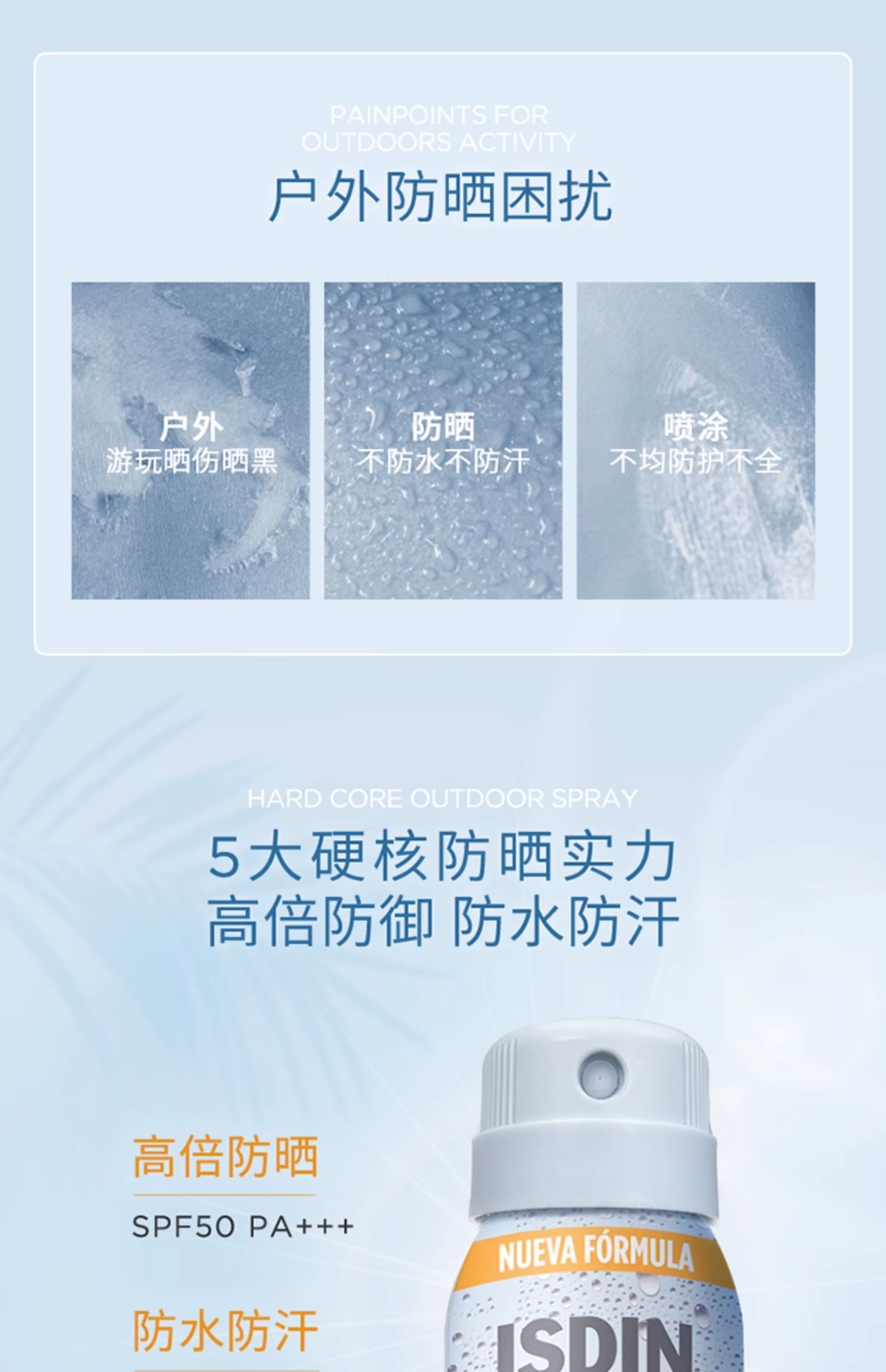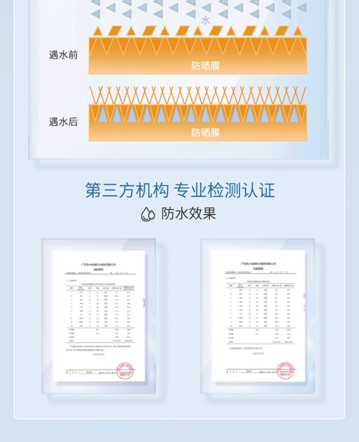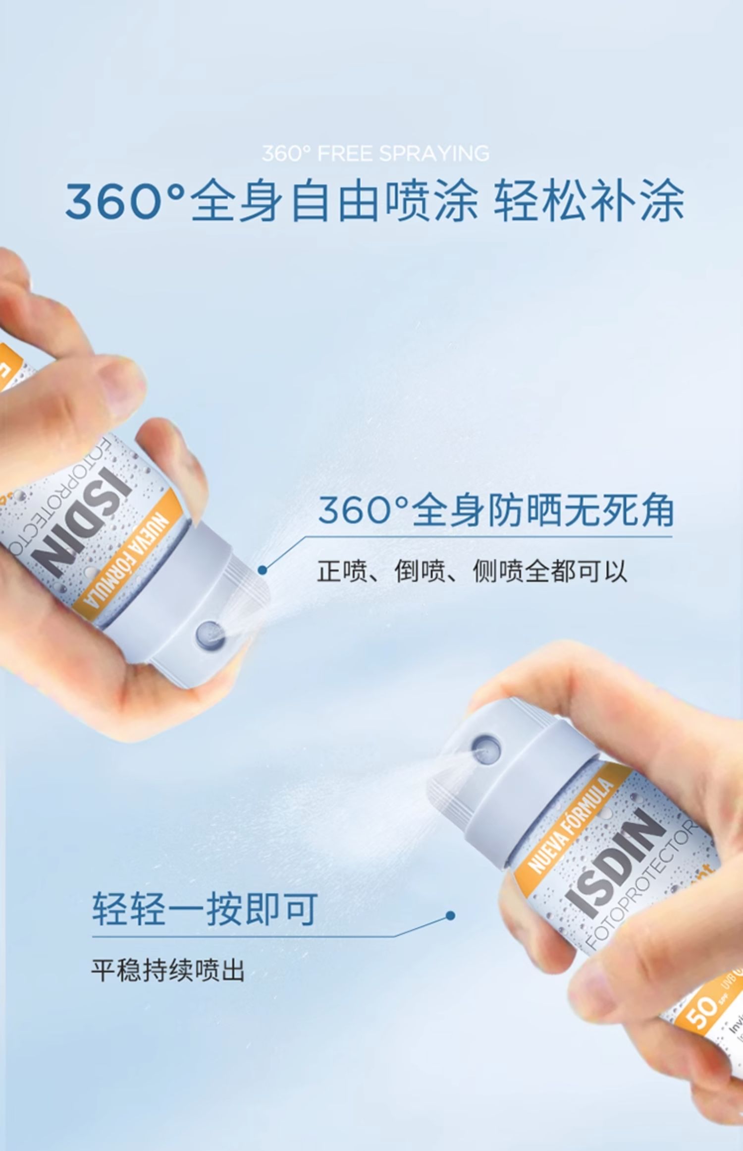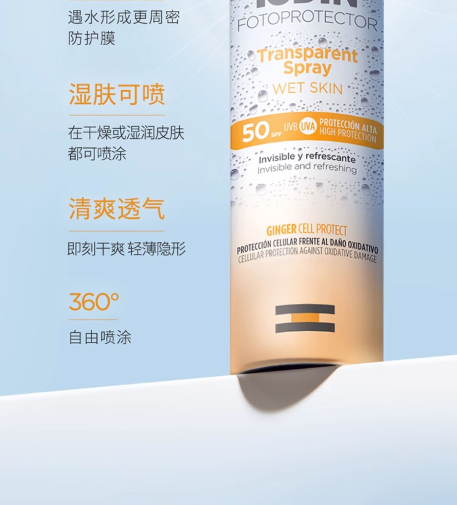 滋润降温,有直接降温镇静功效,快速成膜,随手一喷即成膜,高倍耐晒,全天候有效防护,轻薄透气,小分子喷雾更轻薄。