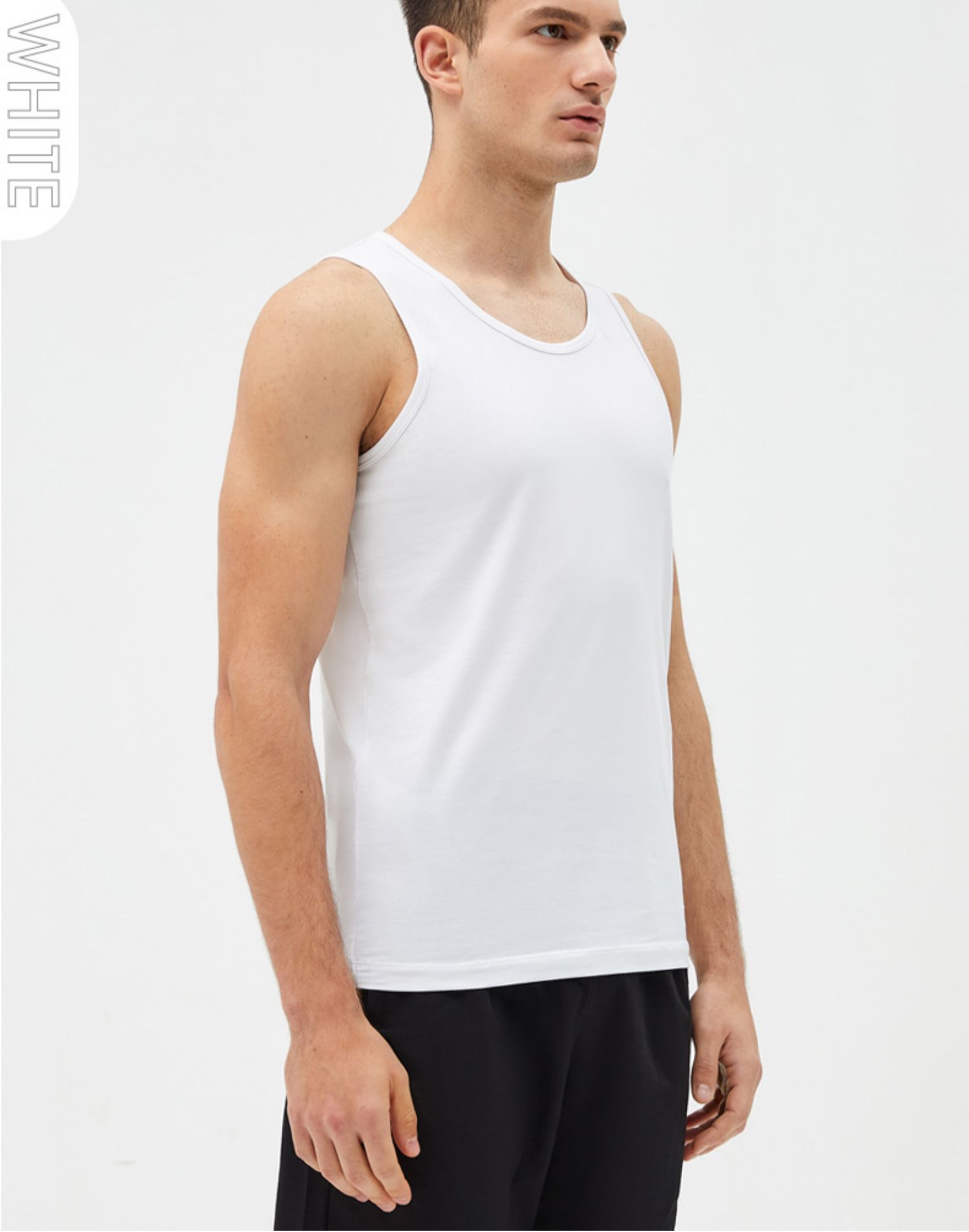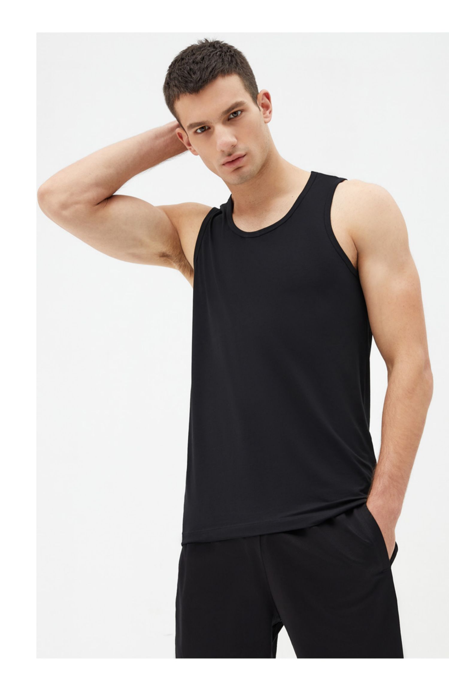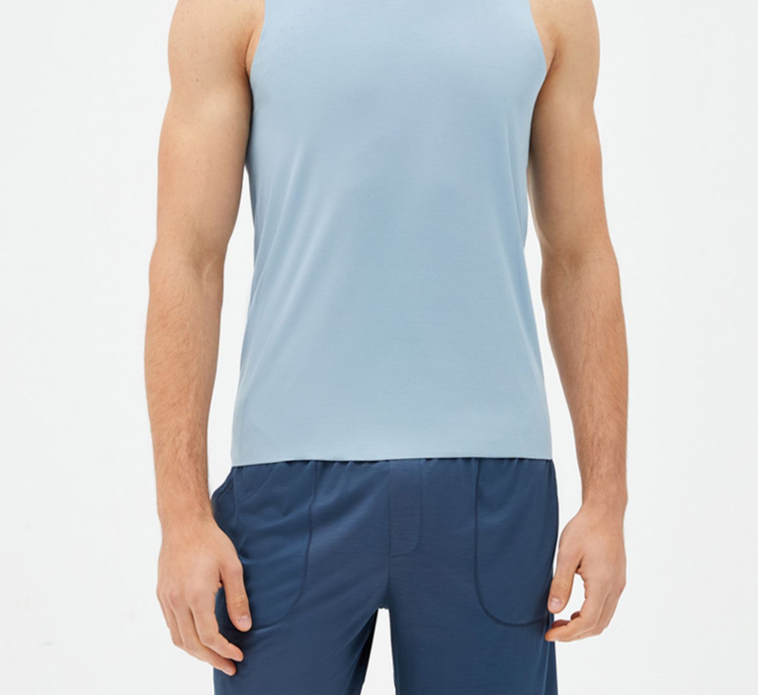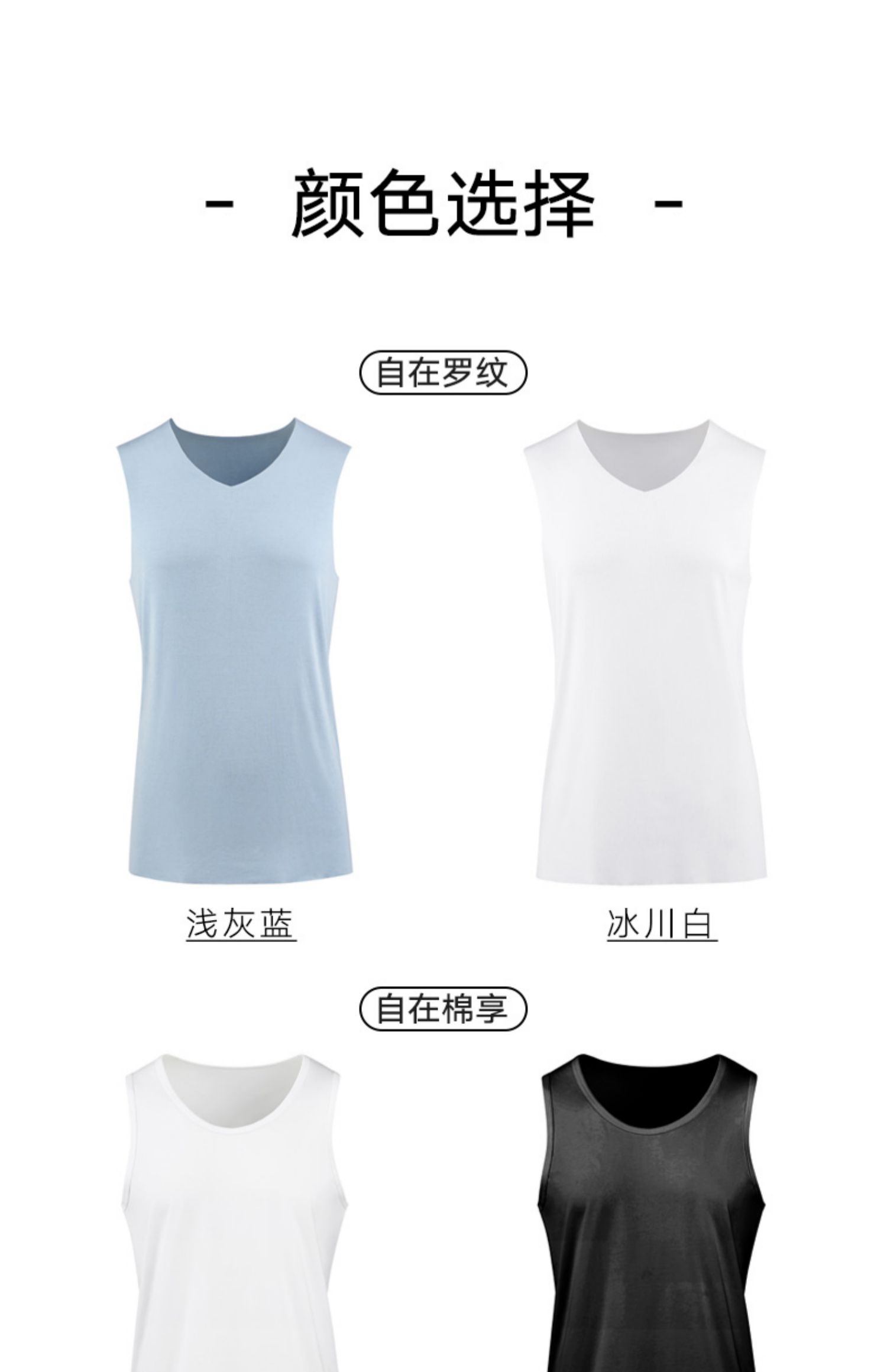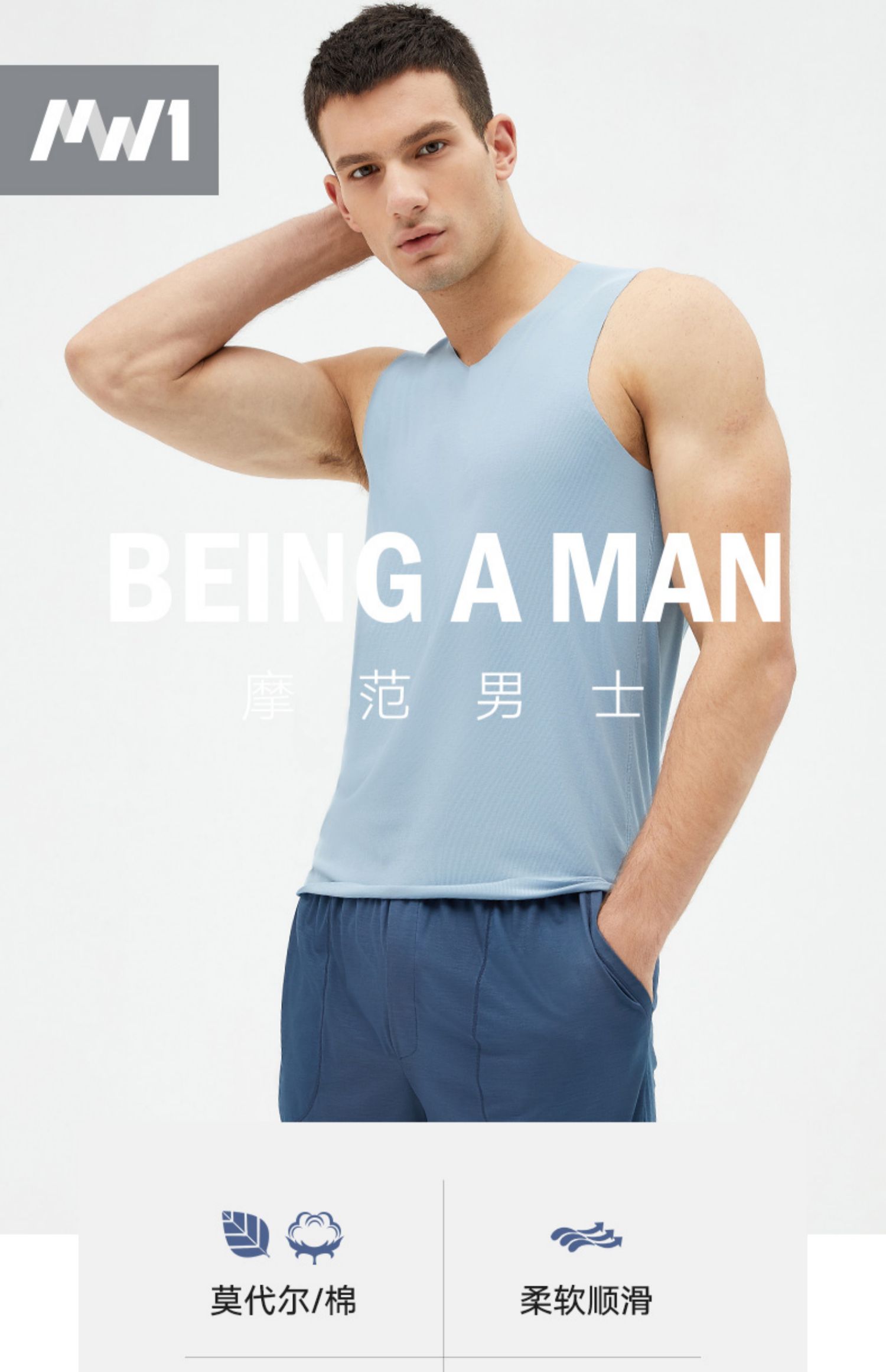 曼妮芬MW1男士莫代尔无痕背心V领,运动汗衫圆领健身跨栏无袖薄背心
