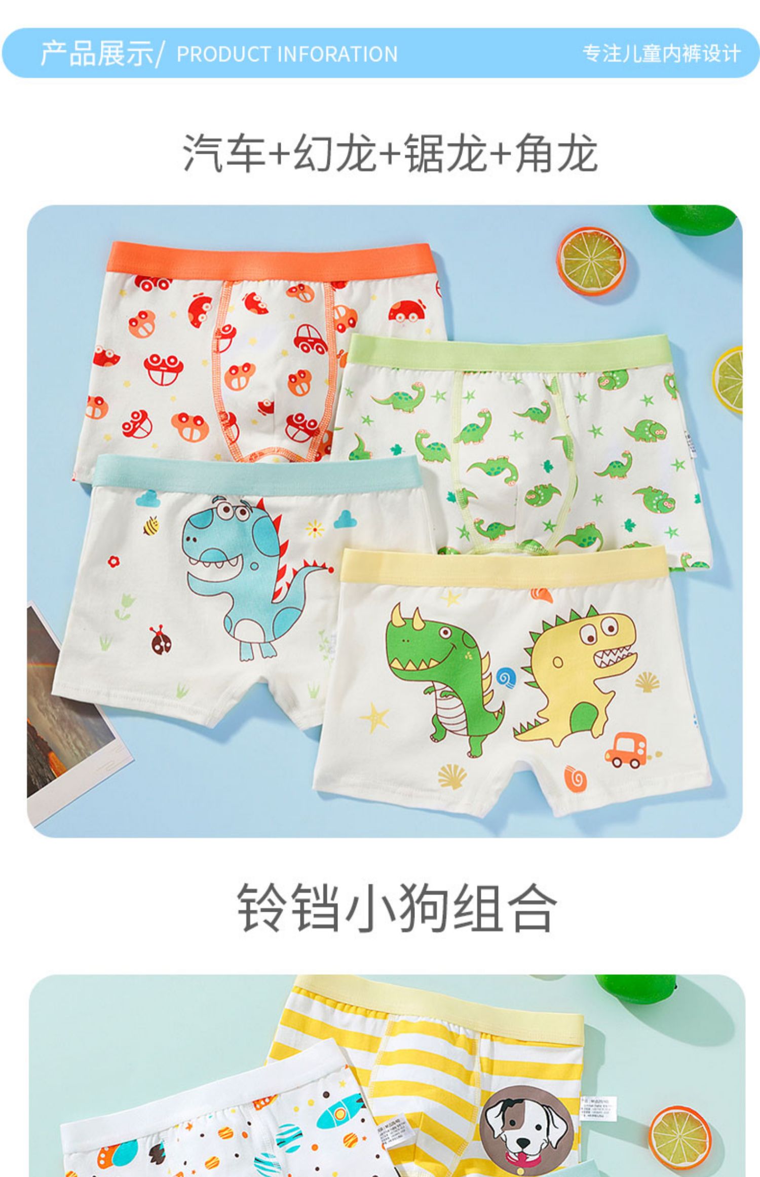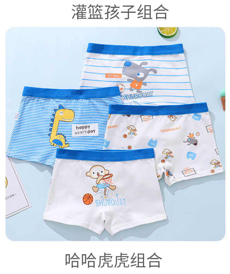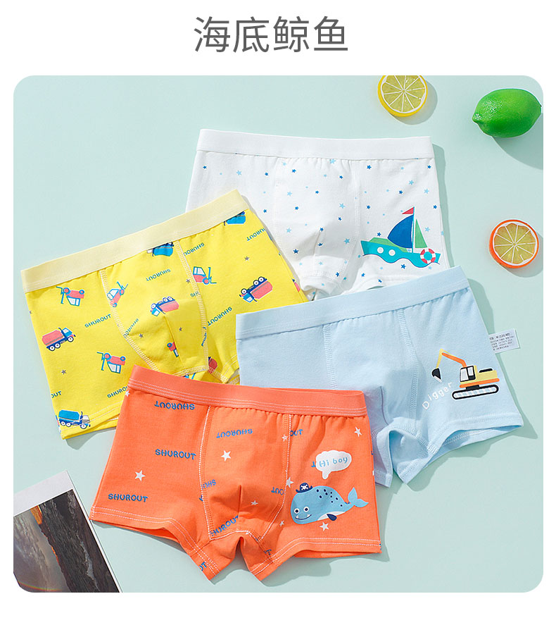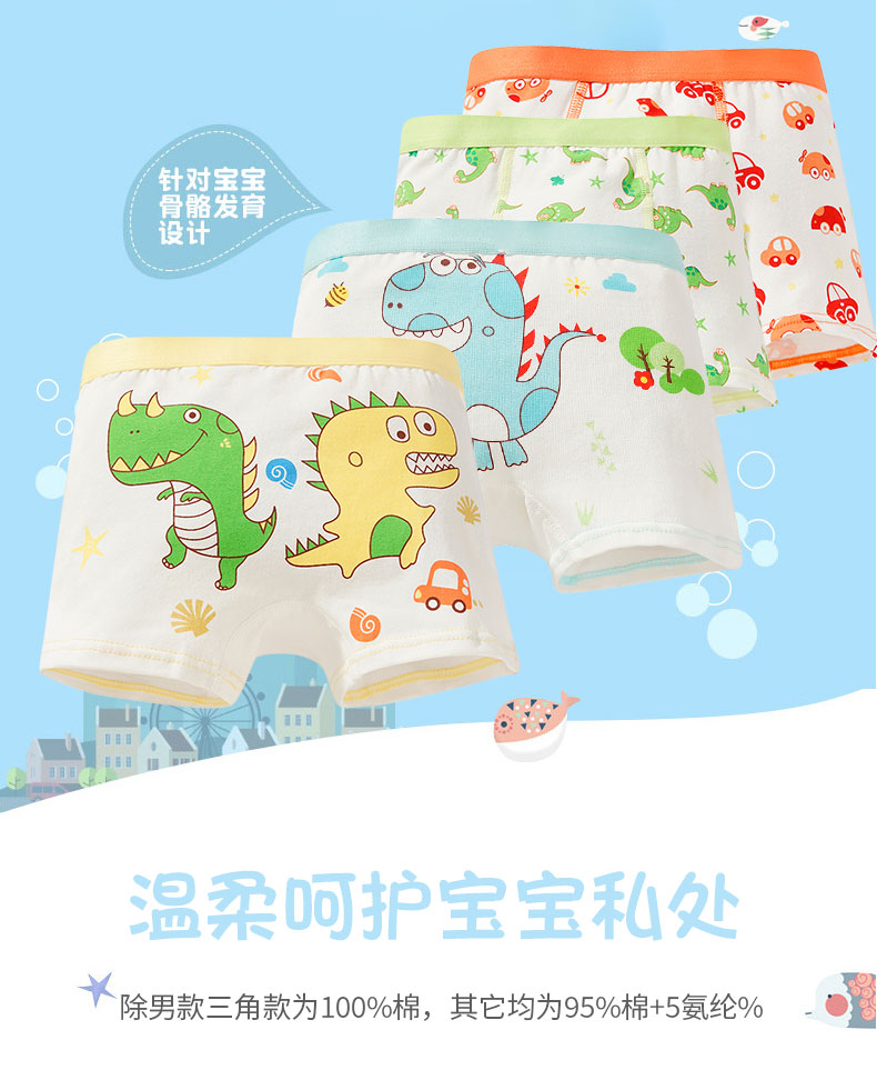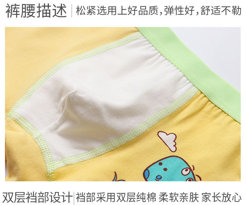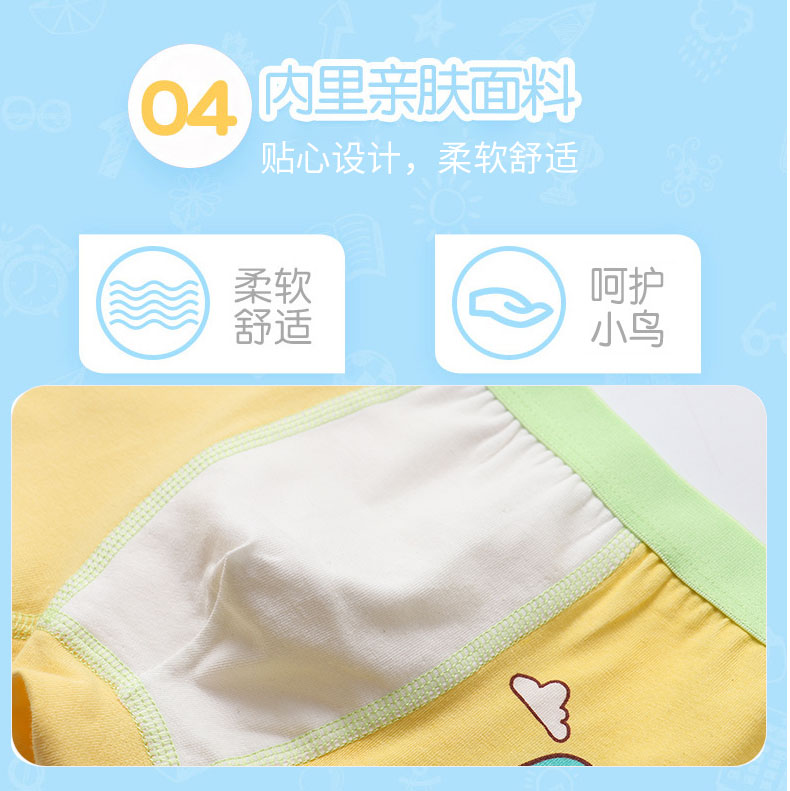 A类纯棉4条装,天猫A类棉认证,品质安全可靠!双层裆底透气性好,不缩水不变形不刺激肌肤,贴身呵护宝宝!适合1到13岁男童!