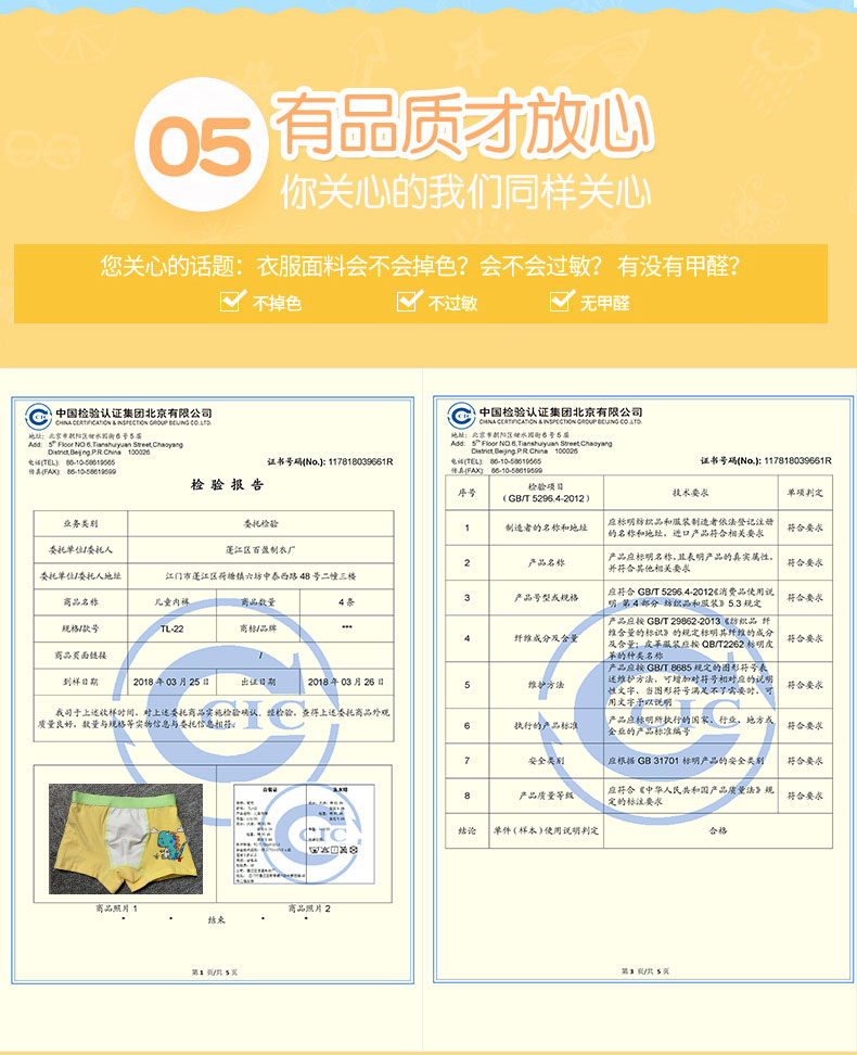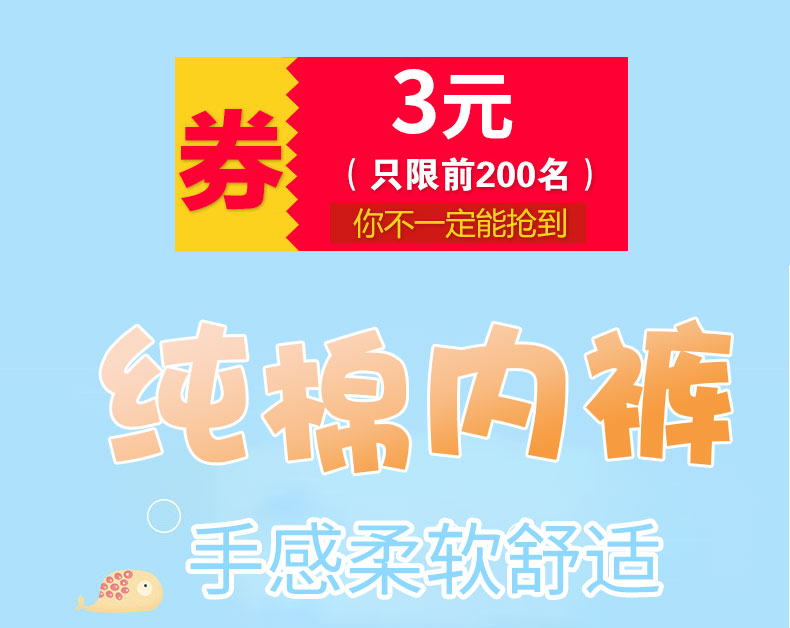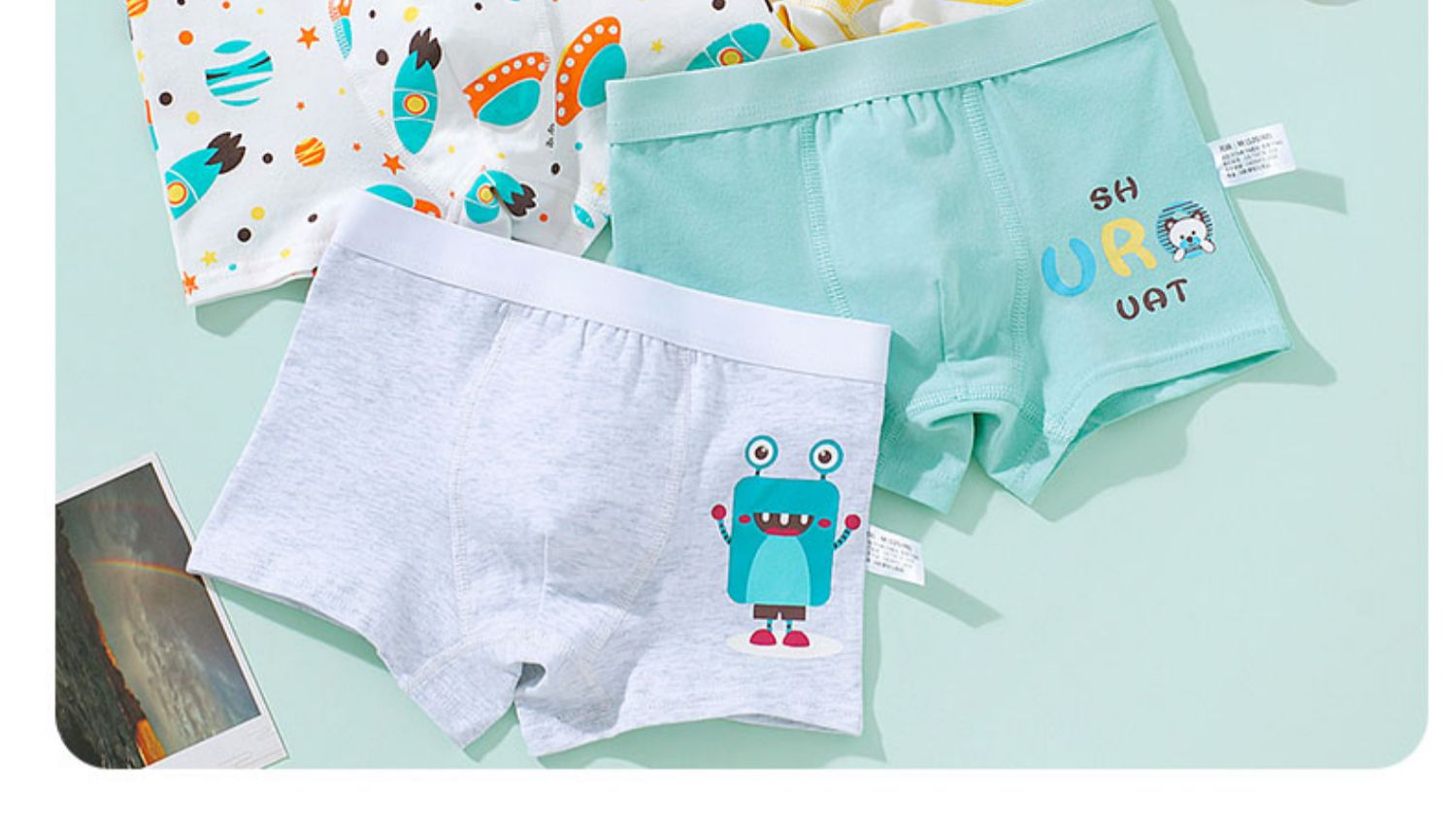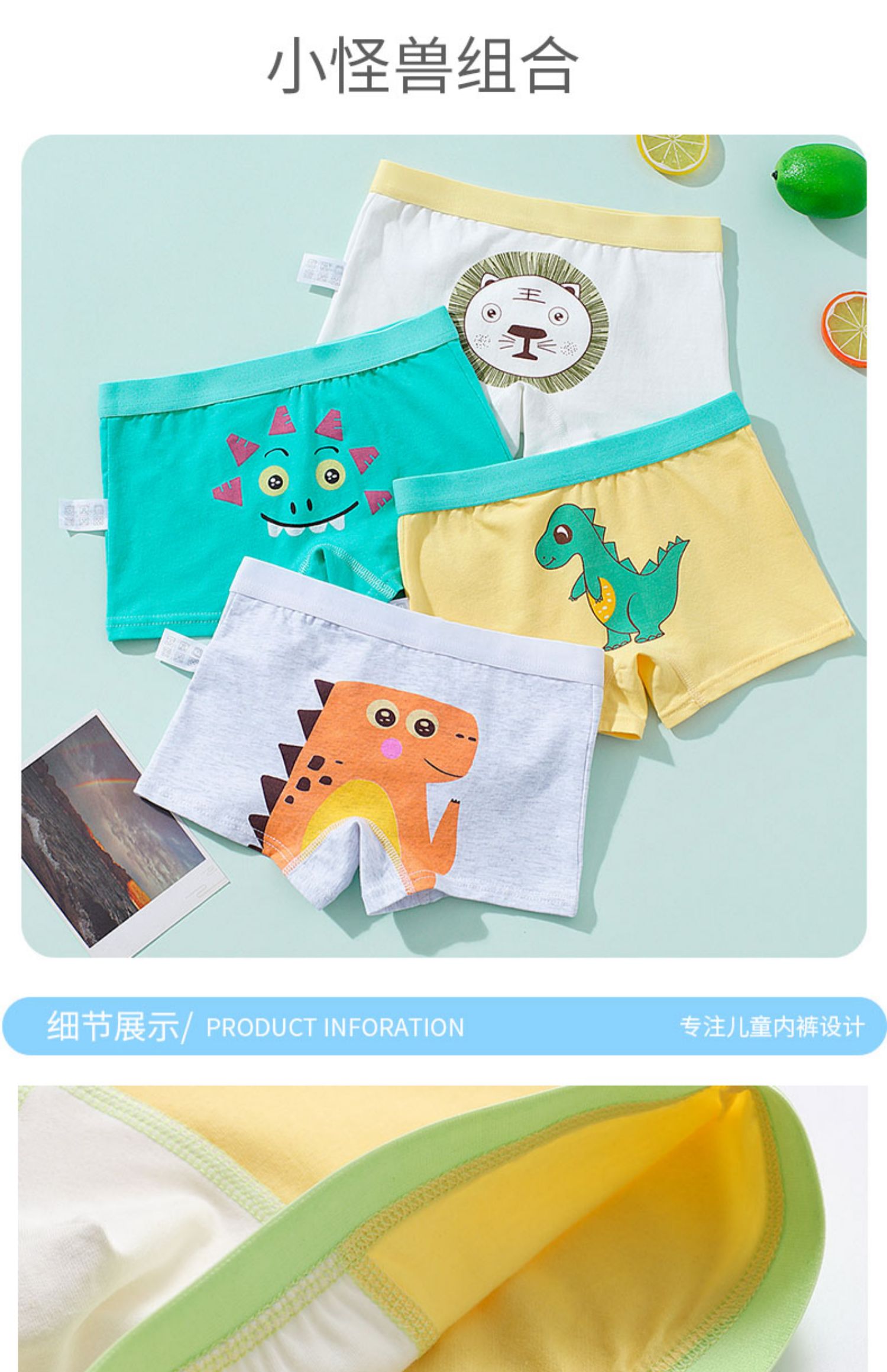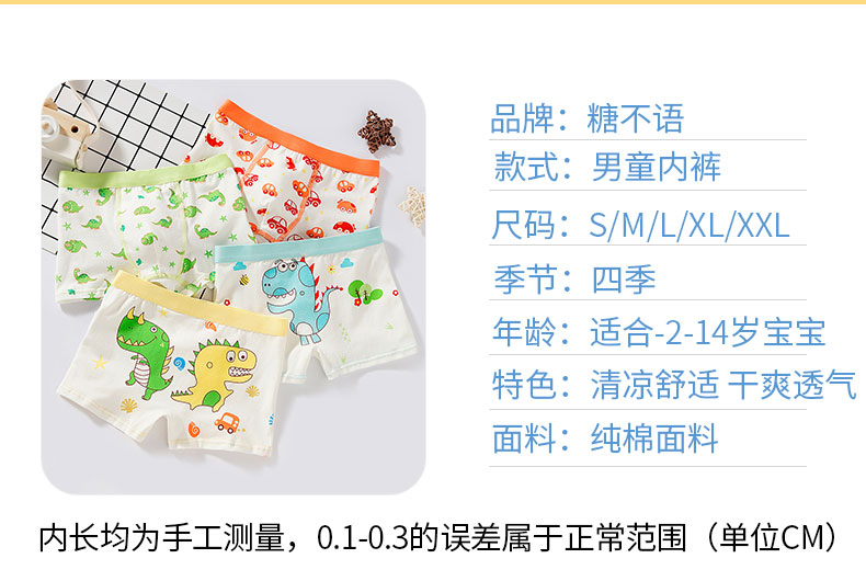A类纯棉4条装,天猫A类棉认证,品质安全可靠!双层裆底透气性好,不缩水不变形不刺激肌肤,贴身呵护宝宝!适合1到13岁男童!