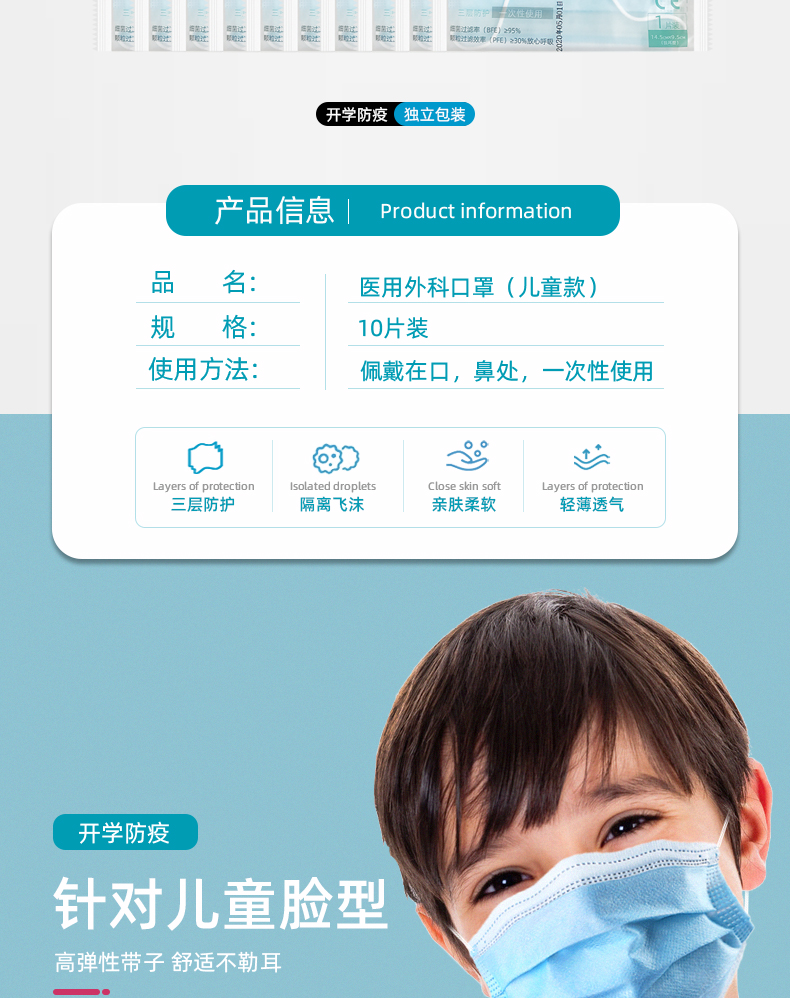 儿童【医用外科】口罩不多见!!医用外科口罩的防护等级要高,药监局都有备案的放心戴!!冬季感冒高发期,孩子上学出游必备产品。赶紧囤!