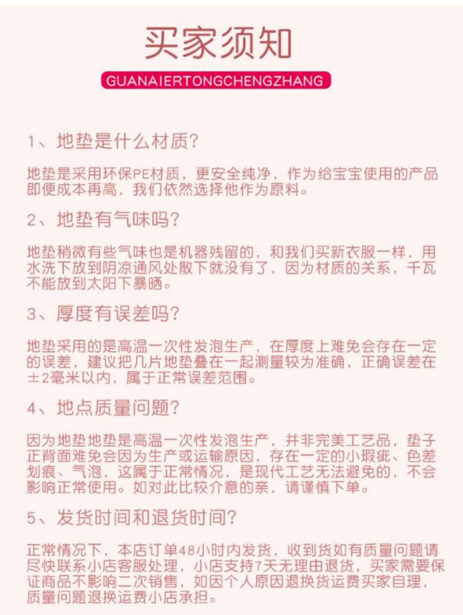 环保无味,绿色全新环保材料,通过SGS检测,不含甲醛等重金属有害物质,任意裁剪,随心拼接,隔水防污,防滑稳固【赠运费险】
