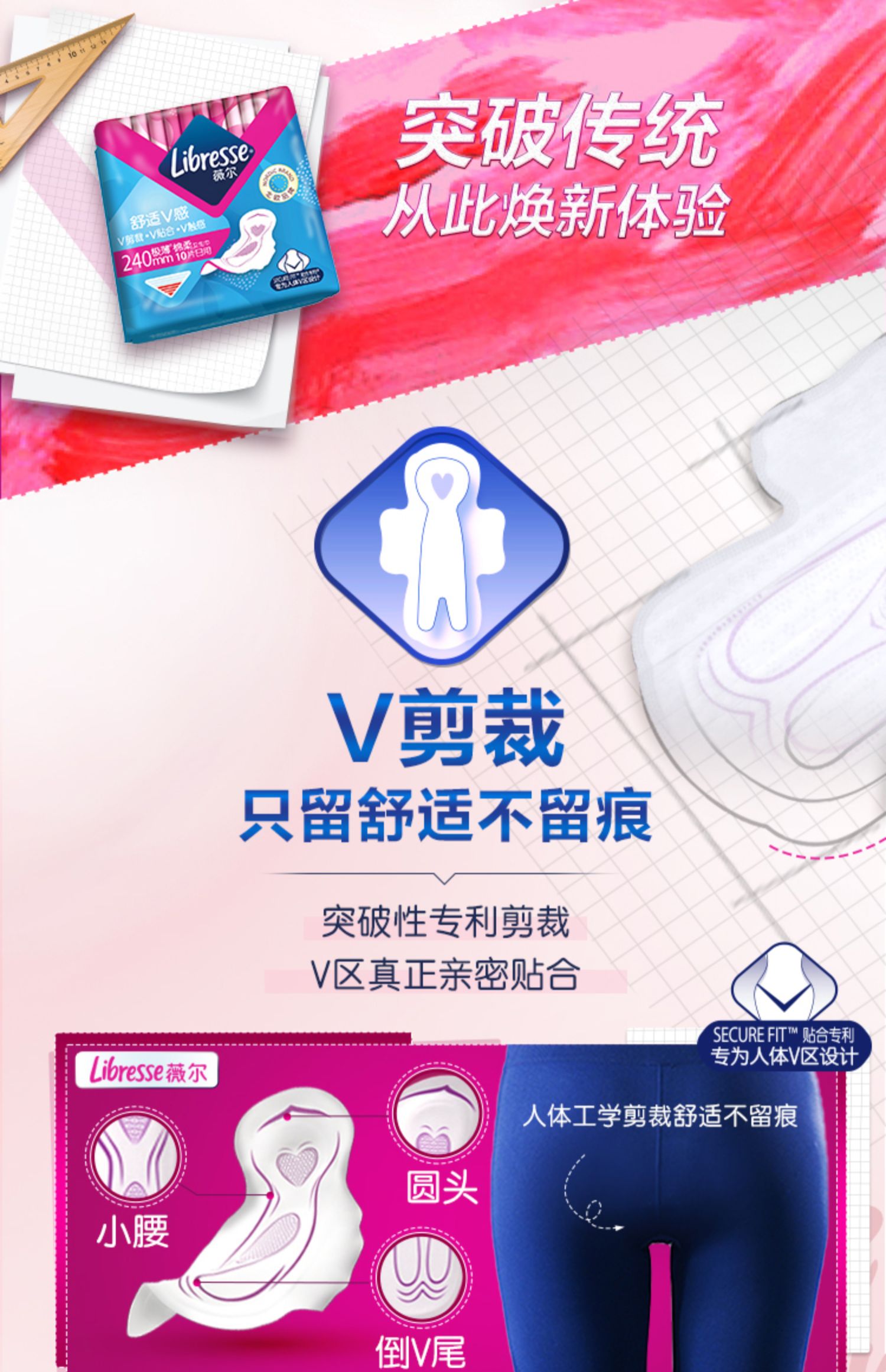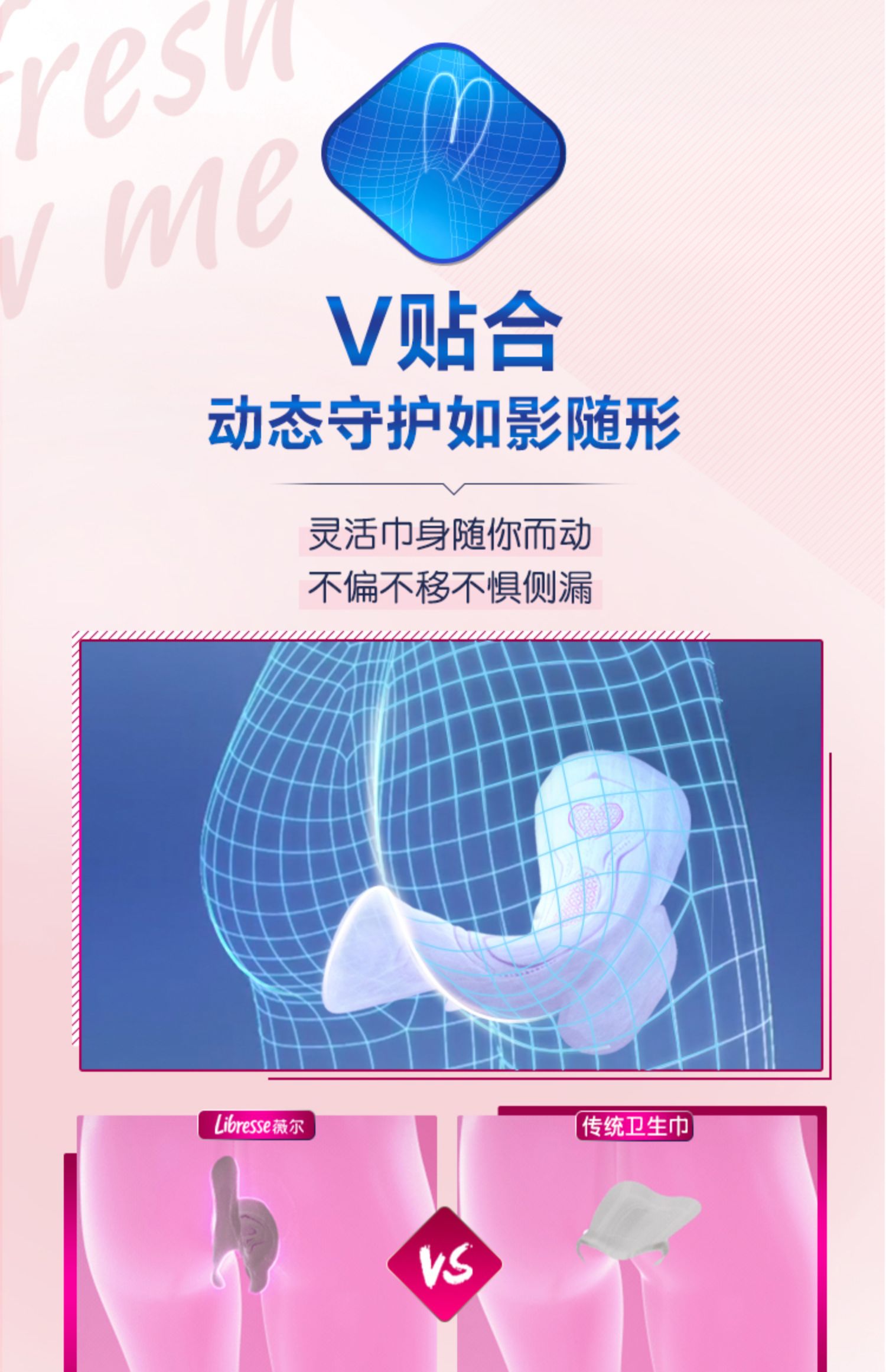 单价到手49,北欧畅销品牌,ins、小红书口碑爆棚!libresse亲肤防漏超薄日用卫生巾,北欧小V巾,动态贴合,如丝绸般触感!